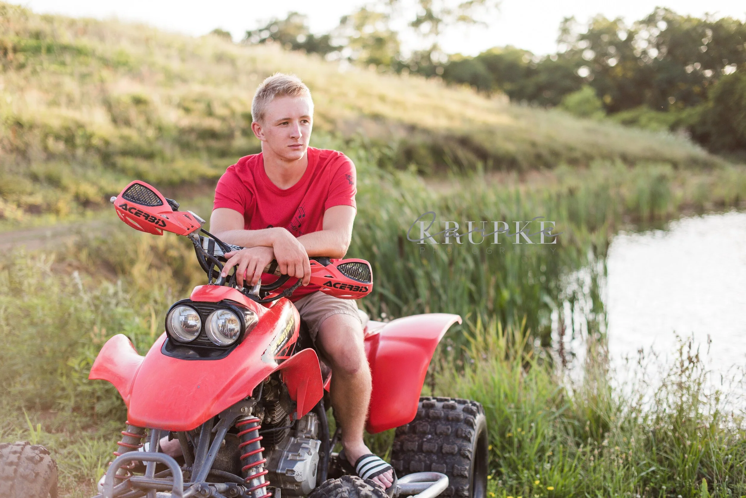 We went from the stadium to Carper’s Winery which almost shares a backyard with Brian & his family. He’s worked out here for different events growing up and was the perfect place to highlight his other two loves that don’t occur within the school’s four walls: ATVs and fishing! His mom, Kathy, joked, “If you catch one, I’ll give you $10!” Well, turns out, Brian just got richer.
