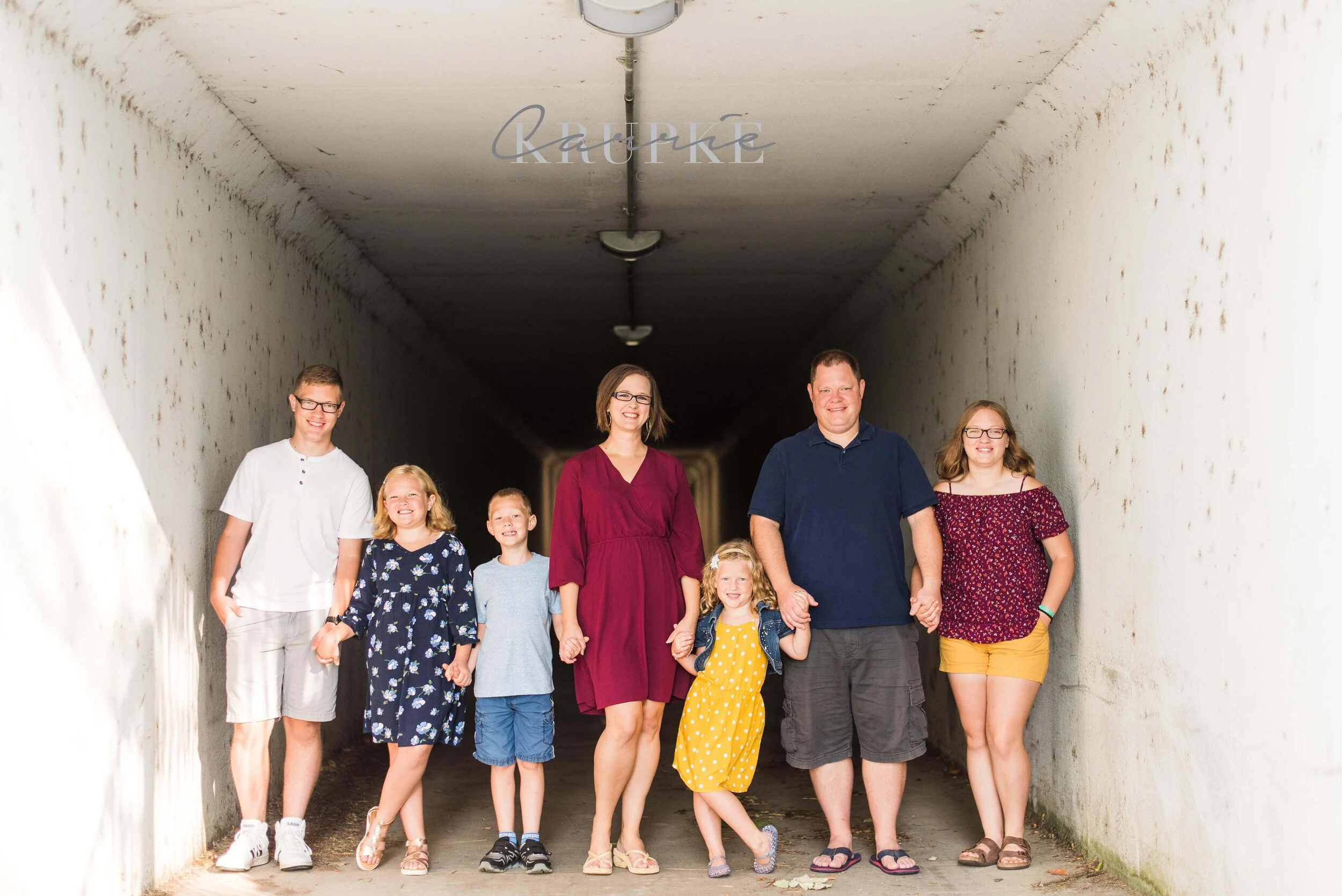 We both tried to remember the first session I photographed this family and I’m pretty sure there were only 3 kids in the picture at the time. Neither of us, in our what I’m calling Quarantine Brain state could quite set the year. Jeremy + Christie are the types of friends in our lives that we can’t picture our lives without, and it feels like they’ve always been there. We literally can’t remember a time without them! I hadn’t photographed in this spot in awhile so I thought we’d give it a try for them-we’ve photographed this family all over the metro, so we’re starting to run out of spots, I’ve been photographing them that long! 🙂
