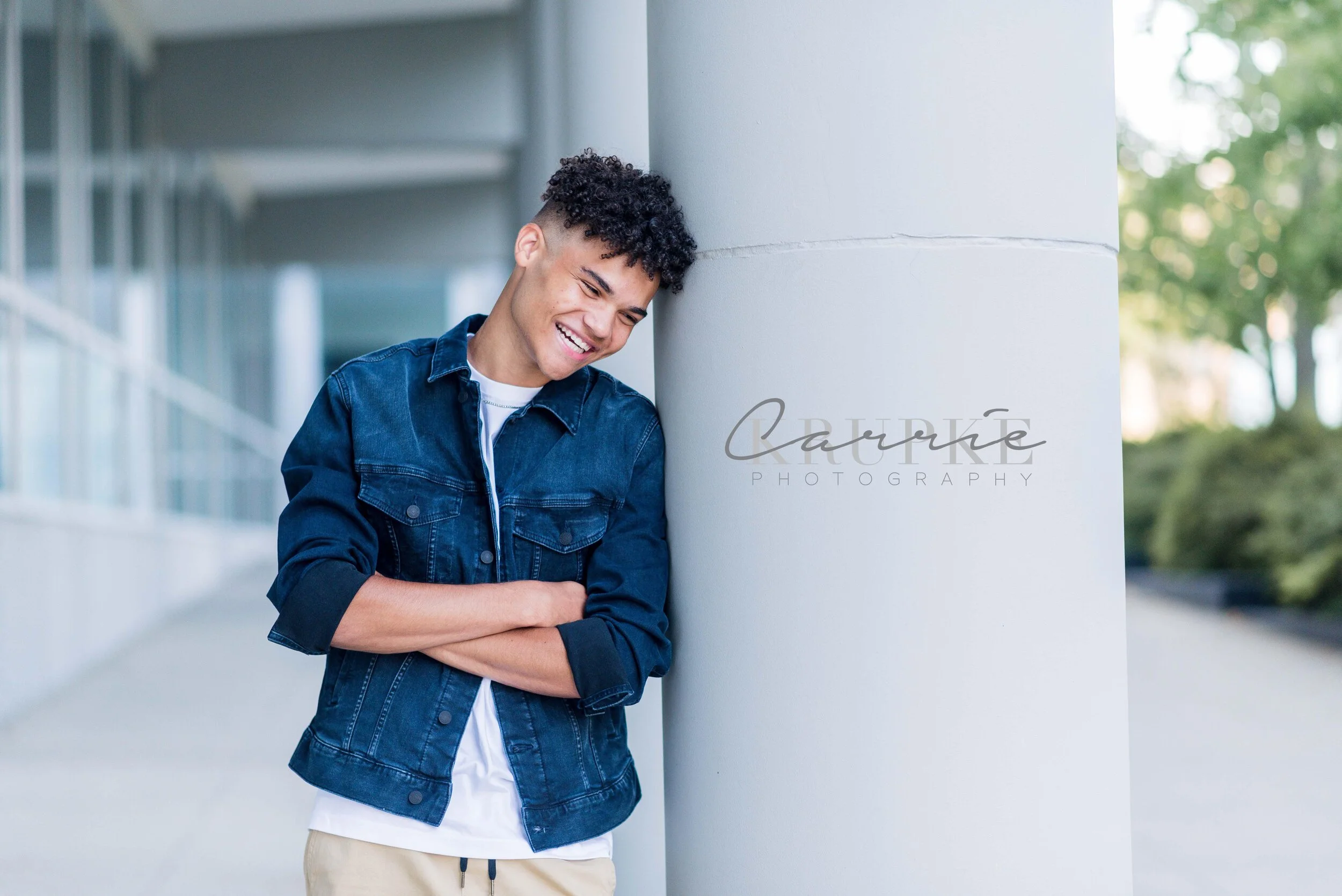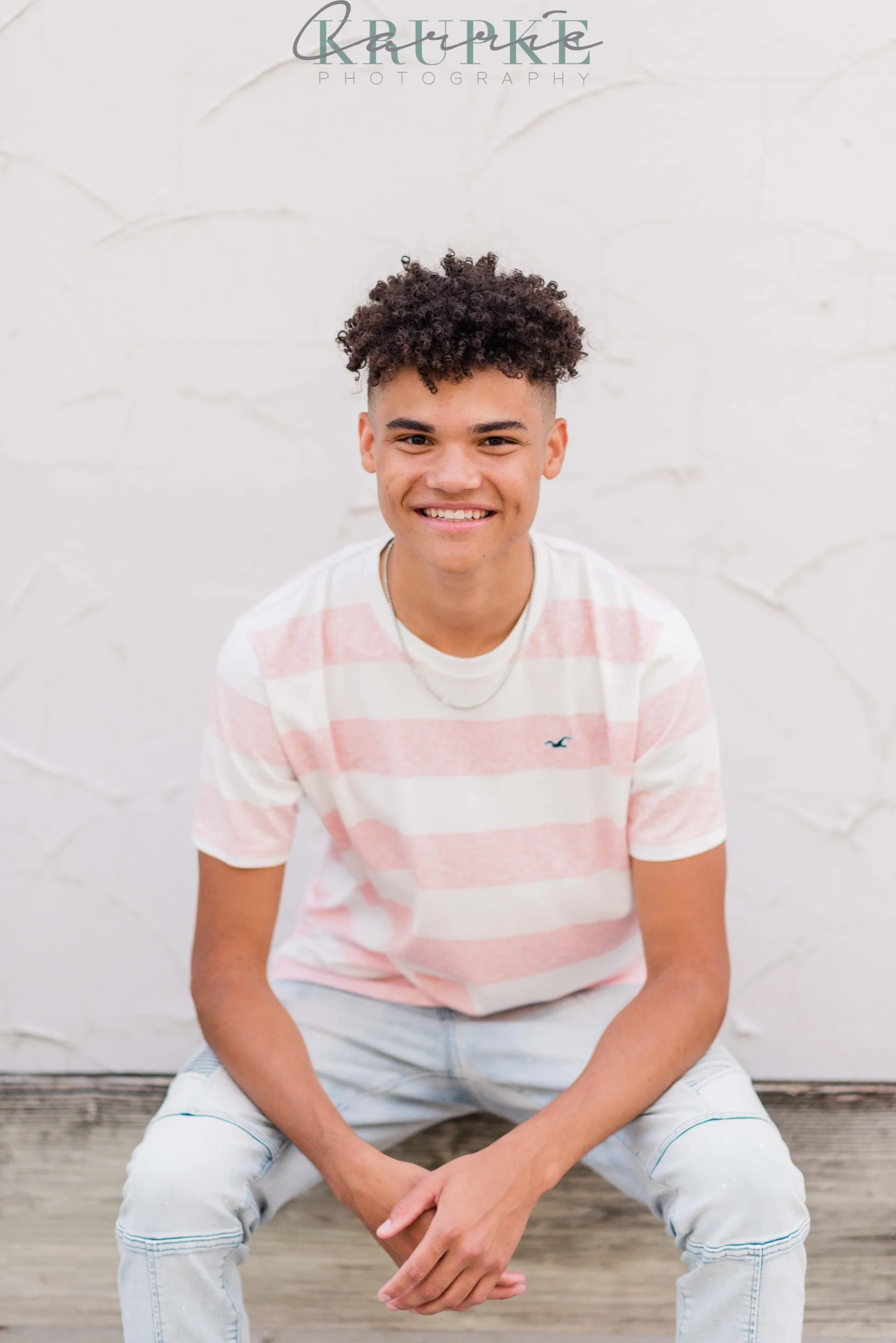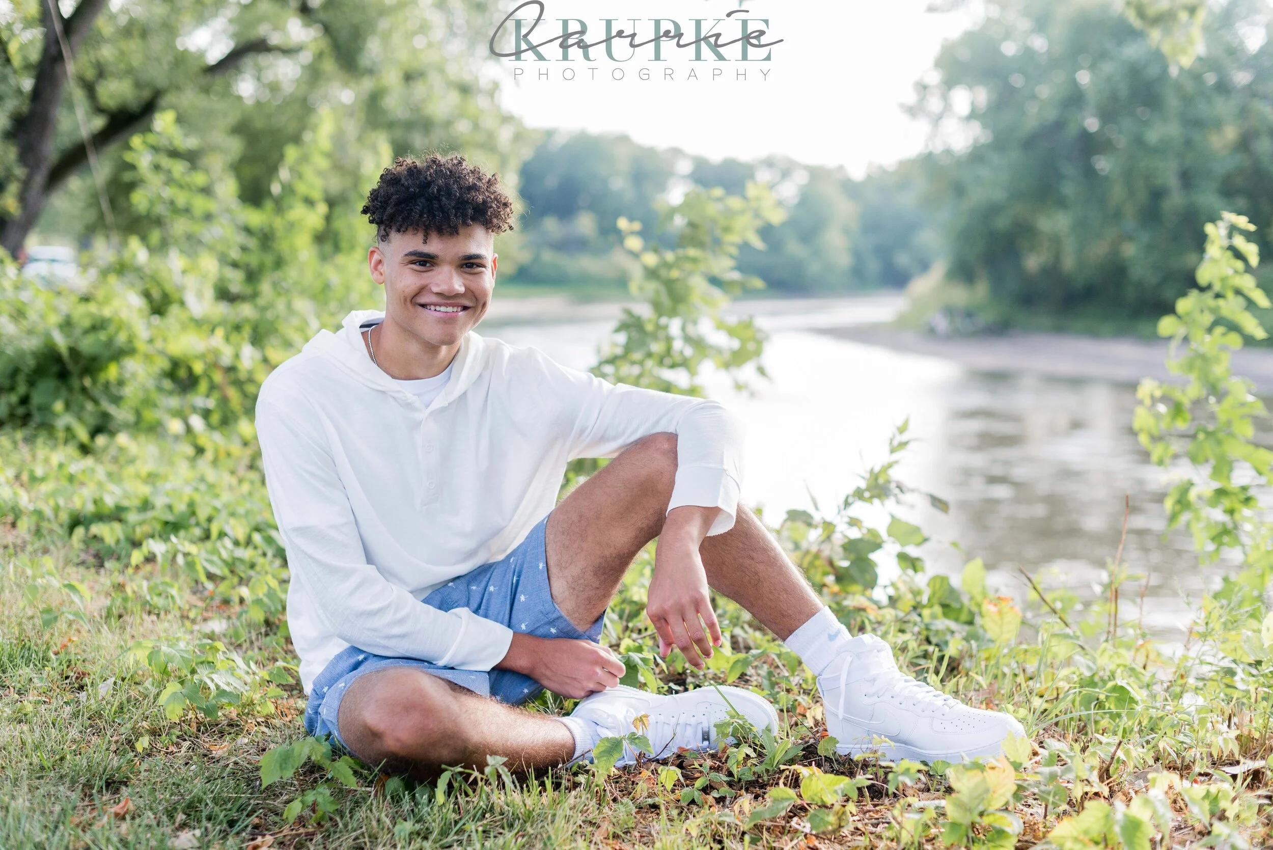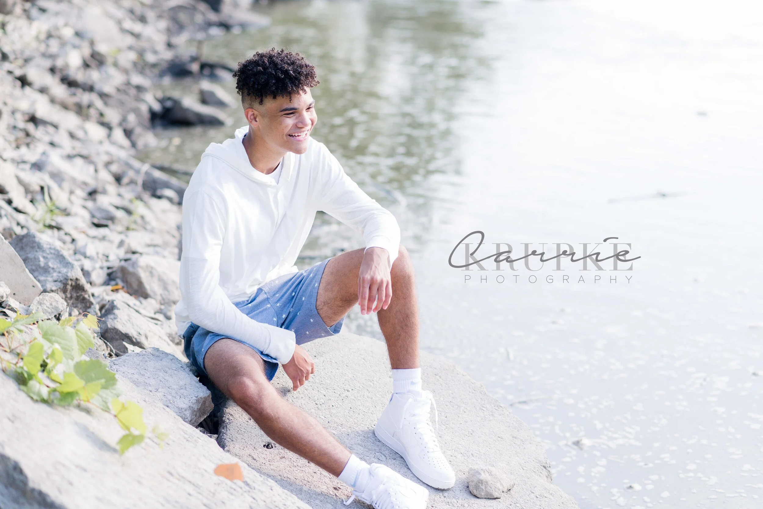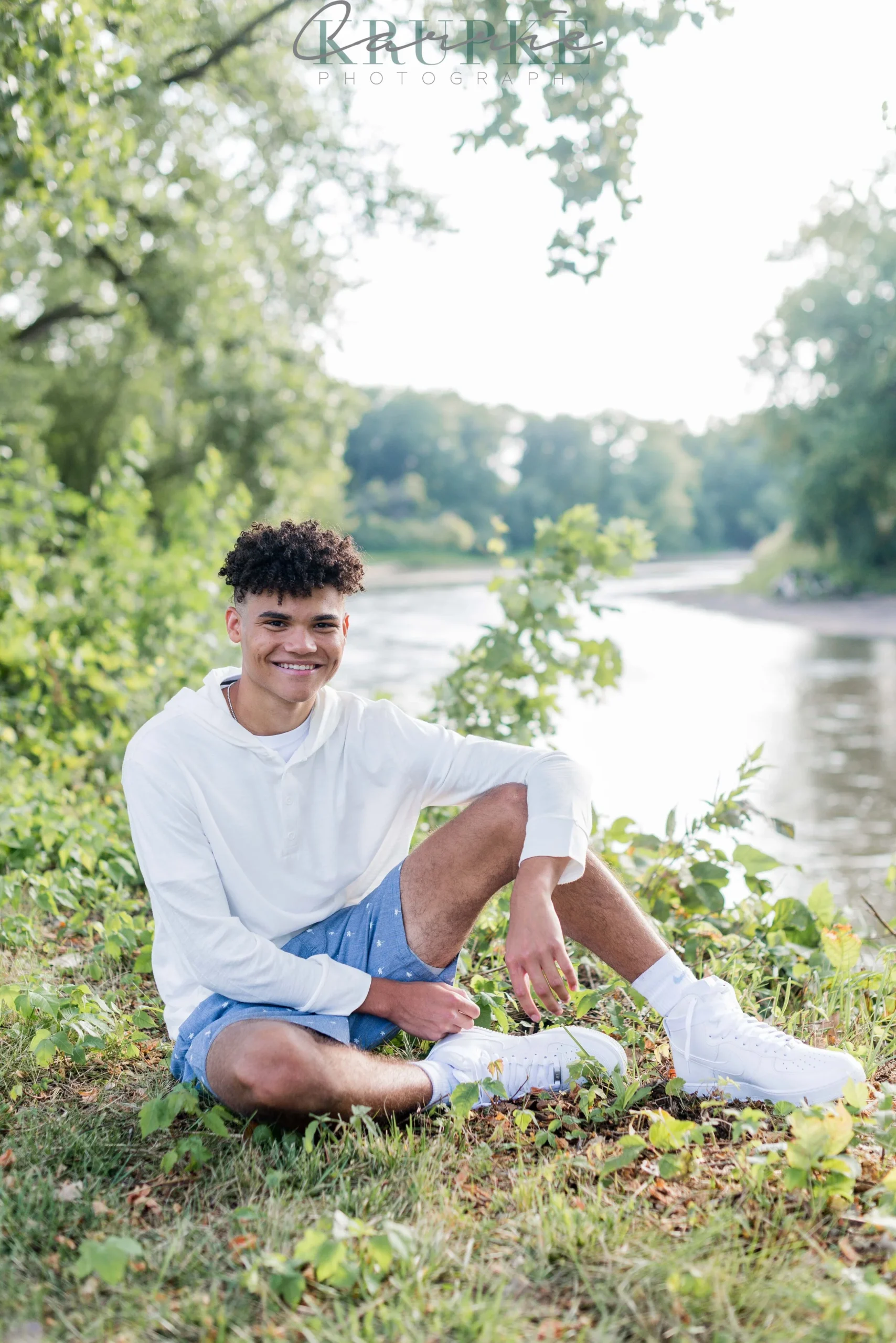Our senior season is almost coming to a close over here at Carrie Krupke Photography. And what a season it’s been! I have so enjoyed photographing students I’ve previously taught and getting to know new students that I can now say hi to in the hallways and cheer on from the sidelines at their sporting events. Aiden is one of the new students on my radar and I’m so thankful for his laidback approach, his dad’s awesome dance moves to keep things light (and embarrassing) ;), and his step mom for contacting me to make this session even happen in the first place. Their one request? Water, because he likes to fish. But this guy was on the 3A Championship basketball team from back in March too. We opted for no props, not even the Championship ring, and we focused solely on who Aiden is & all the facial expressions that make him Aiden.