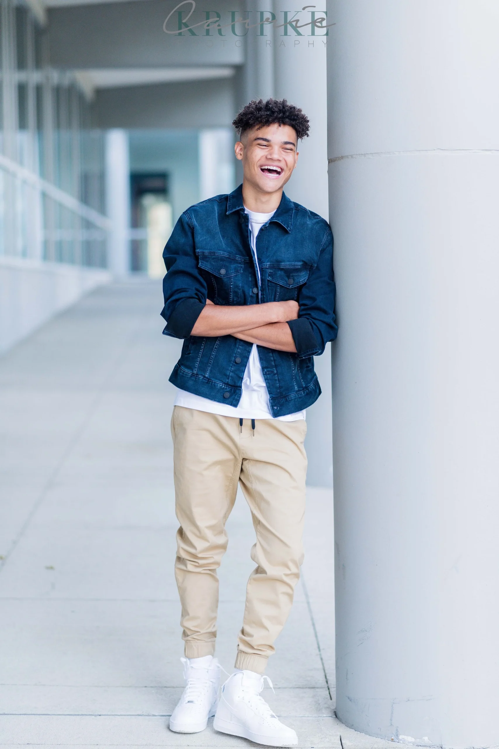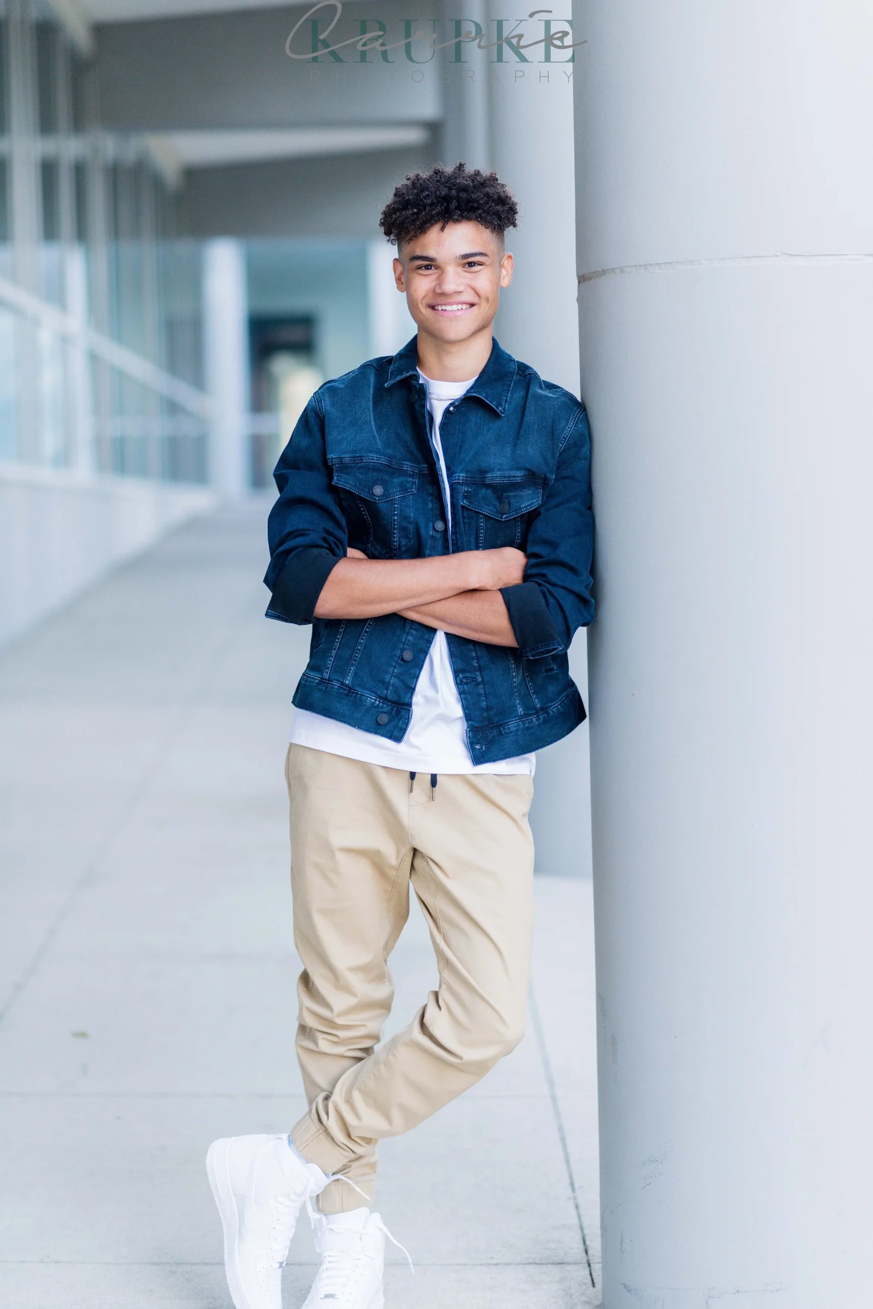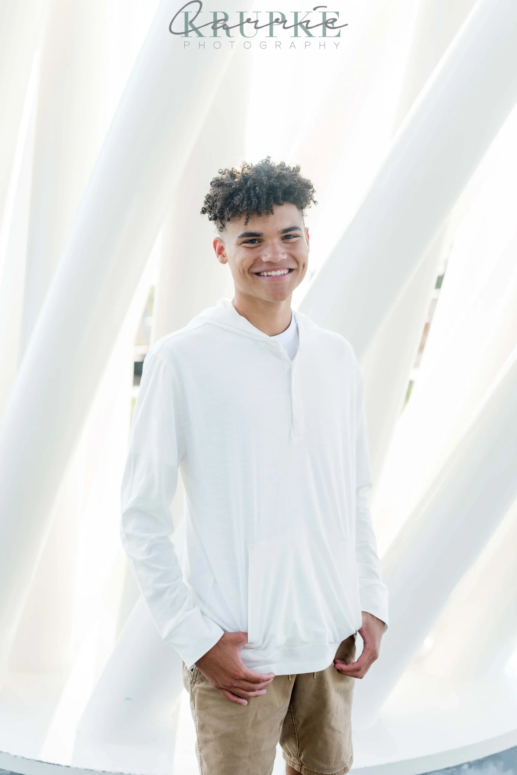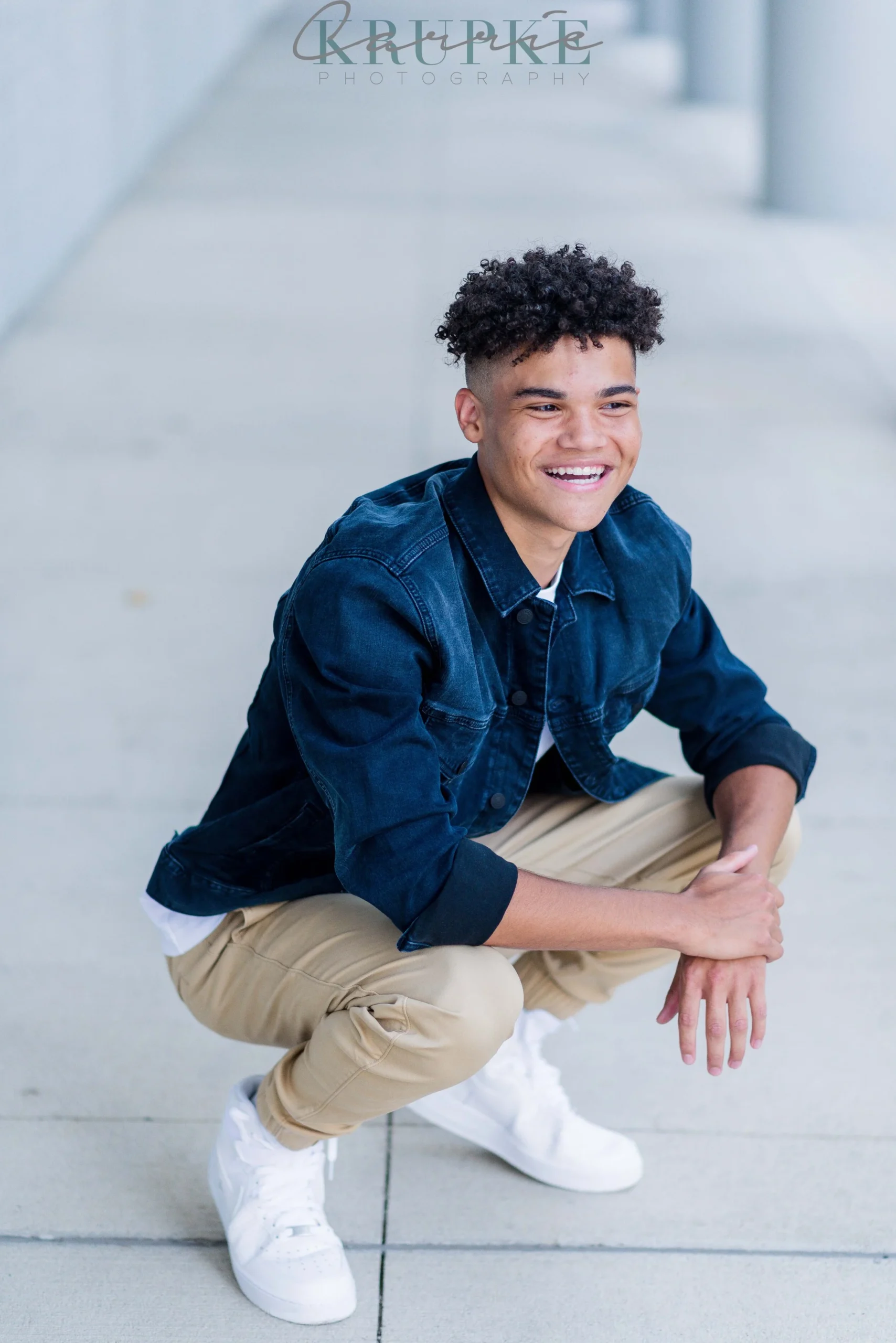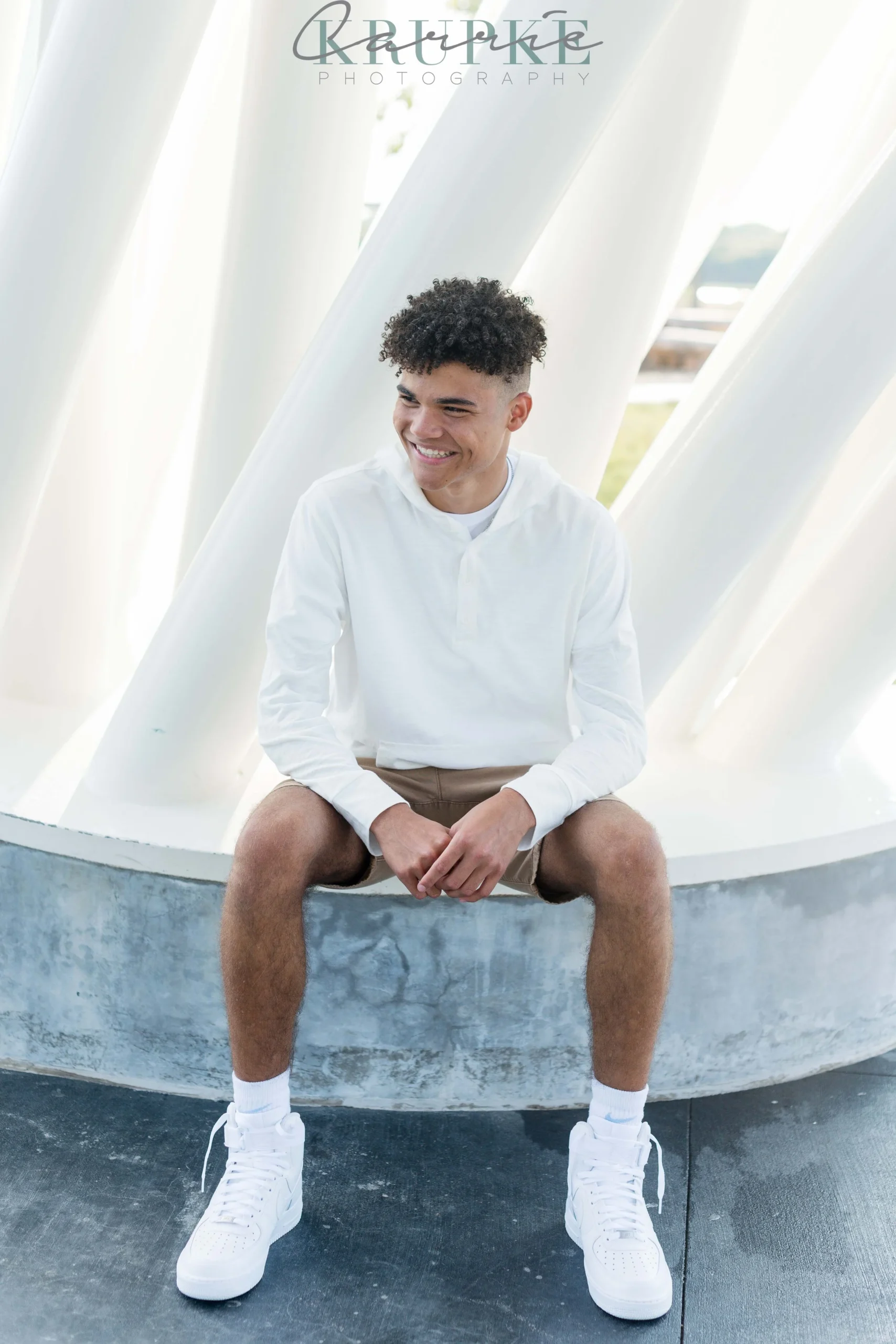 Our senior season is almost coming to a close over here at Carrie Krupke Photography. And what a season it’s been! I have so enjoyed photographing students I’ve previously taught and getting to know new students that I can now say hi to in the hallways and cheer on from the sidelines at their sporting events. Aiden is one of the new students on my radar and I’m so thankful for his laidback approach, his dad’s awesome dance moves to keep things light (and embarrassing) ;), and his step mom for contacting me to make this session even happen in the first place. Their one request? Water, because he likes to fish. But this guy was on the 3A Championship basketball team from back in March too. We opted for no props, not even the Championship ring, and we focused solely on who Aiden is & all the facial expressions that make him Aiden.