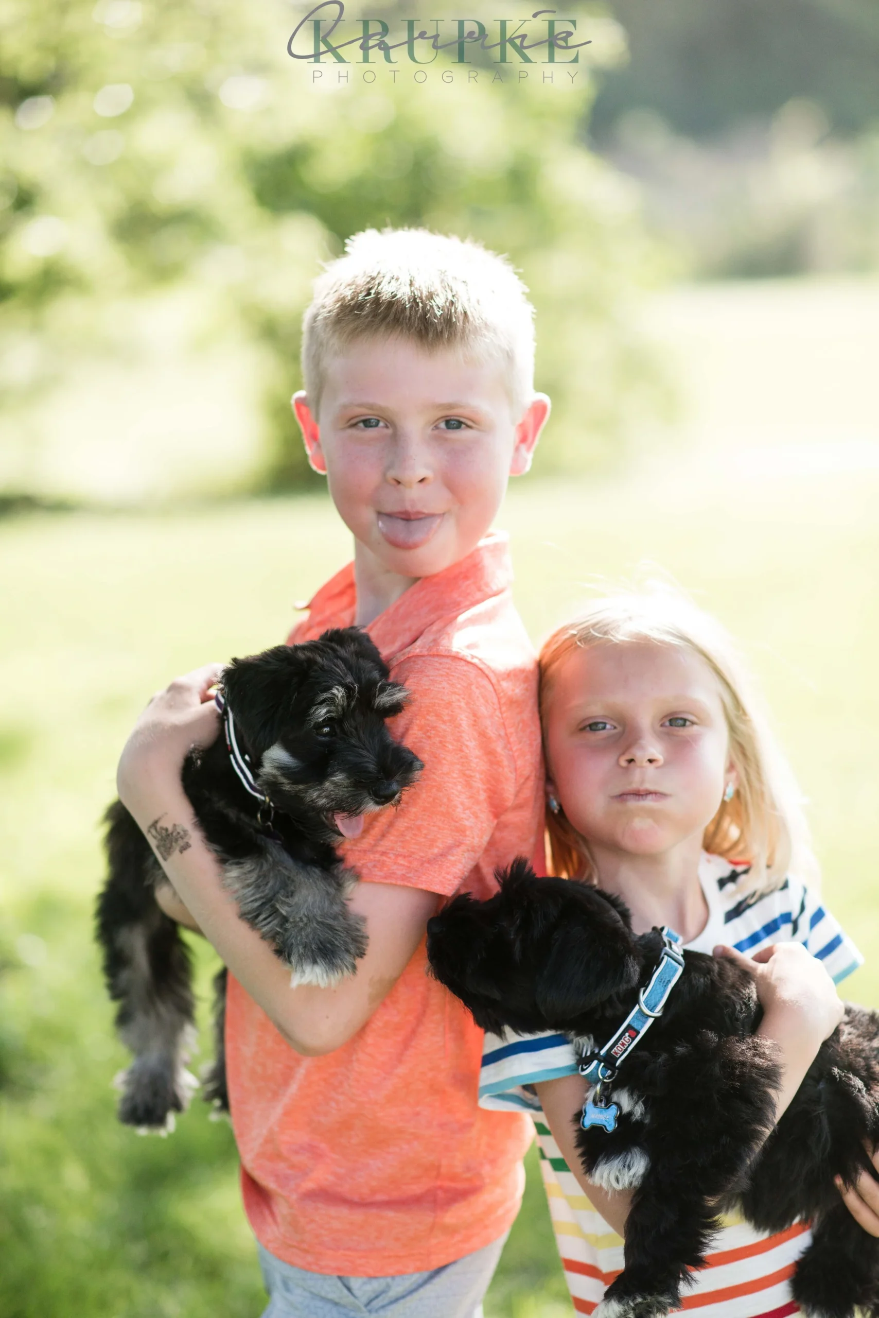 But I digress, let’s see some funnies! Our shooting season started in May with a few fresh deliveries to some sweet families on our roster. This was the ultimate “lifestyle newborn” session opportunity-shooting outside & capturing interaction among family members. We added two adorable schnauzer puppies to Melissa + Ryan’s crew(!) and then moved onto some of our older-child/teen families. Shane can pack a punch, Blaine’s got hops, Melissa handled the treats for the pups, Greg held his pose while Kelsey assisted a wardrobe malfunction, Will gifted Kelsey with dandelions for all her hard work, Keaton tried to eek out a smile on Reece and Carson tried to get Brecker to smile for me by creeping behind me. 🙂