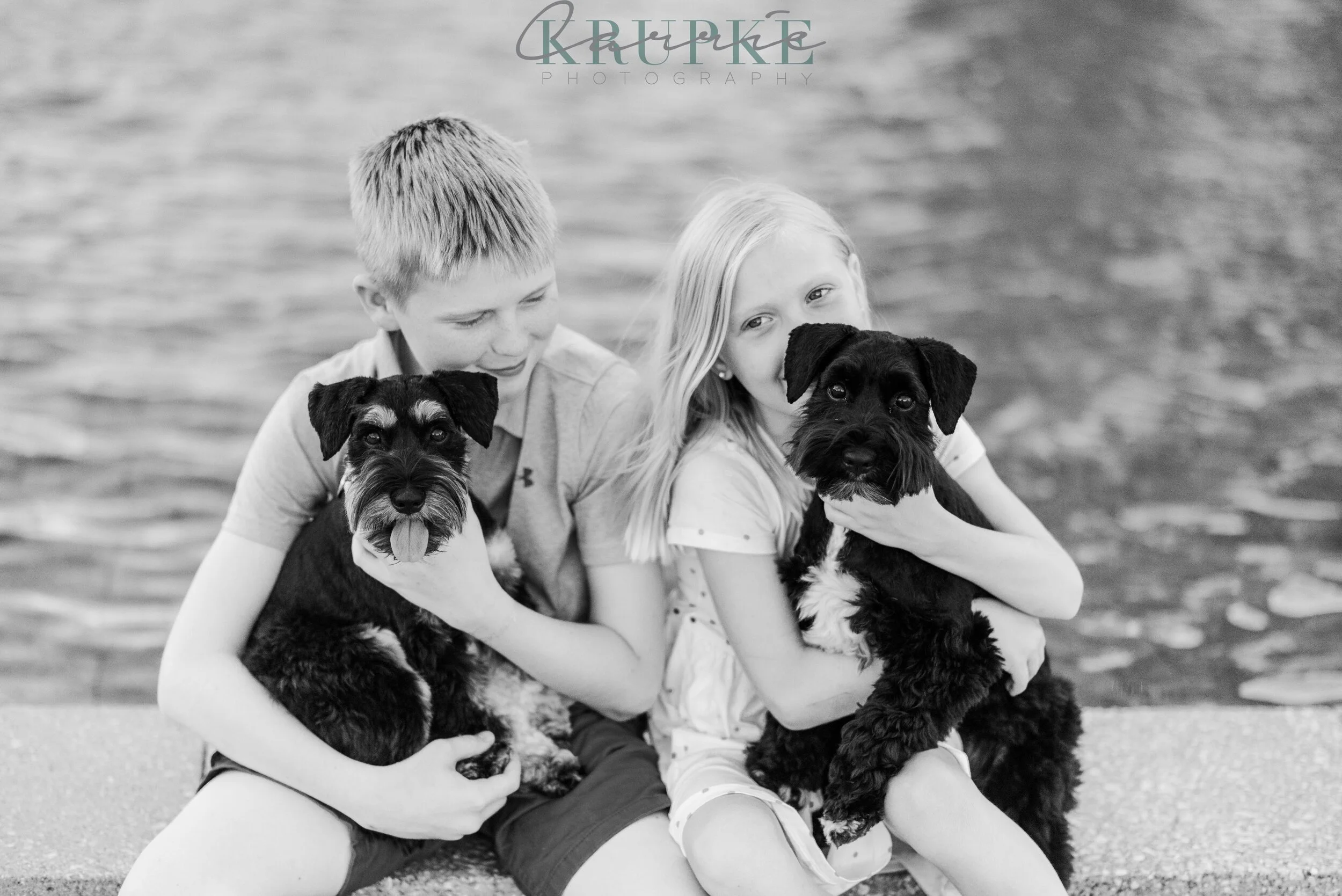 You’ve seen Melissa & Ryan here a TON on the blog and last summer, they added to their crew, the more adorable schnauzer puppies, Maddux & Tinsley. We scheduled their session in the evening as the heat was beginning to wane and especially for black-haired pups, I was thankful we did that!