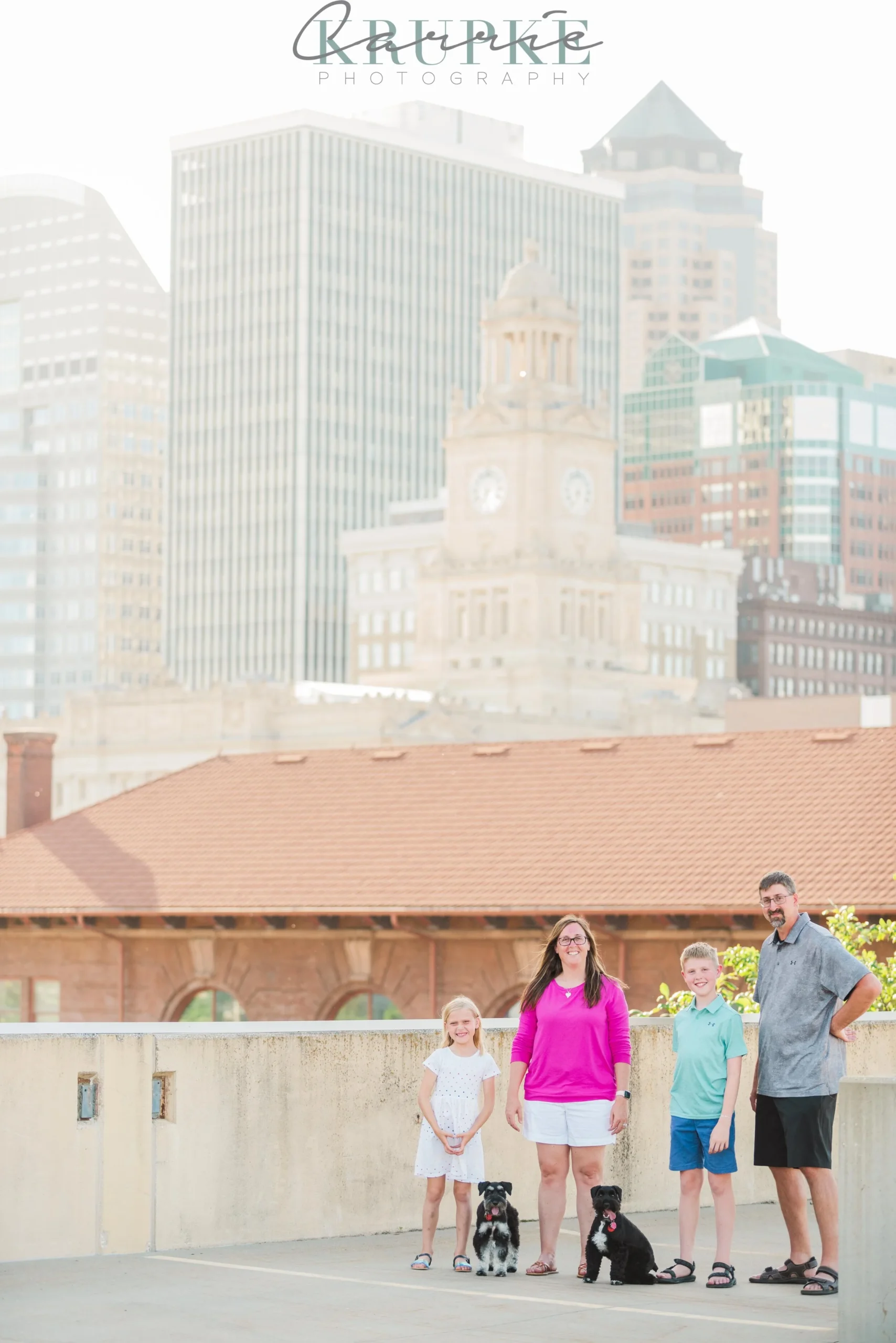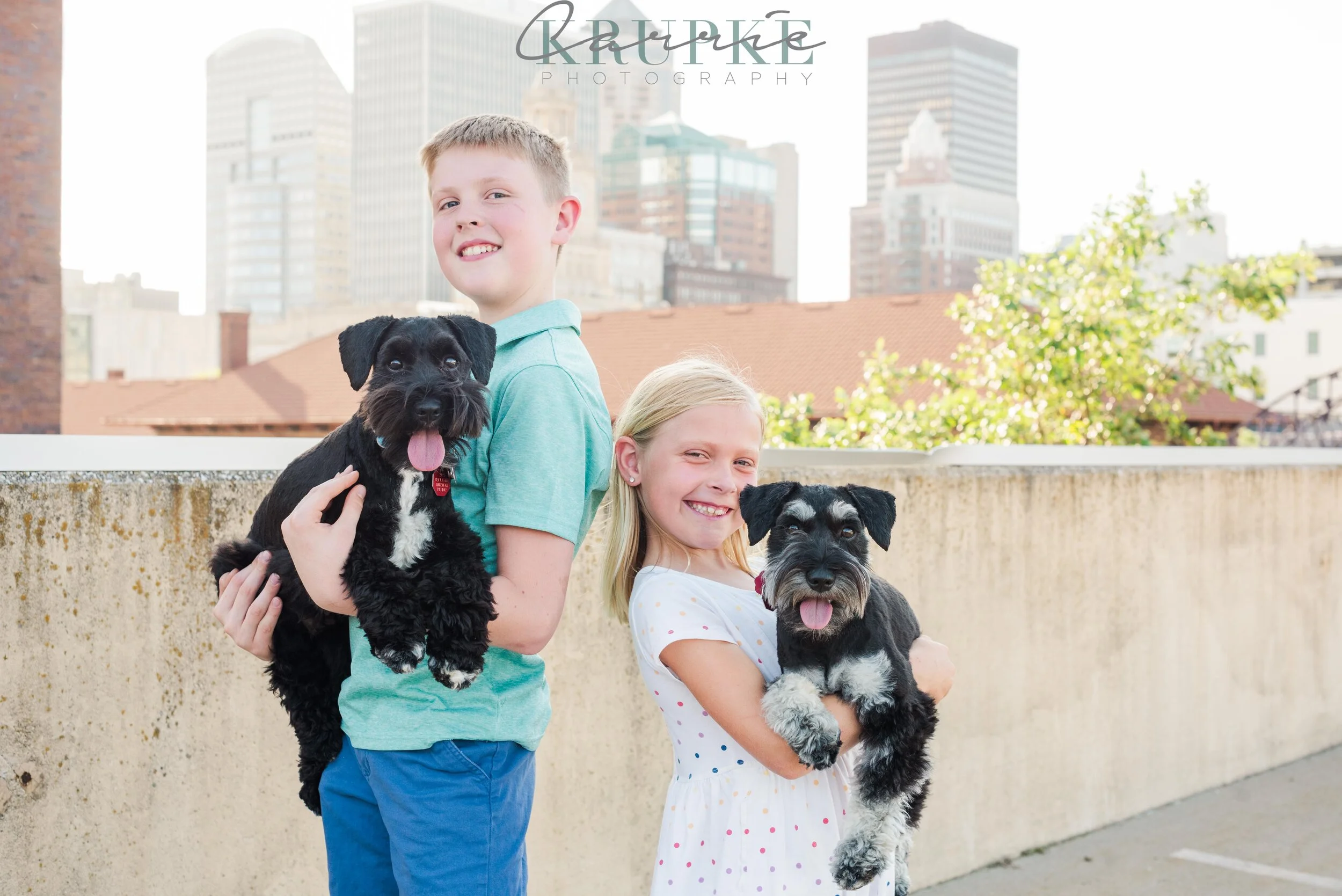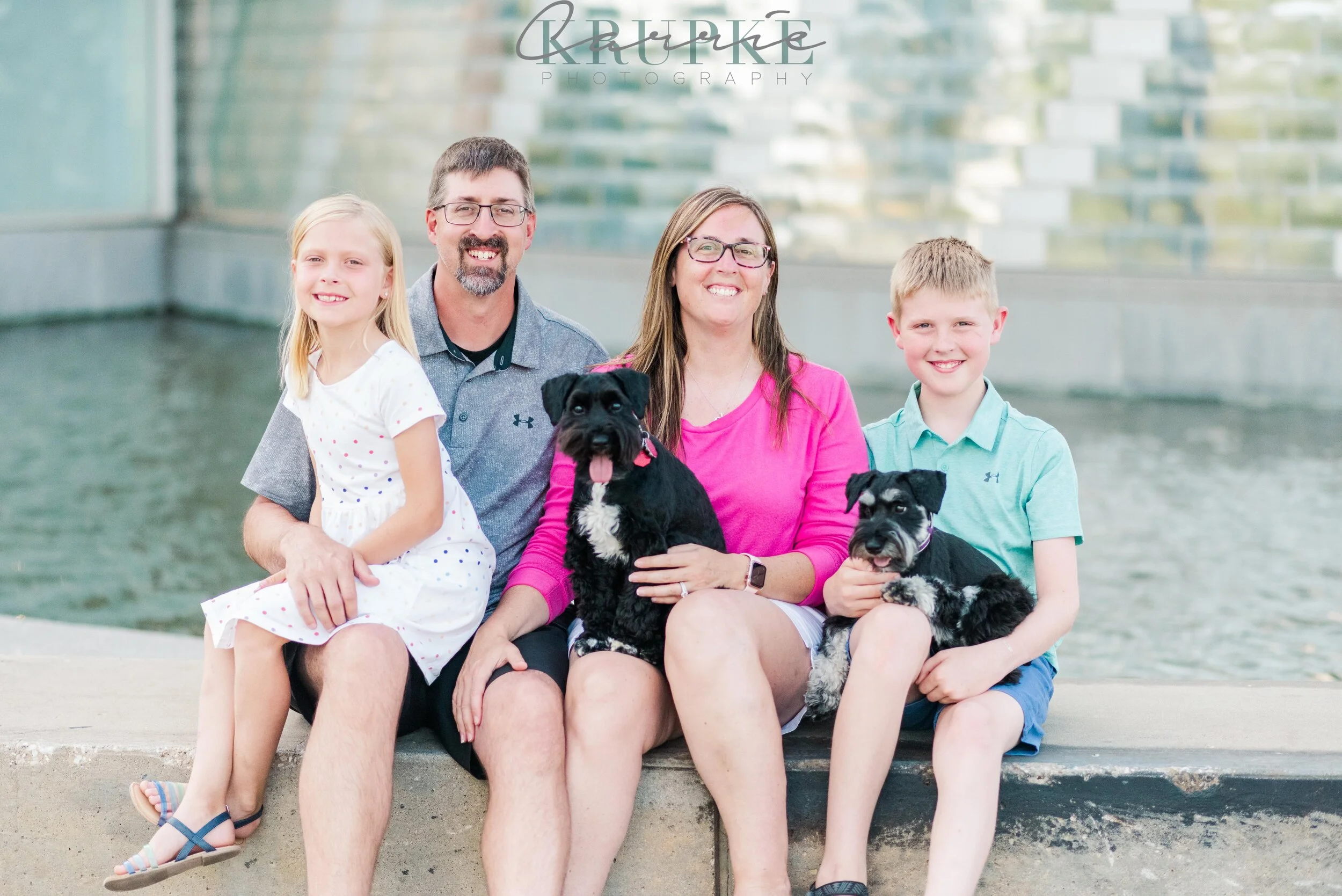 We started at the Science Center downtown and used their fun water feature in the shade. We then went up to the parking structure rooftop nearby to get some views of the skyline. The pups did so well to obey as we got some family photos with just the humans. 🙂 Scroll on through for the fun & antics! (and wagging tongues)