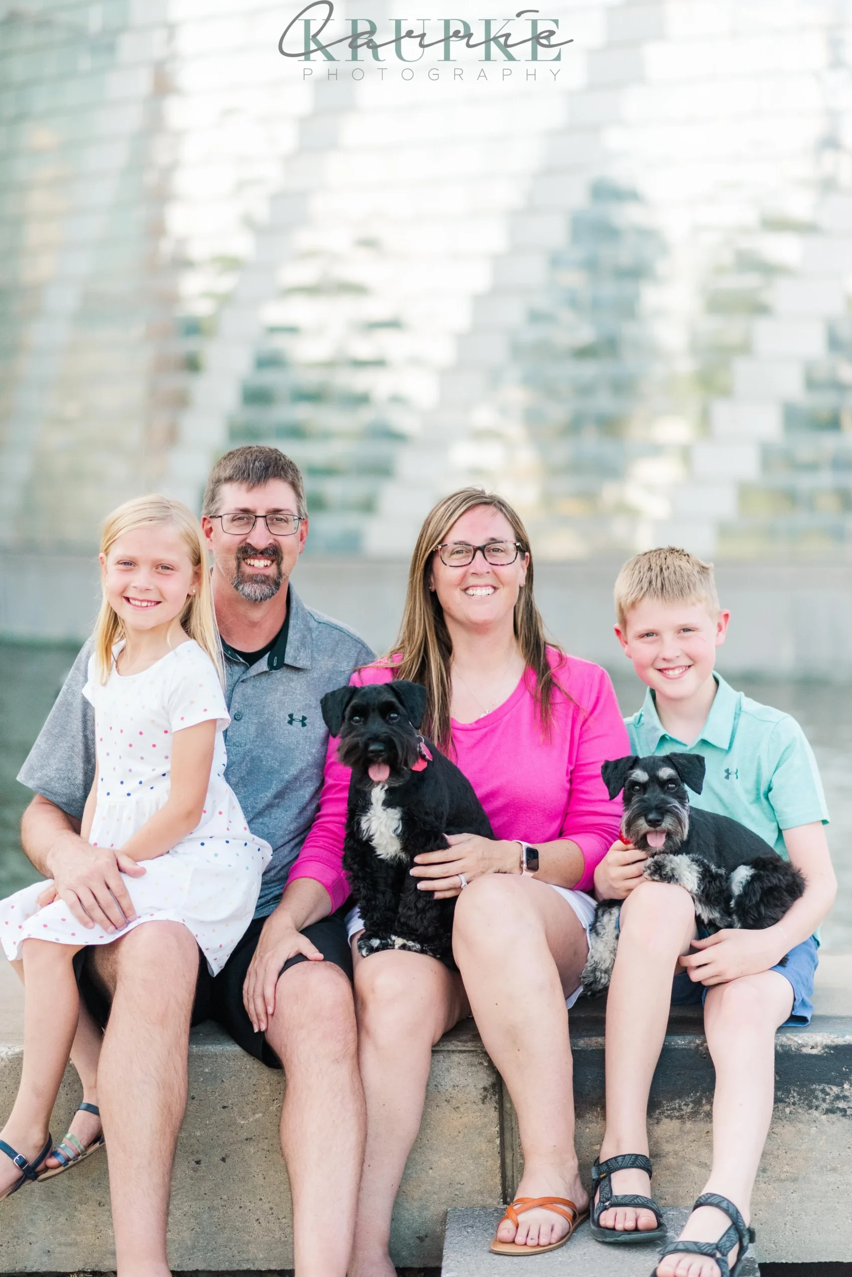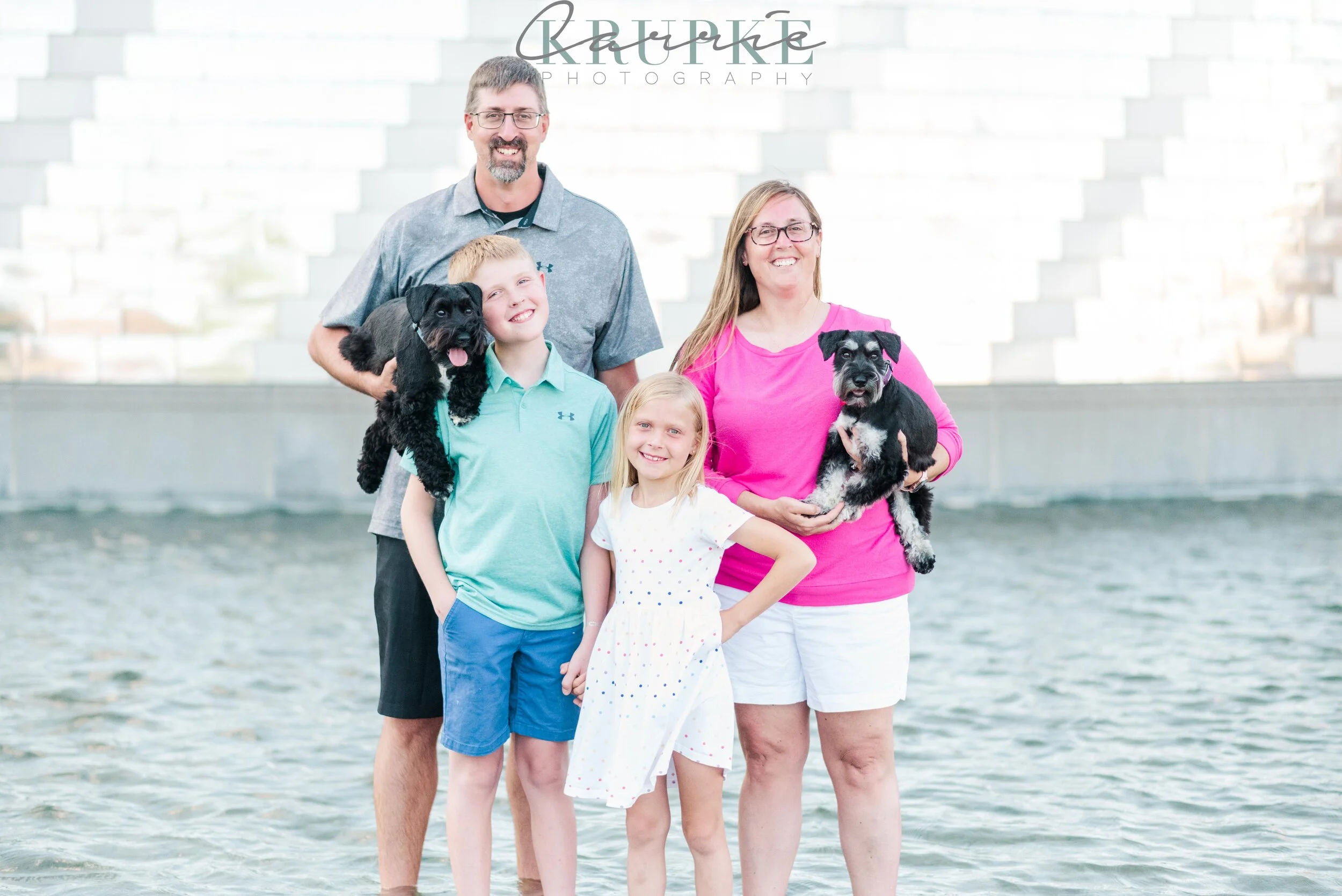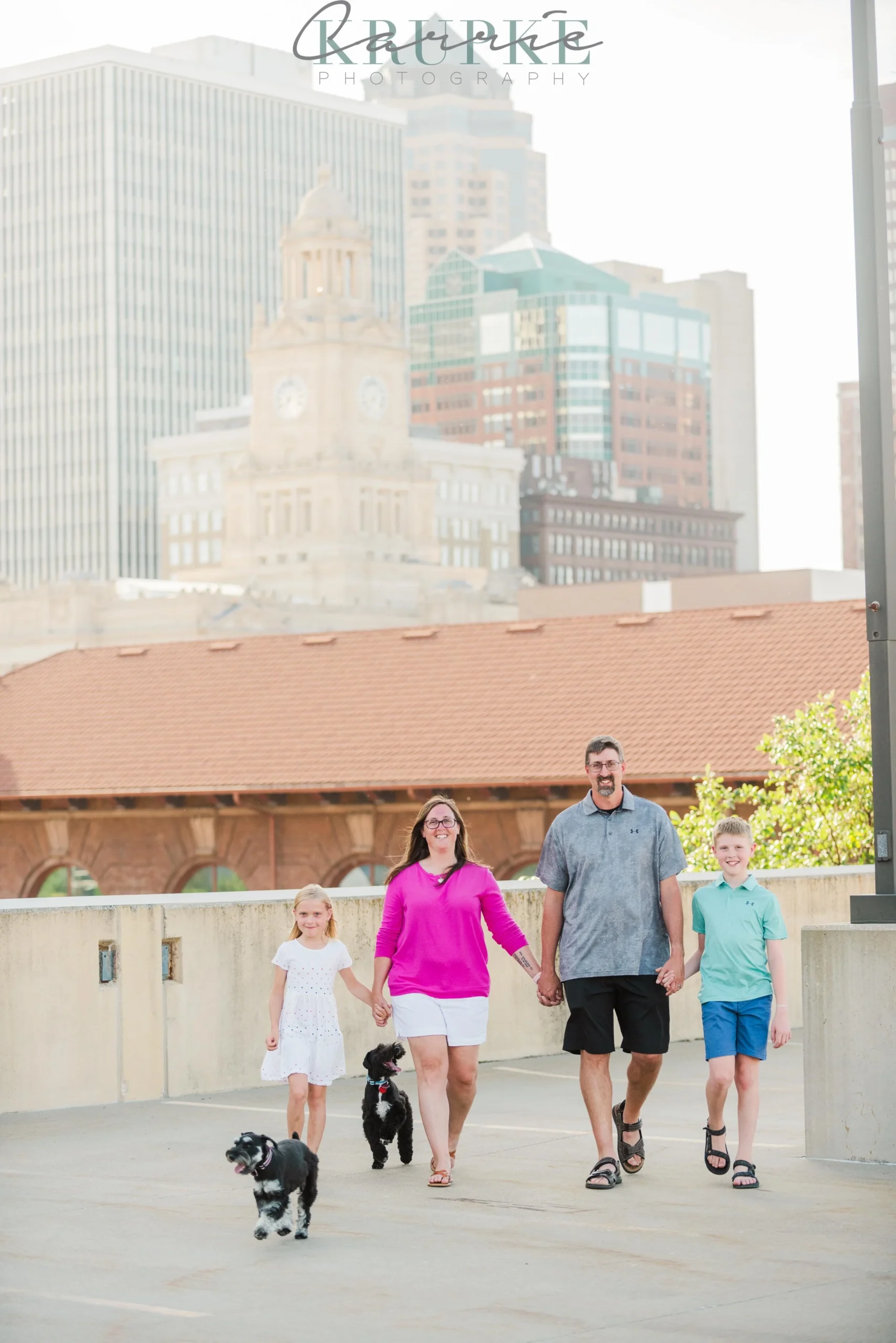 We started at the Science Center downtown and used their fun water feature in the shade. We then went up to the parking structure rooftop nearby to get some views of the skyline. The pups did so well to obey as we got some family photos with just the humans. 🙂 Scroll on through for the fun & antics! (and wagging tongues)
