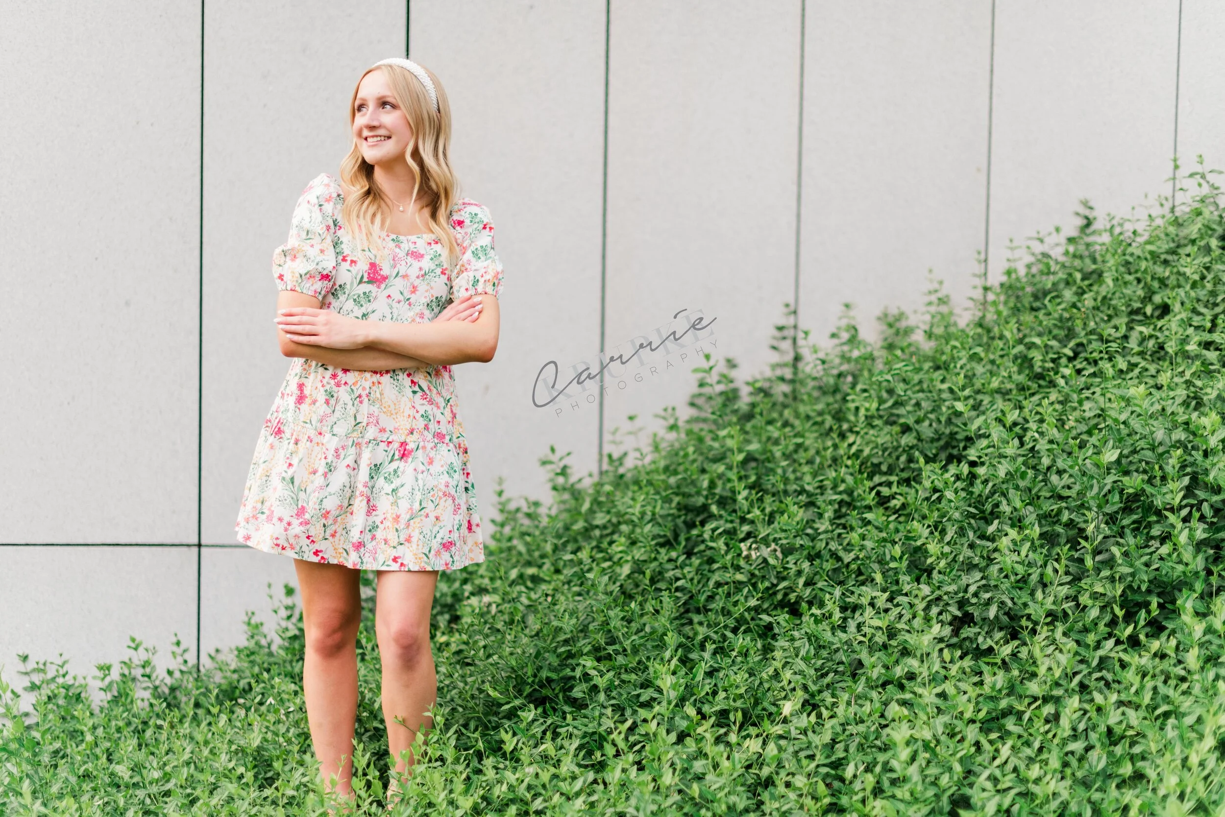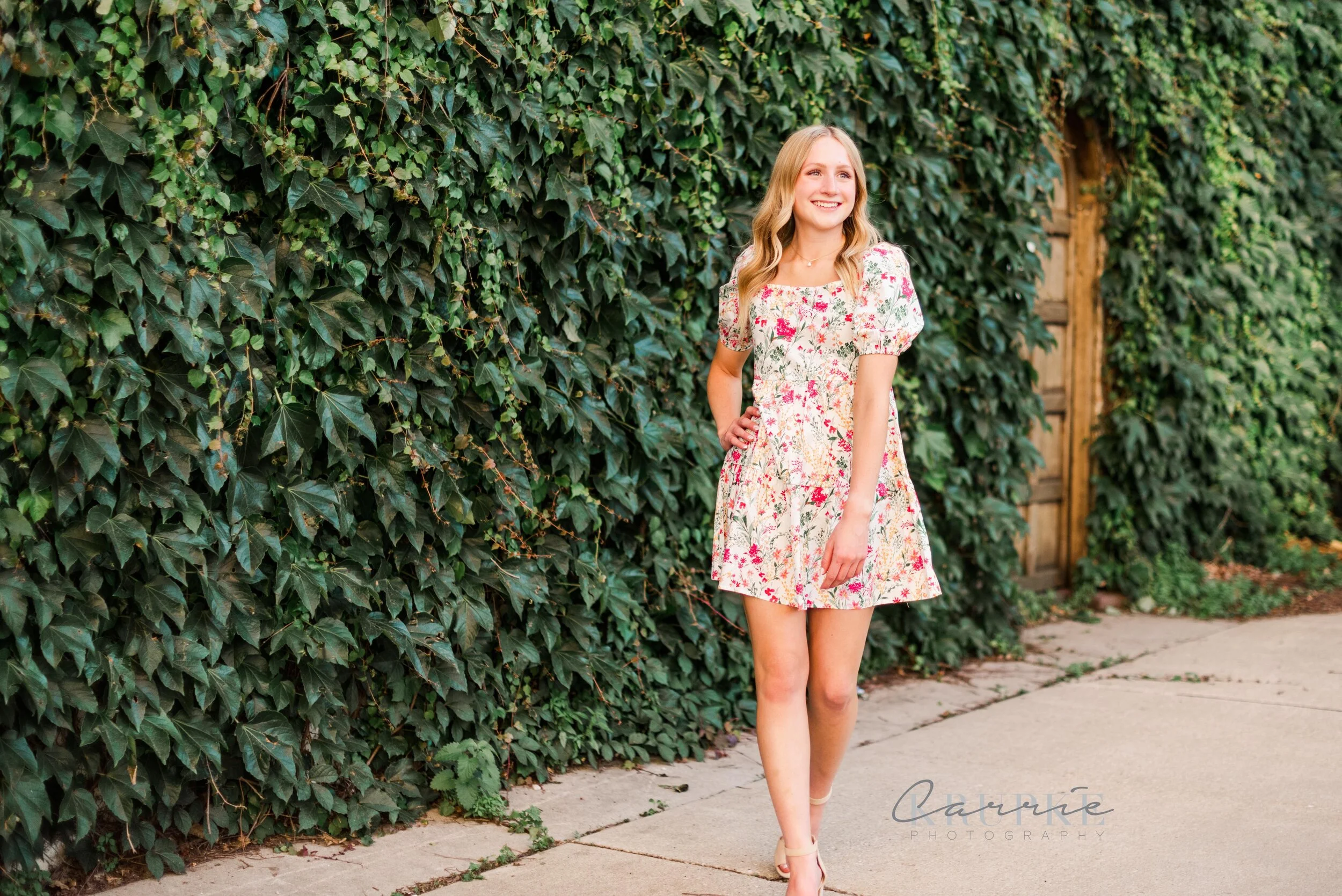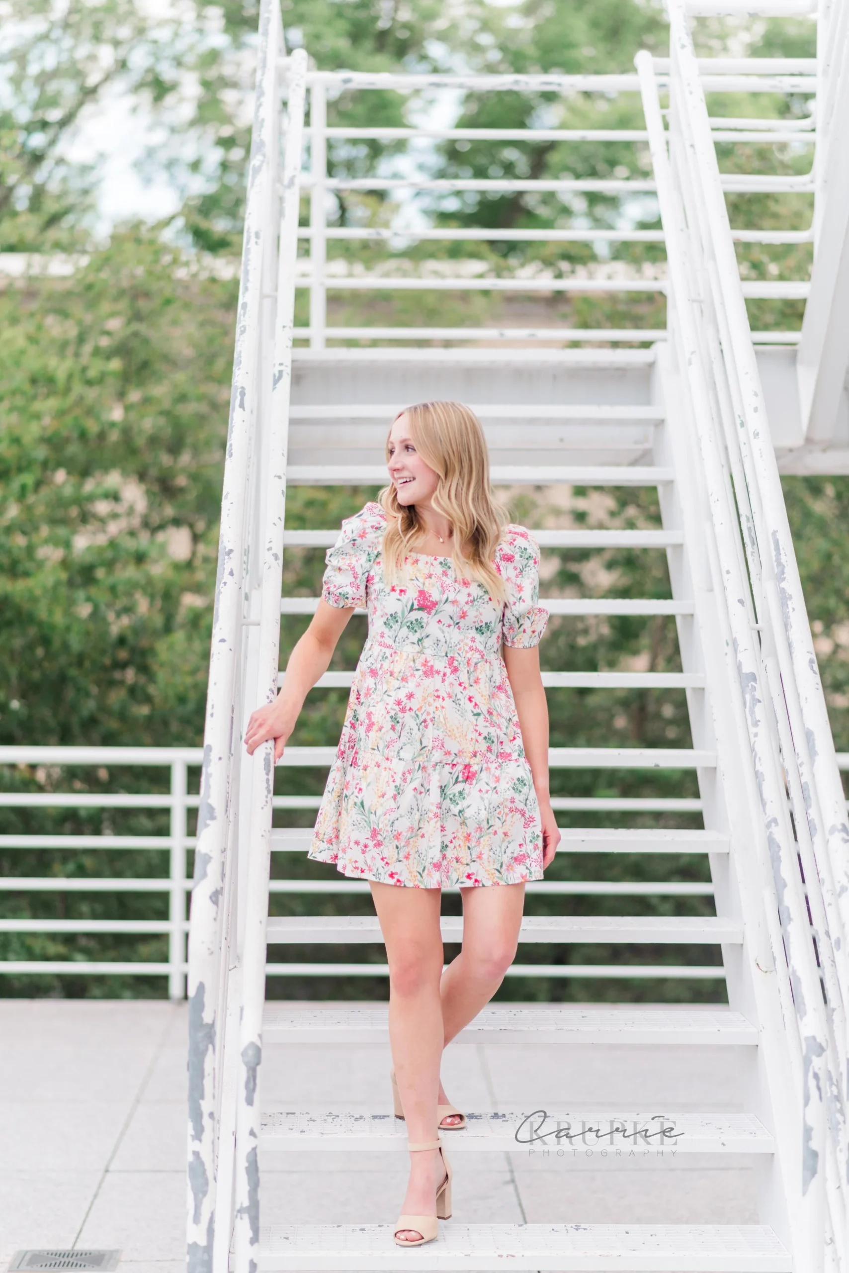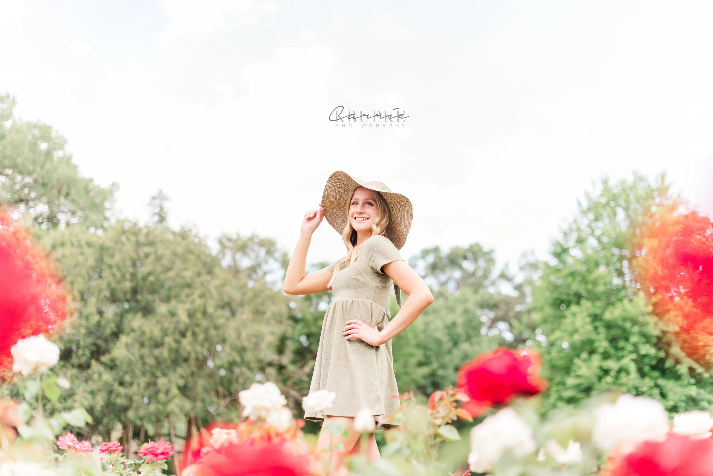 We had a beautiful evening (before it got ridiculously hot in July) here in Iowa and we started our time together at the Art Center when the roses were in full bloom. What a beautiful compliment to her outfit choices!