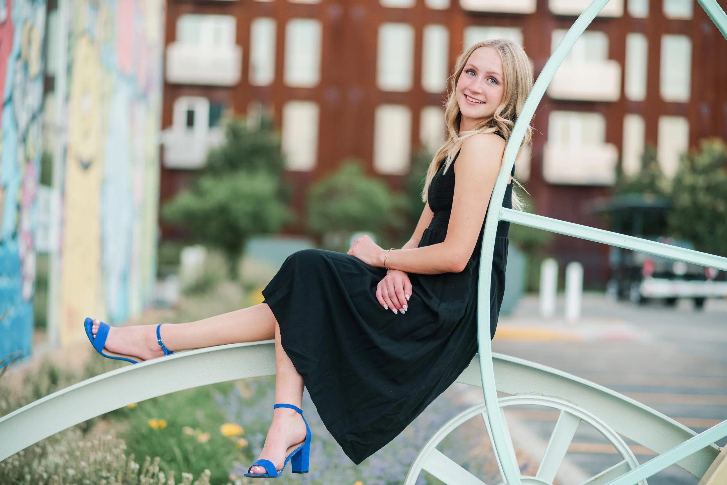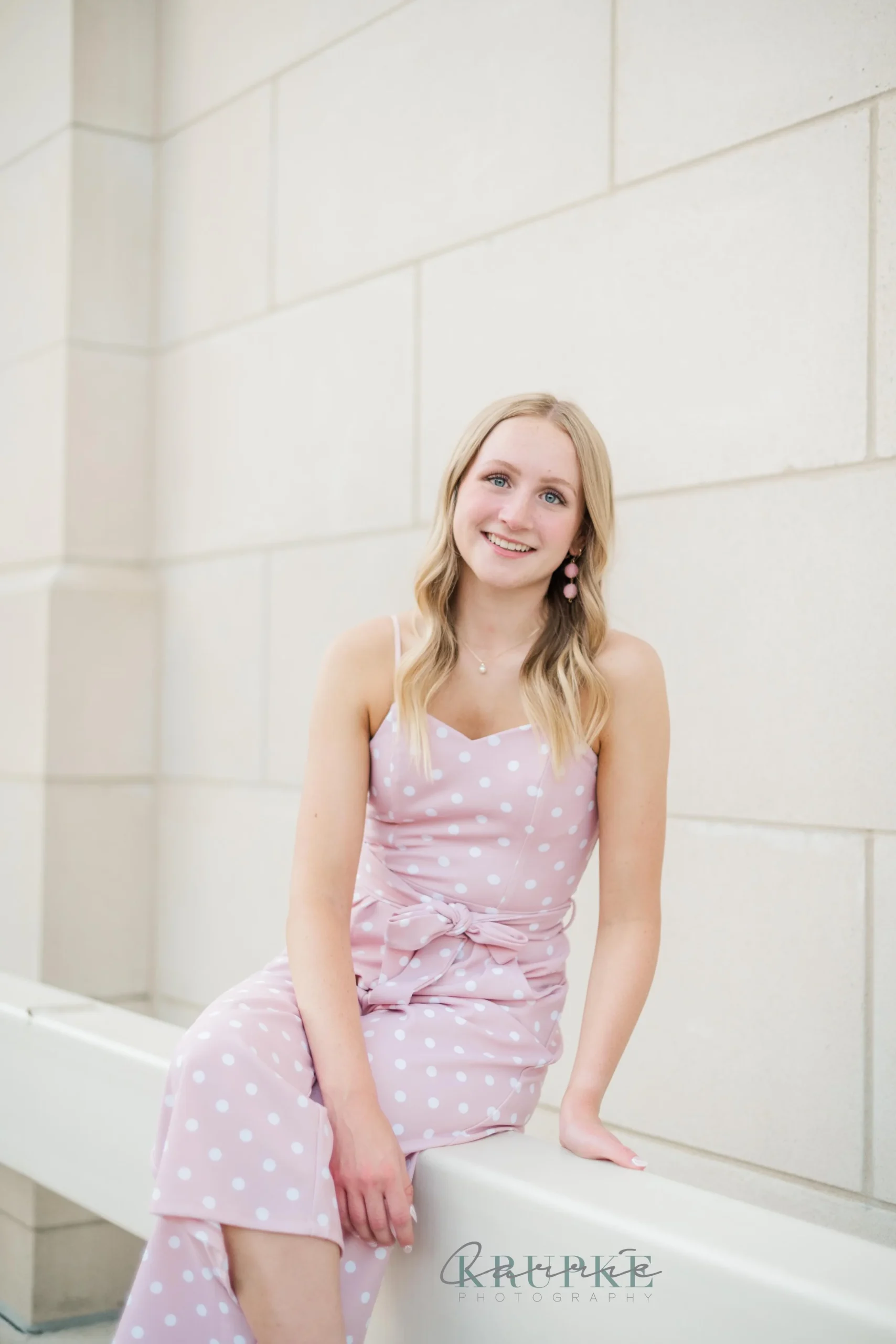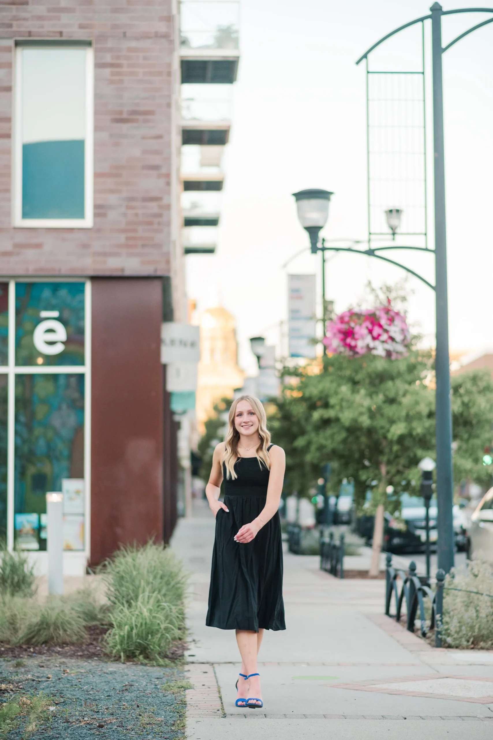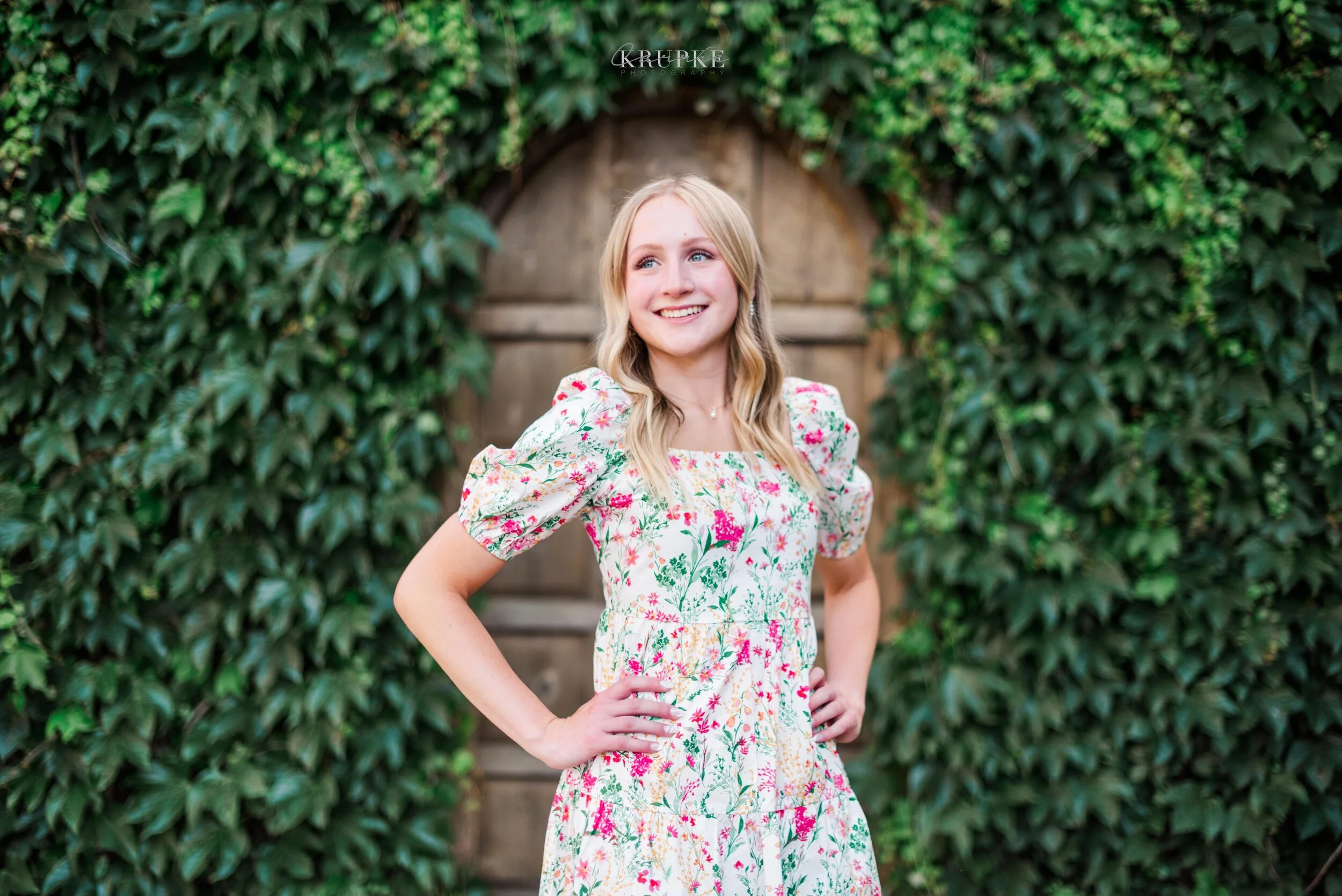 We had a beautiful evening (before it got ridiculously hot in July) here in Iowa and we started our time together at the Art Center when the roses were in full bloom. What a beautiful compliment to her outfit choices!