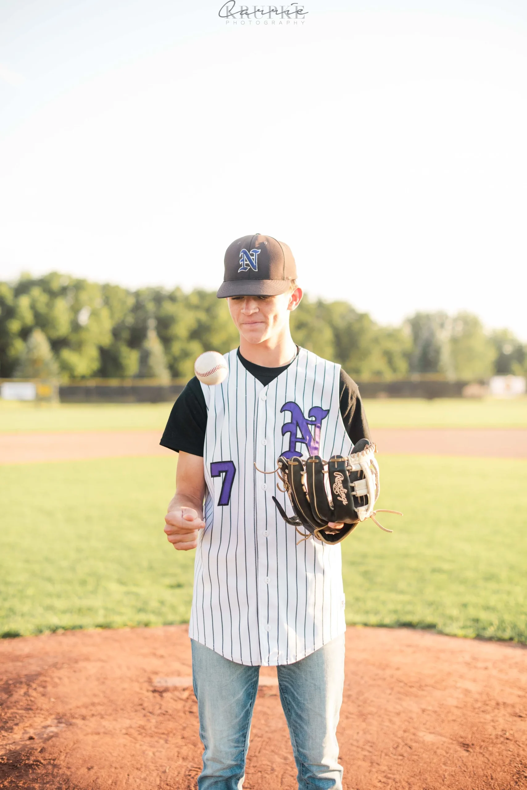 For someone who, when filling out their questionnaire said that he couldn’t live without sports, it was definitely fitting we finish our time together at the ball field. We were clearing the pitcher’s mound of tires & tarps, uncovering the deep red clay and it was as if we were uncovering hallowed ground. Let me rephrase: We were uncovering hallowed ground. I was educated on how tenderly to put my weight on the clay while photographing Tucker on the mound so as not to disturb the red “gold”-so valued is it to have a clay mound. This summer, for me, has been a lot of things, and one thread that keeps weaving back and forth is the sacredness of the sport of baseball. I was truly honored to be photographing Tucker in such a special place for him!