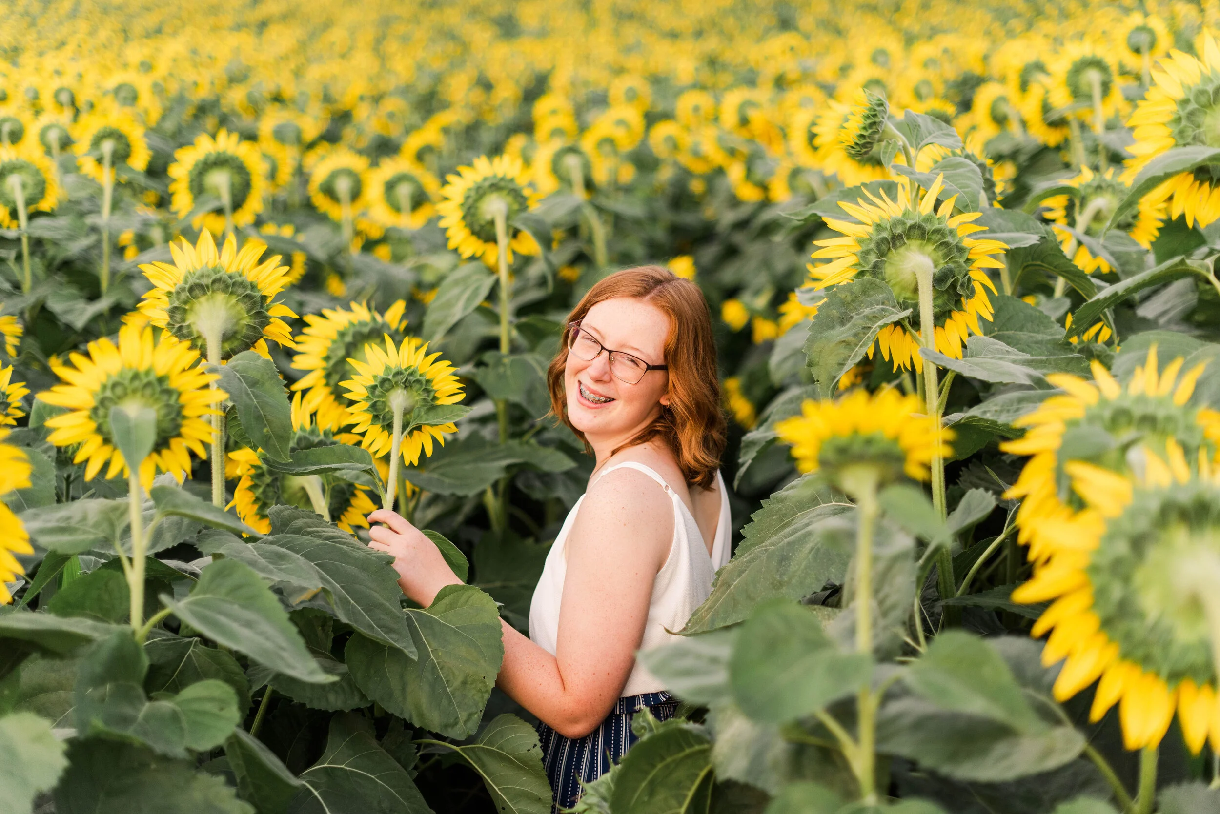 Oh, we laughed so much at this session! Even MY cheeks were sore by the end of the night. Sydney’s mom, Jodi is a teacher in my school district and we shared stories about how our school year was, laughed at our forgetfulness and commiserated on the loss of our fathers-all in a senior session evening! Sydney, in her quiet way, showed her pristine eye for color, texture, composition & we featured her amazing artwork in Norwalk that will be just a smattering of her legacy beyond her graduation in 2022. She has contributed to two huge murals in Norwalk, so we documented those, headed towards Valley Junction for some eclectic opportunities and then ended with the most gorgeous night in the sunflowers. Enjoy!