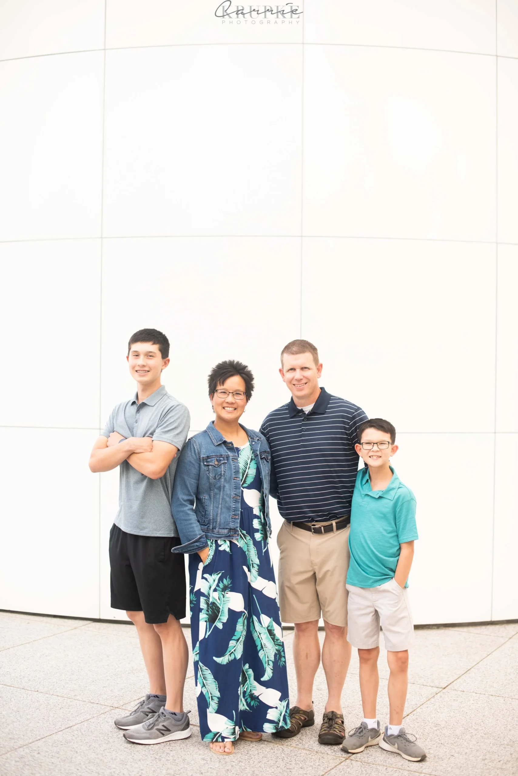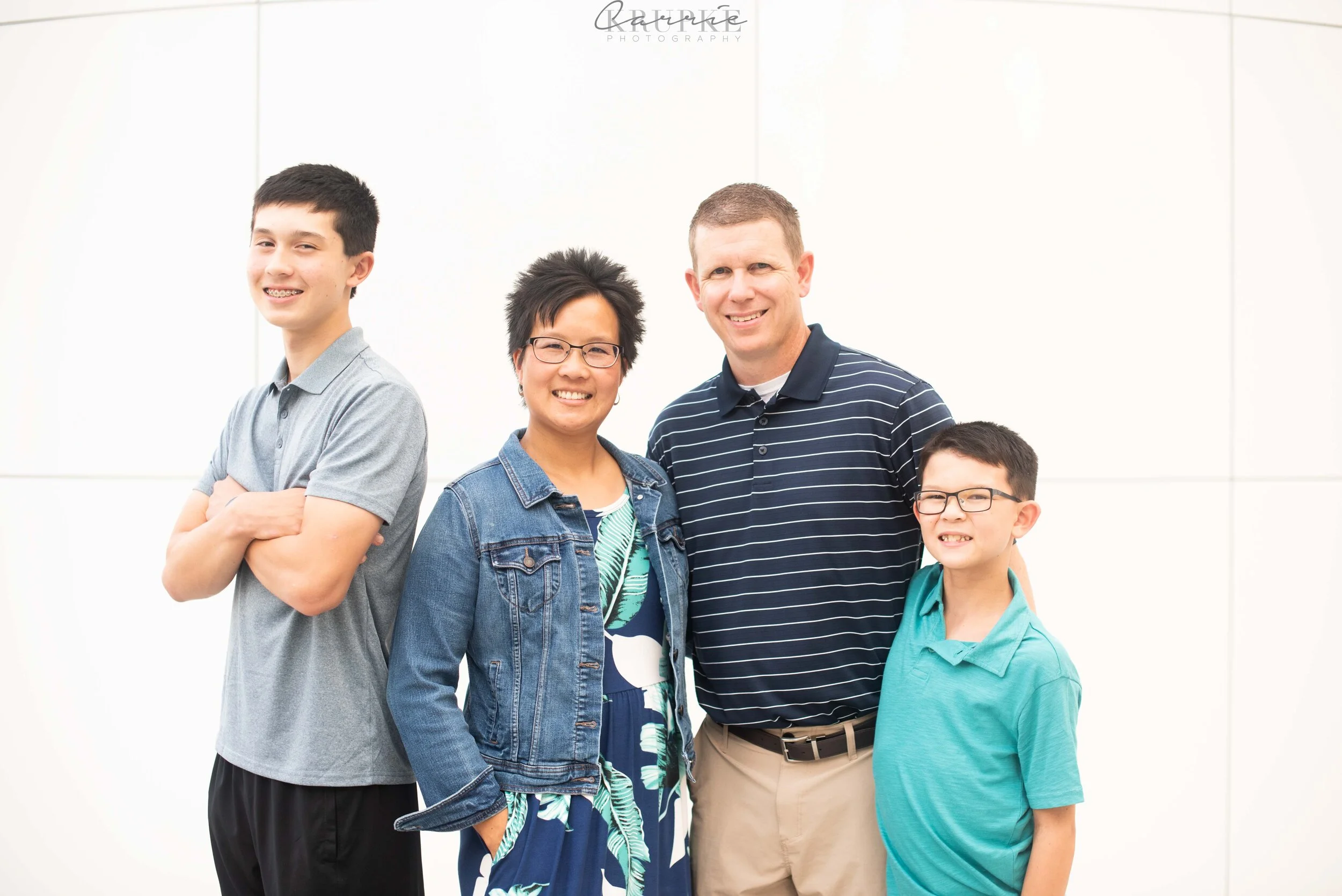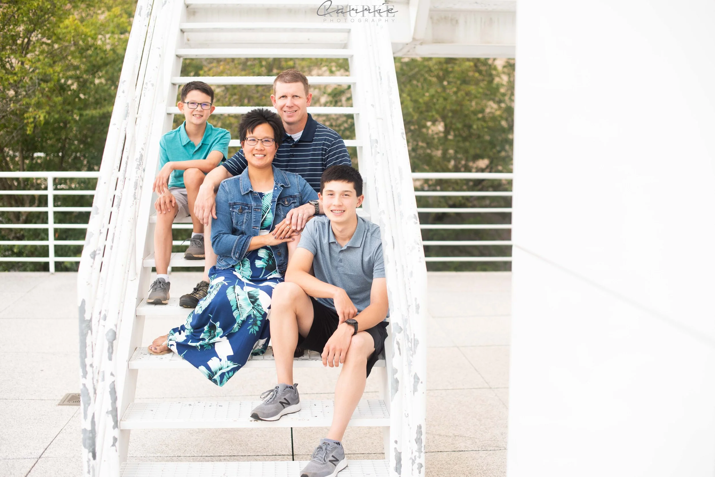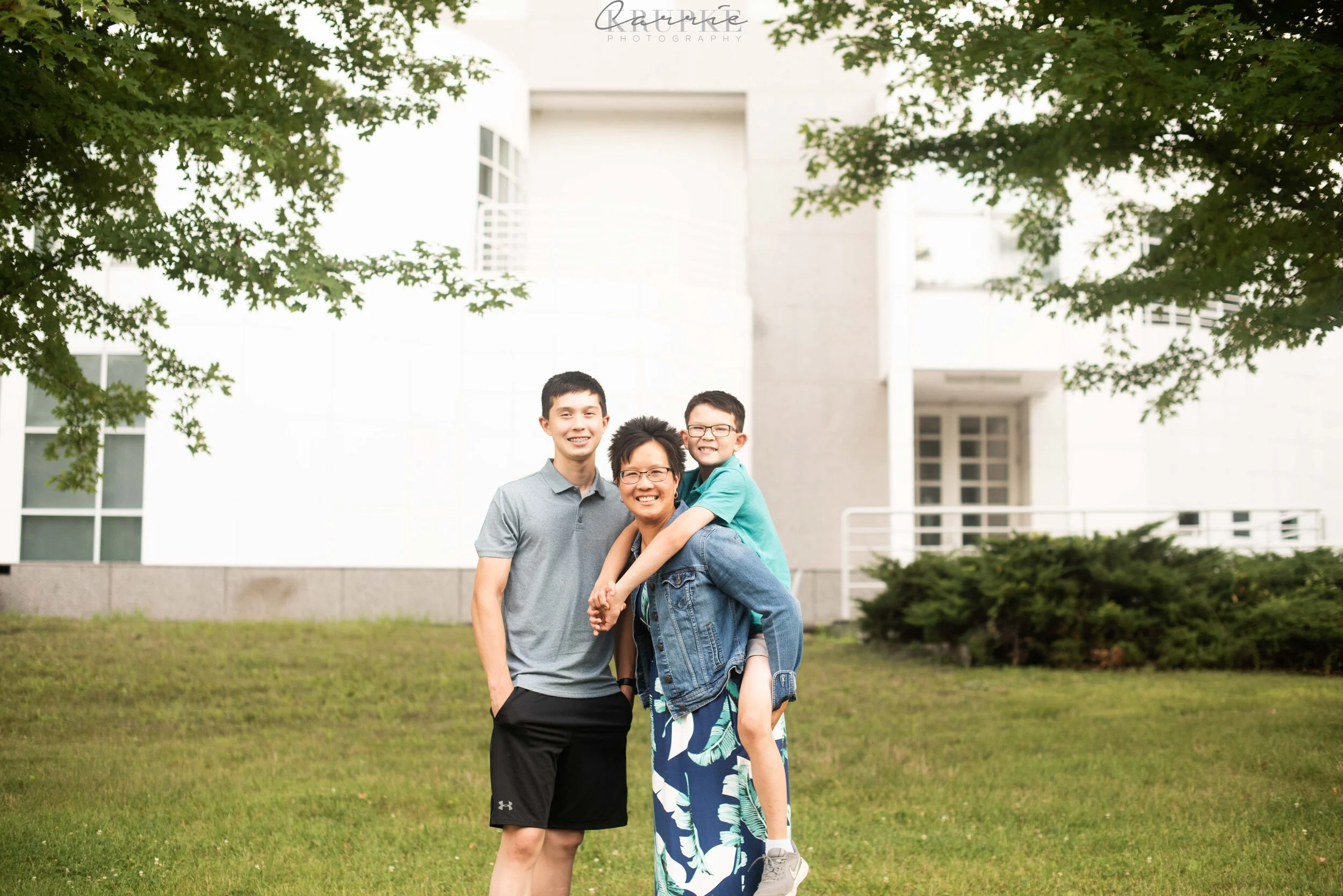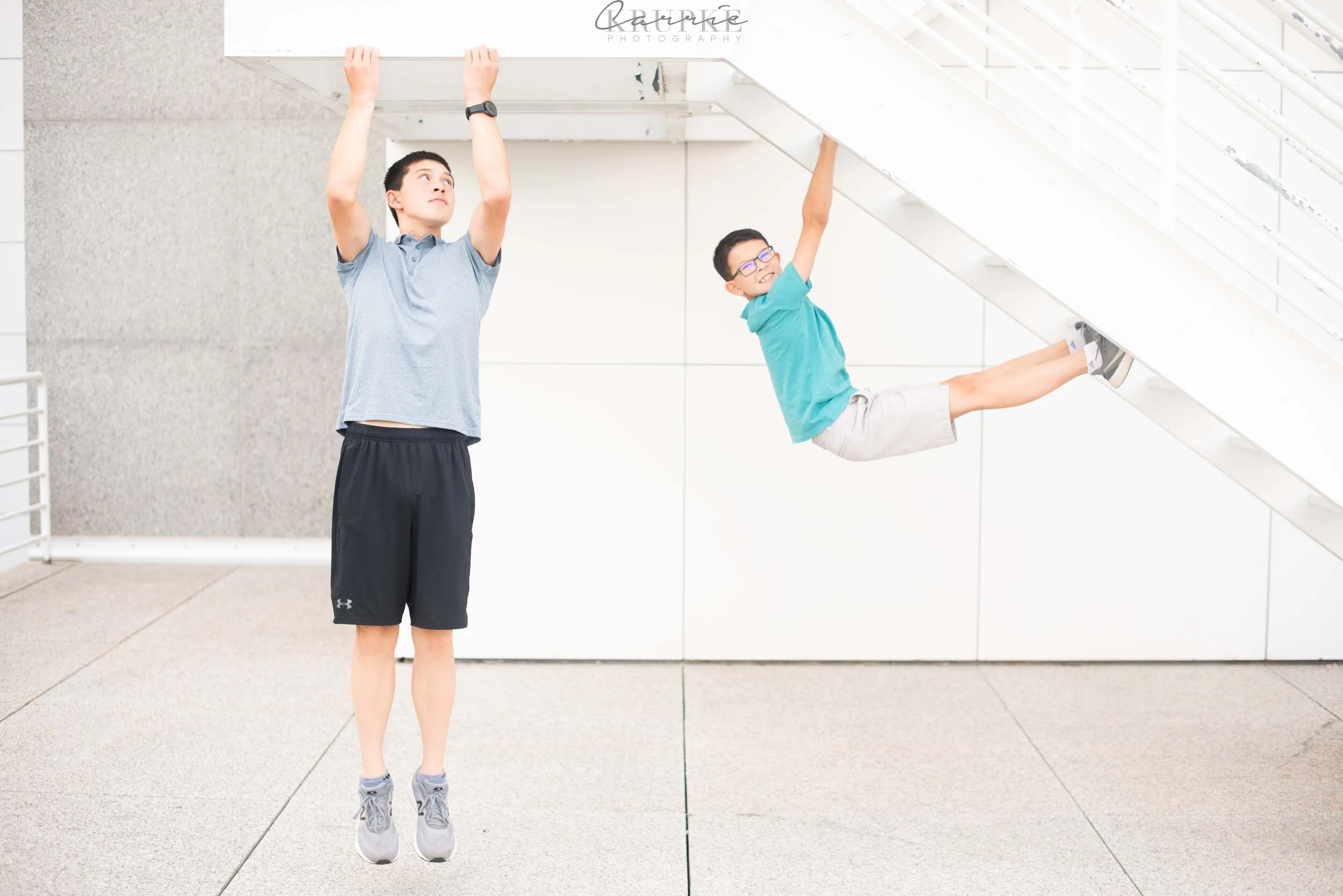 I remember walking into Nick + Elaine’s home years ago and photographing their oldest, Carson, as a 4 month old, sitting in a Christmas present wrapped box under the Christmas tree. He now towers over me, matches Nick in height and is too cool to touch Elaine in family photos. 😉 Welcome to 8th grade! Every session with this sweet family, the boys will find something to hang or leap from. Usually, it’s a tree and it causes green casts on their skin, so I was super pleased to use the Art Center as a backdrop and ensure even skin tones for their annual hanging “ninja” images. And when you’re ranked in the top 15 in the nation in your age category for Ninja competition, it’s an honor to photograph Carson in this way! Fresh off a trip to Vegas/LA area for the Ninja Nationals, here is Nick & Elaine’s family: