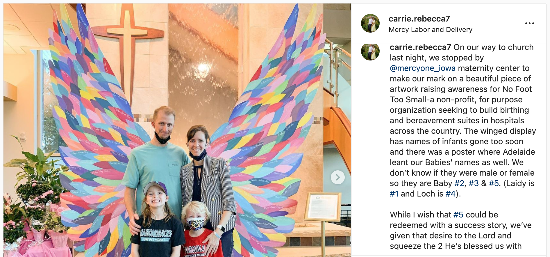 By August, 2021, I started giving away baby clothes and accessories, but my maternity clothes were still in a cedar chest, holding out the thinnest sliver of hope. October came, Infertility Awareness Month, and a friend of our’s let us know about an art display at MercyOne Maternity Center honoring babies gone too soon. I posted this on social on Oct. 14th: