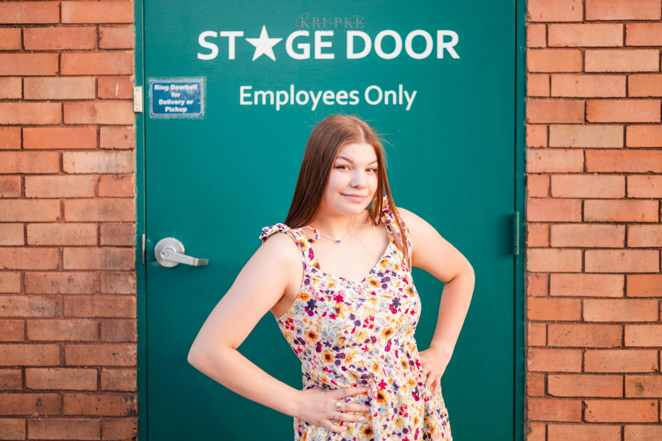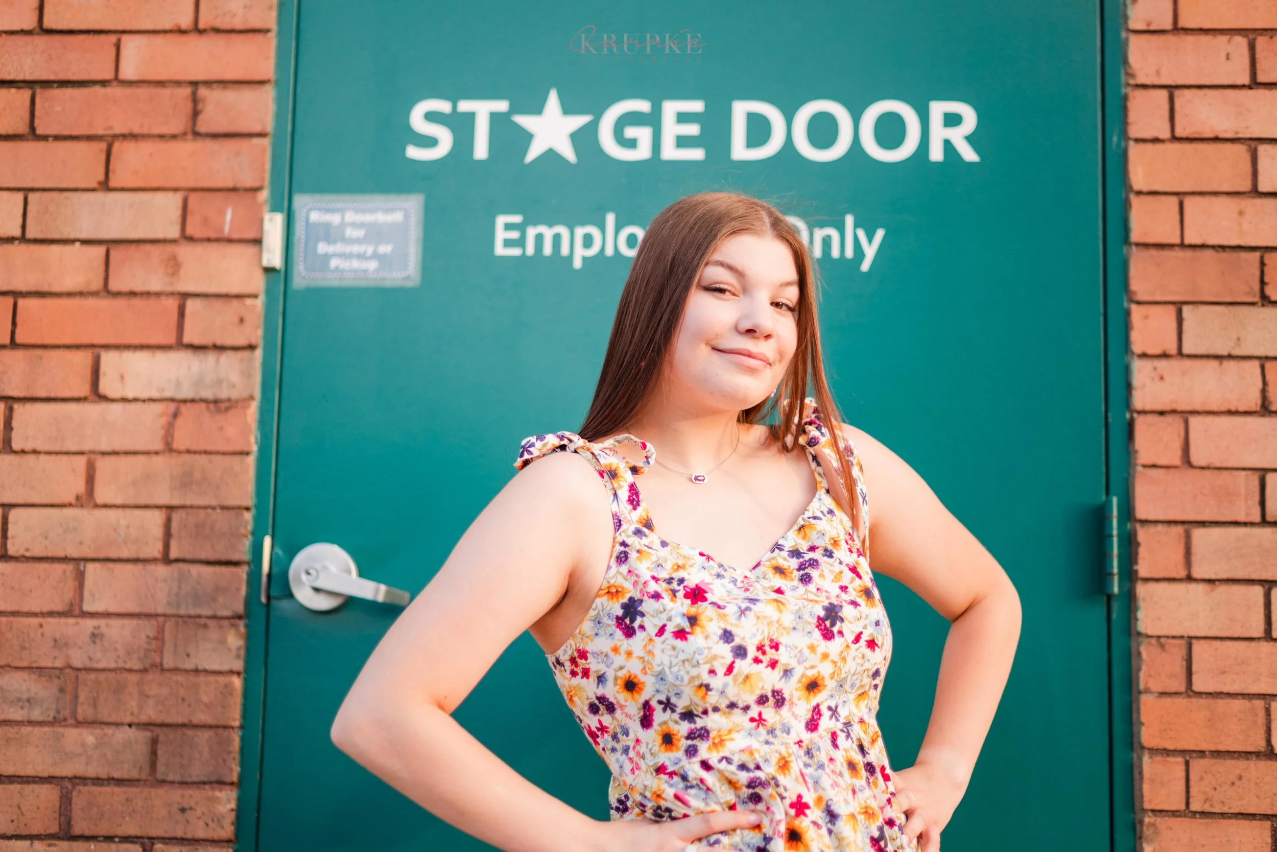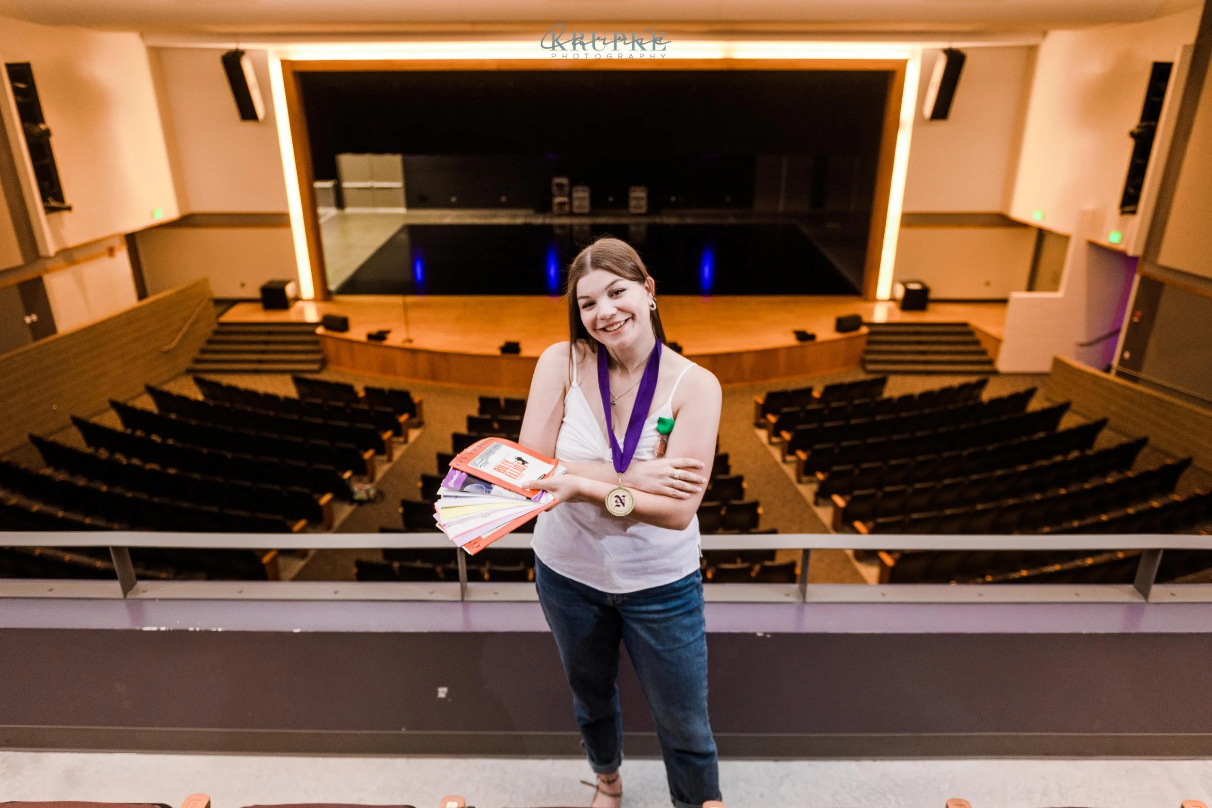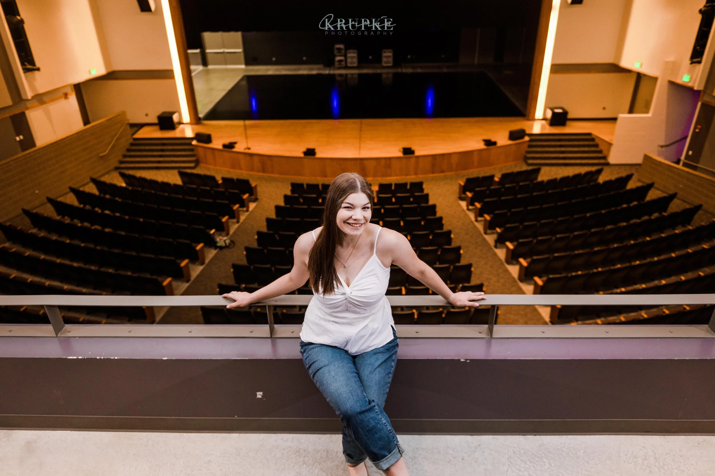 The challenge is always: how to make a location I’ve already used look different for each senior. Addie has been in SO.Many.Plays with both the Des Moines Playhouse and within her school career that we had to feature where she’s spent countless hours: both her high school auditorium and the Des Moines Playhouse itself. I’m so thankful she was flexible and trusting of a few ideas I had and I love the results of making the auditorium look different than any other student I’ve photographed. I wanted to make it look like “this is Addie’s house” and she owned it! Just look at all those playbills and programs that aren’t even the entire collection!