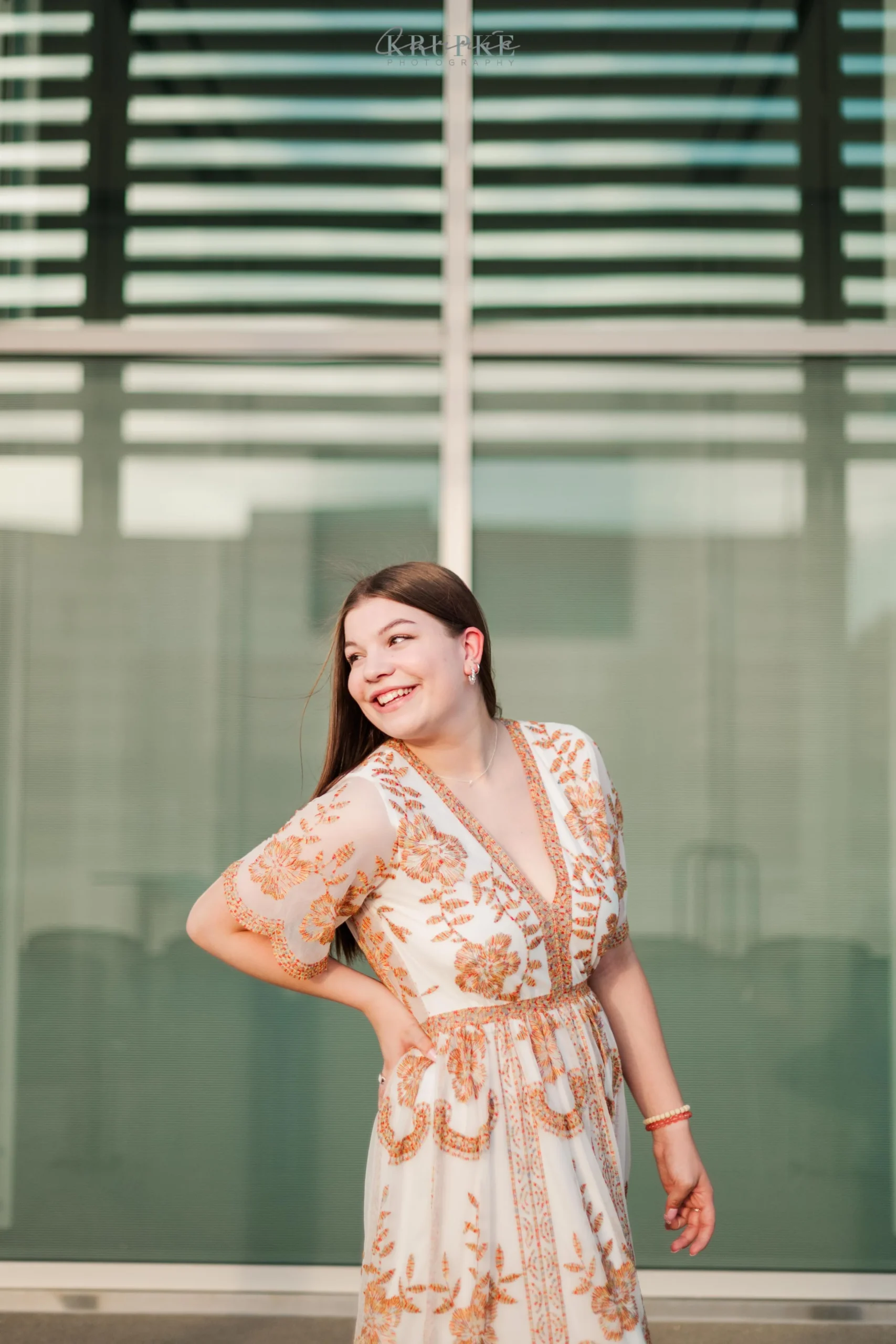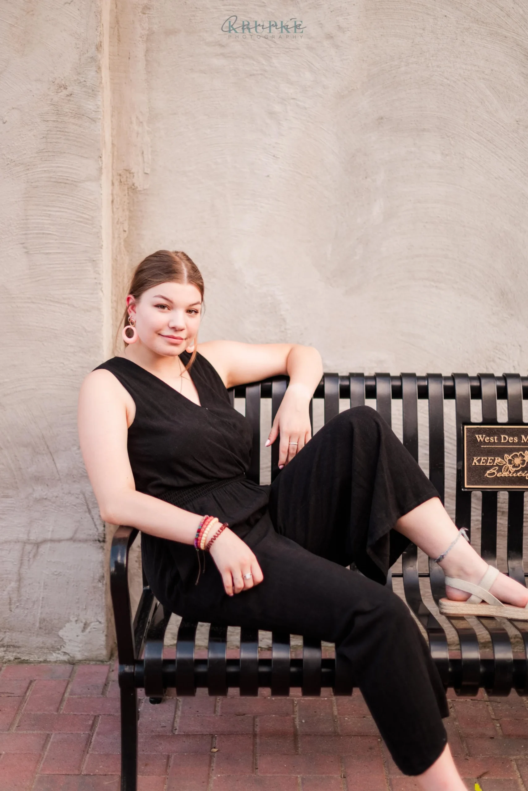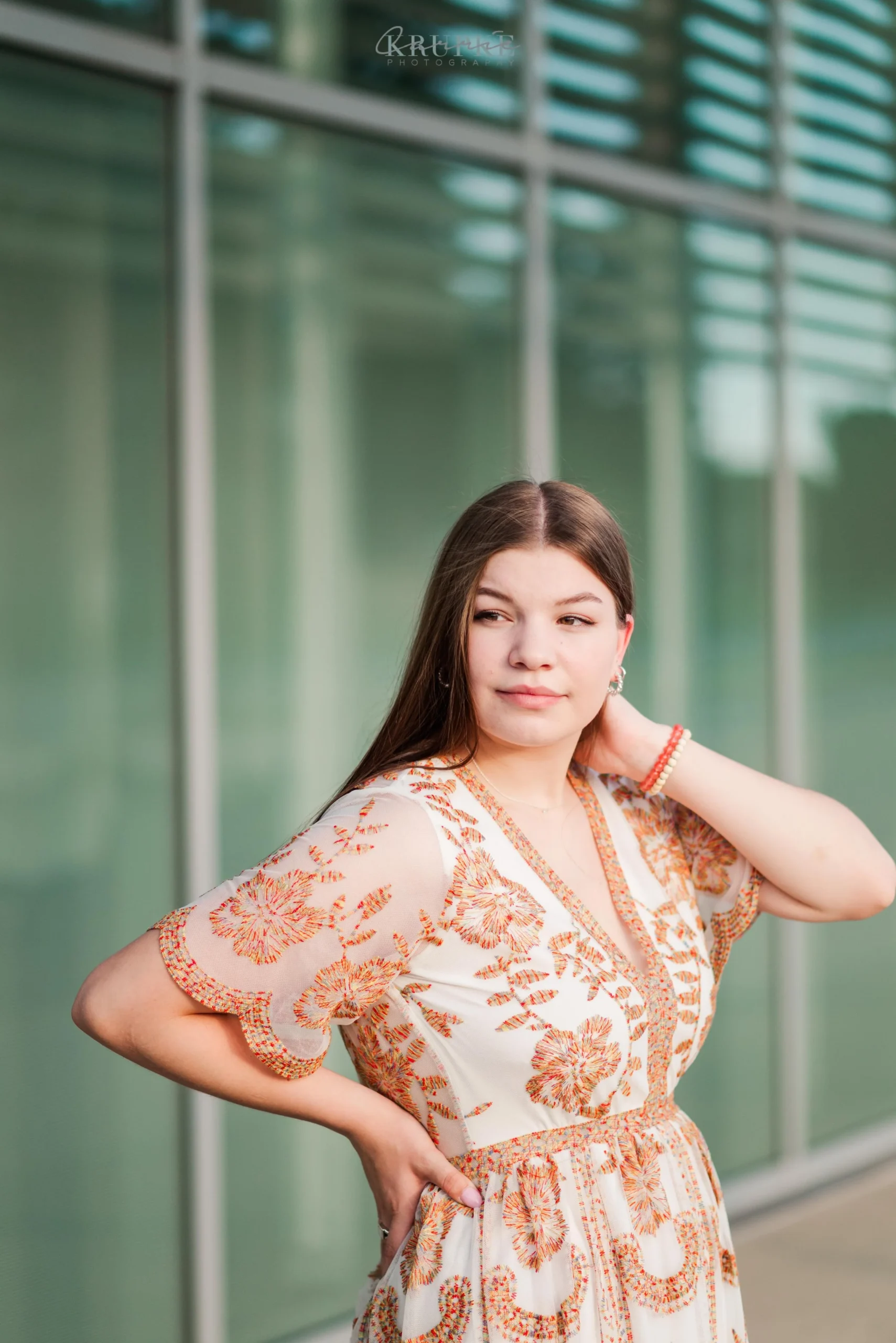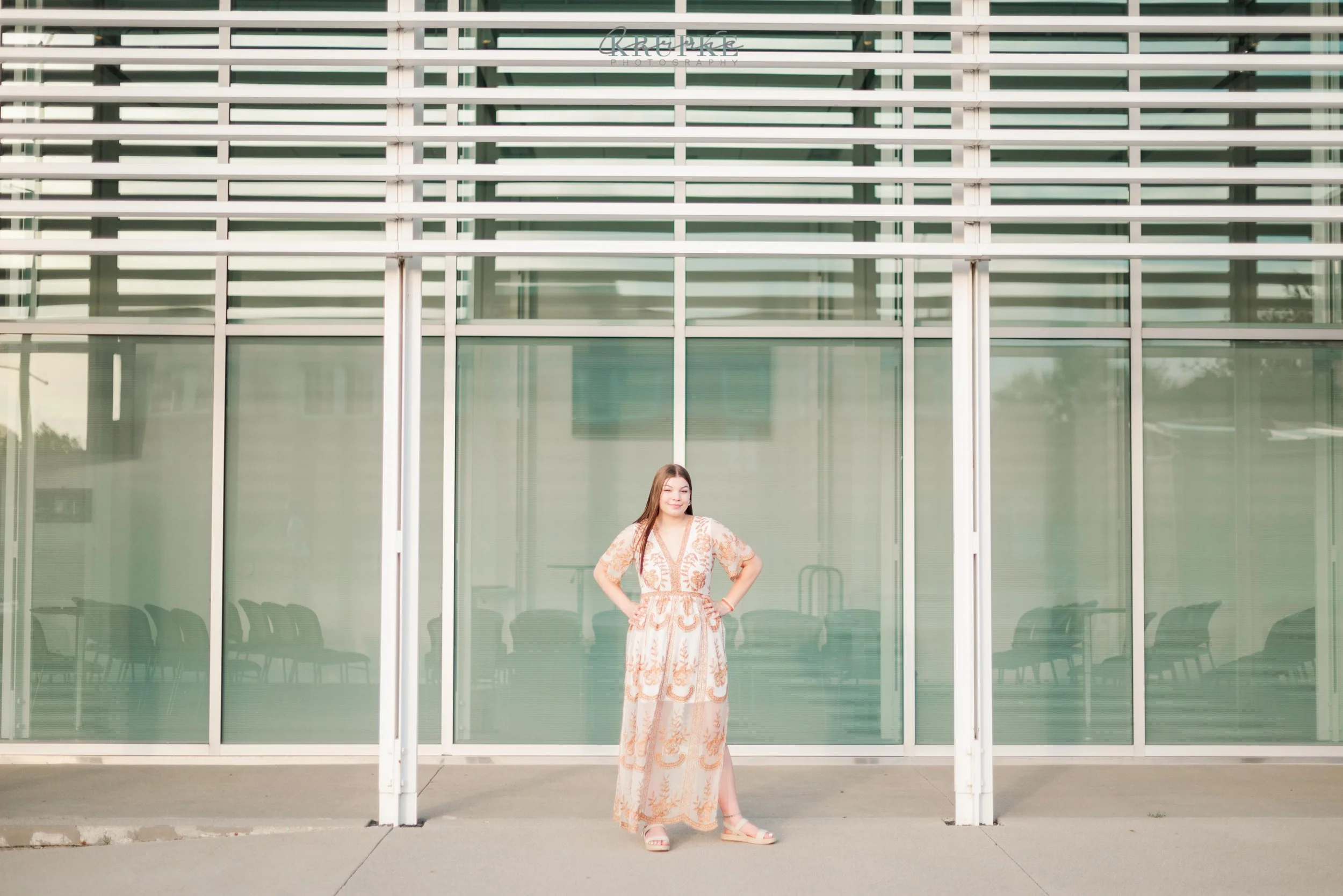 After a quick jaunt to the Des Moines Playhouse where we used its exterior, we headed to Valley Junction and chased down different pockets of light and backgrounds that worked with whichever outfit(s) she had: