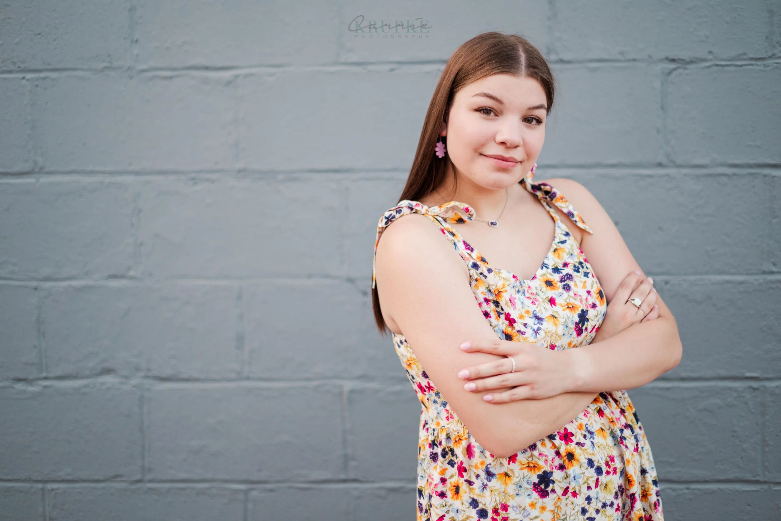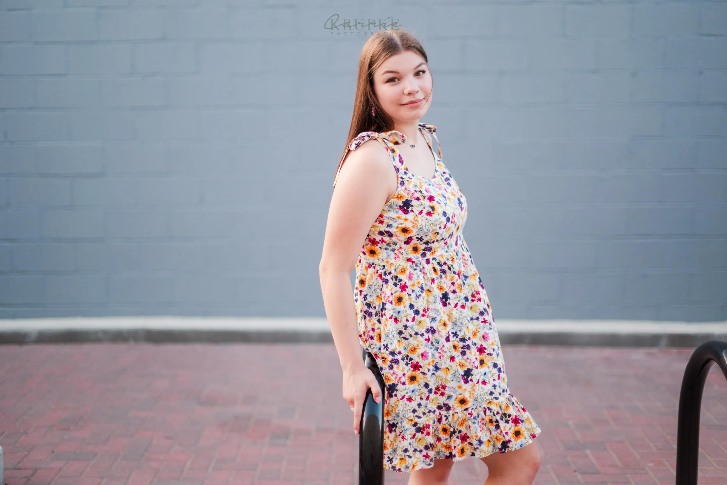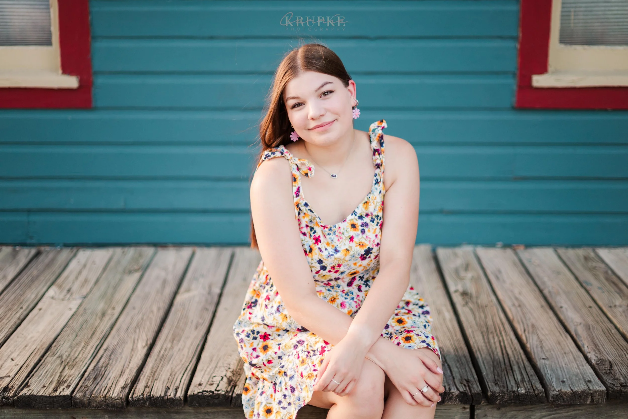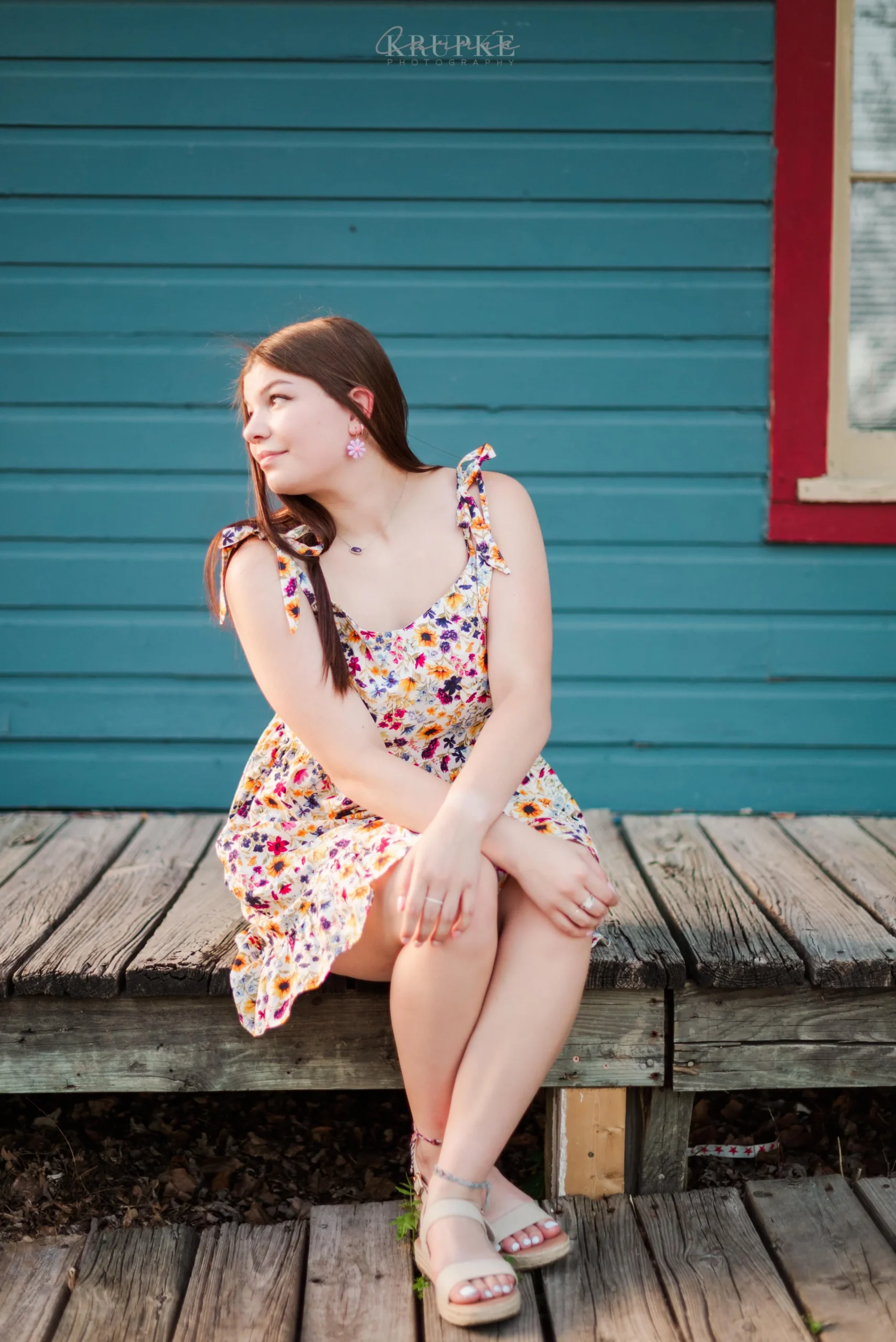 After a quick jaunt to the Des Moines Playhouse where we used its exterior, we headed to Valley Junction and chased down different pockets of light and backgrounds that worked with whichever outfit(s) she had: