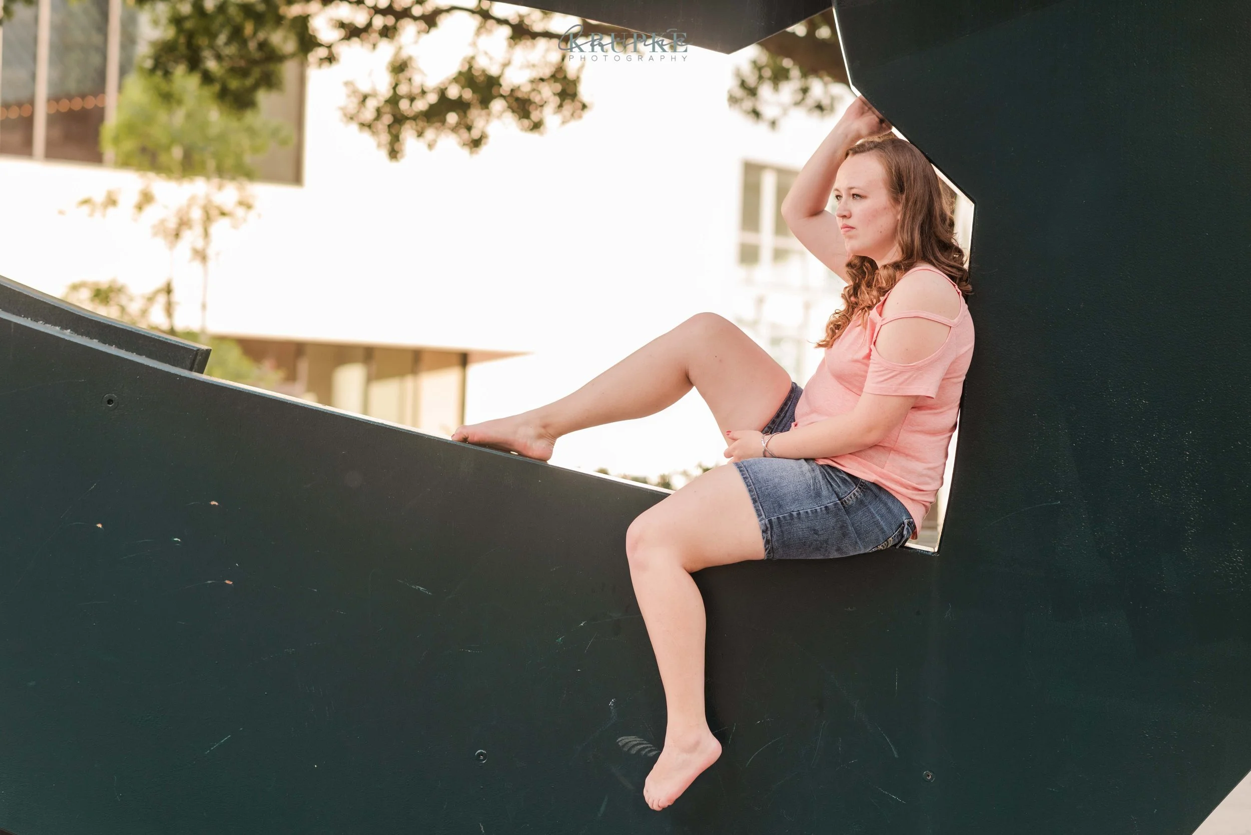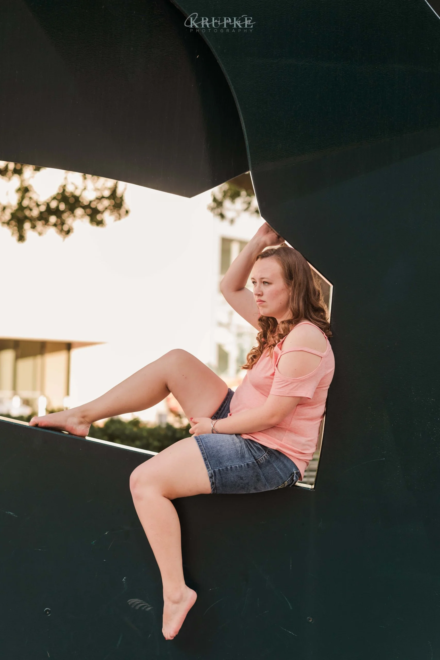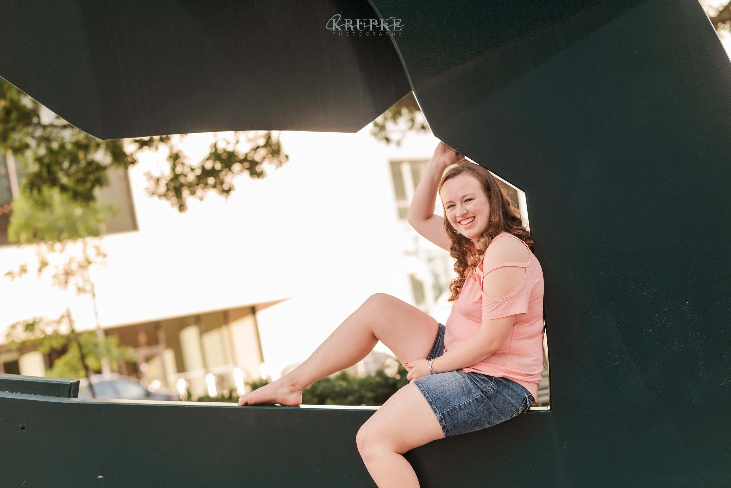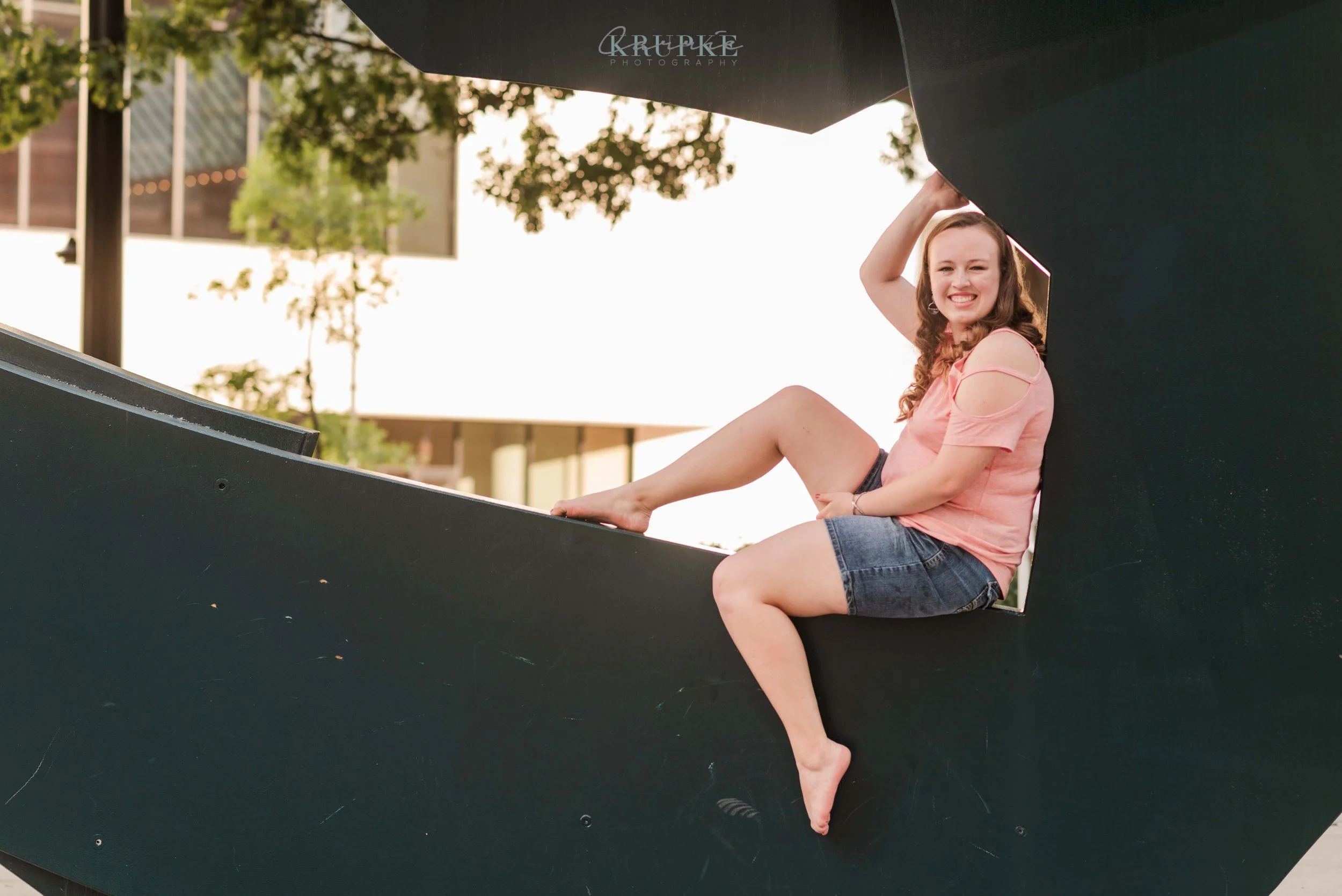 When her mom first contacted me to photograph “Sophia”, I was pretty sure I knew who I was communicating with, but I knew her as “Sophie”. In email communications, I referred to her as “Sophia” to reflect Krystal’s choice, but in my mind, I was still thinking “Sophie”, the bubbly 6th grade flute player with a grin from ear to ear. Sure enough, my mind was not playing tricks! Sophie has maintained her participation in the music department throughout her high school career, band & choir, show choir & marching band, loving the far away competitions and the Spring Break choir trip to Disney World. We are saving the musical side of her session for the fall when the auditorium is available, but for now, here are her some of her favorites from our time together in East Village, Cowles Commons and near the Papajohn Sculpture Park: