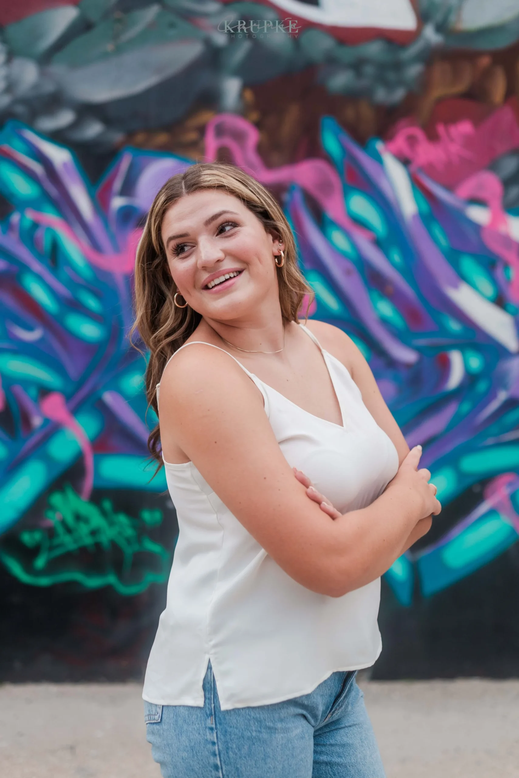 We started downtown and because Marea and Michelle had worked through my Senior Session Planning Template, we were able to blitz, which then gave us more time at the end of the session for some extras! We used 6 locations in the downtown area and 4 outfits, with sunlight to spare-all because of preplanning!
