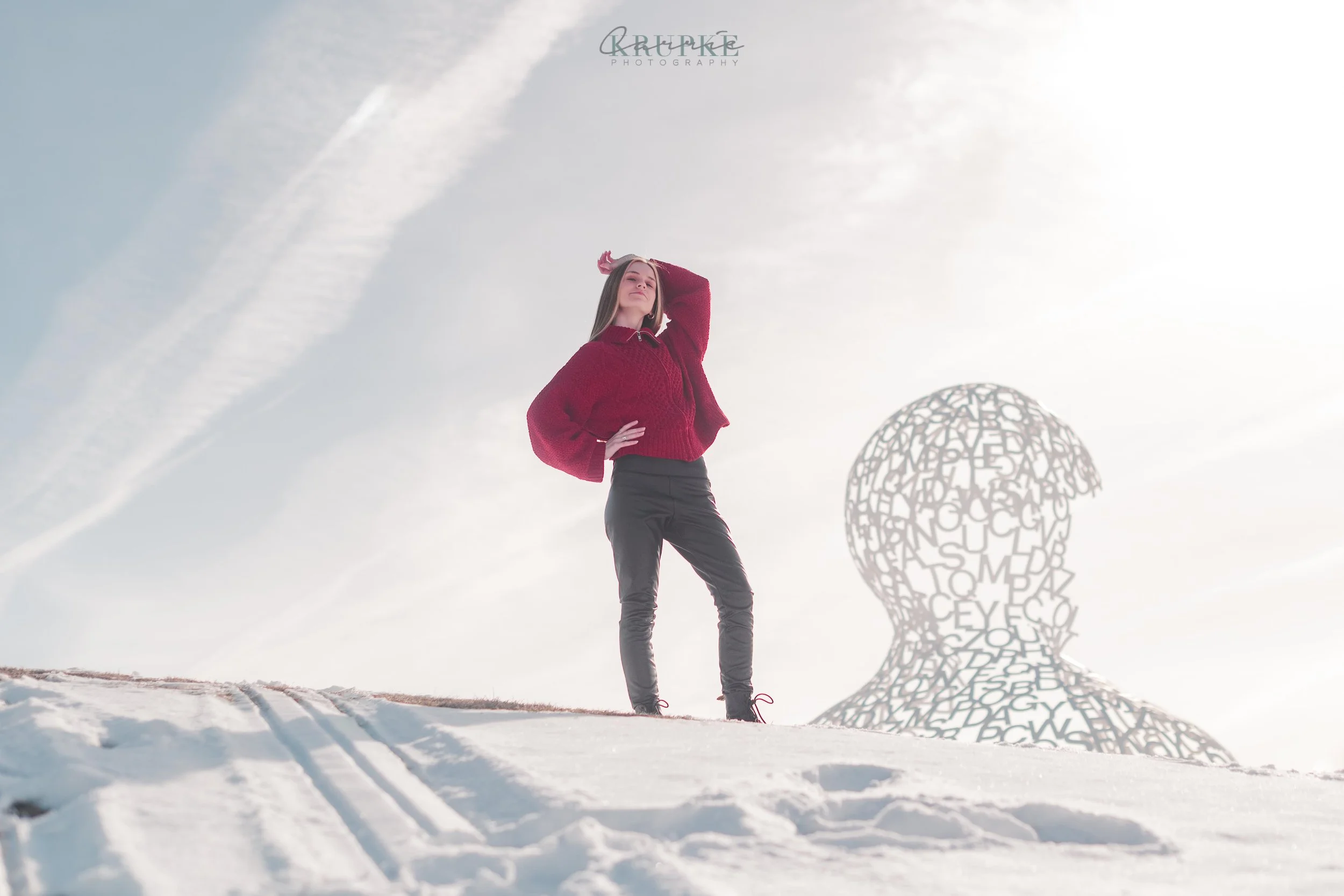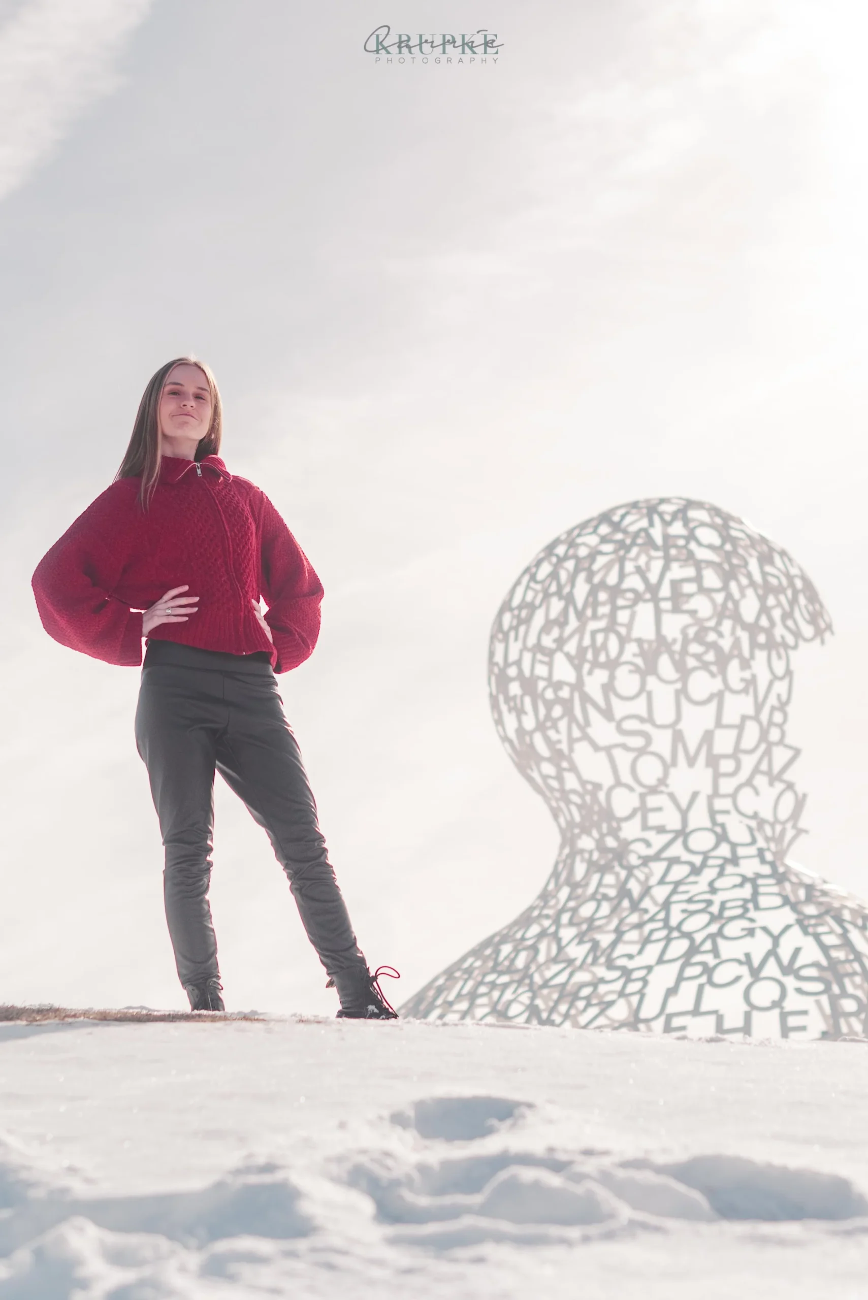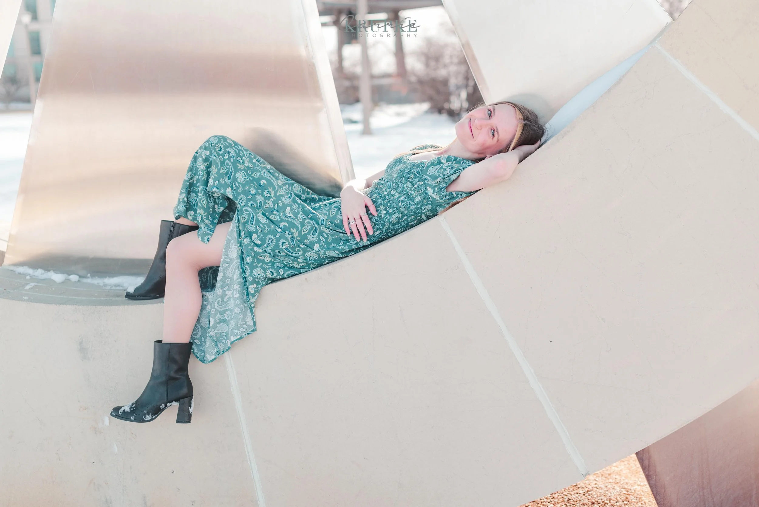 We used what I call “The Starburst” sculpture downtown to portray the “ray of sunshine” that is Claire to start our session off right and then headed deeper into downtown to the PapaJohn Sculpture Park for what I call the Letter Man. 🙂