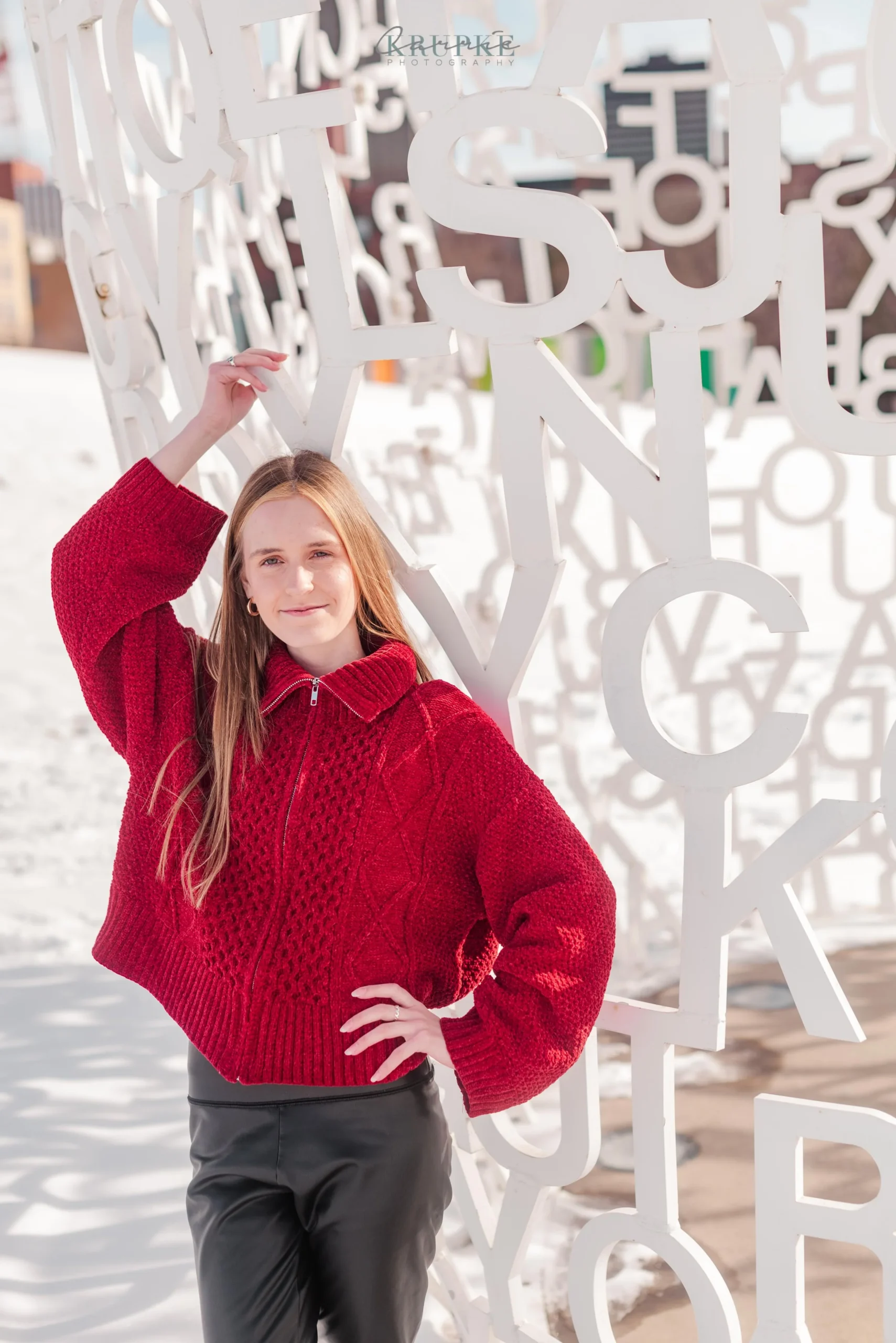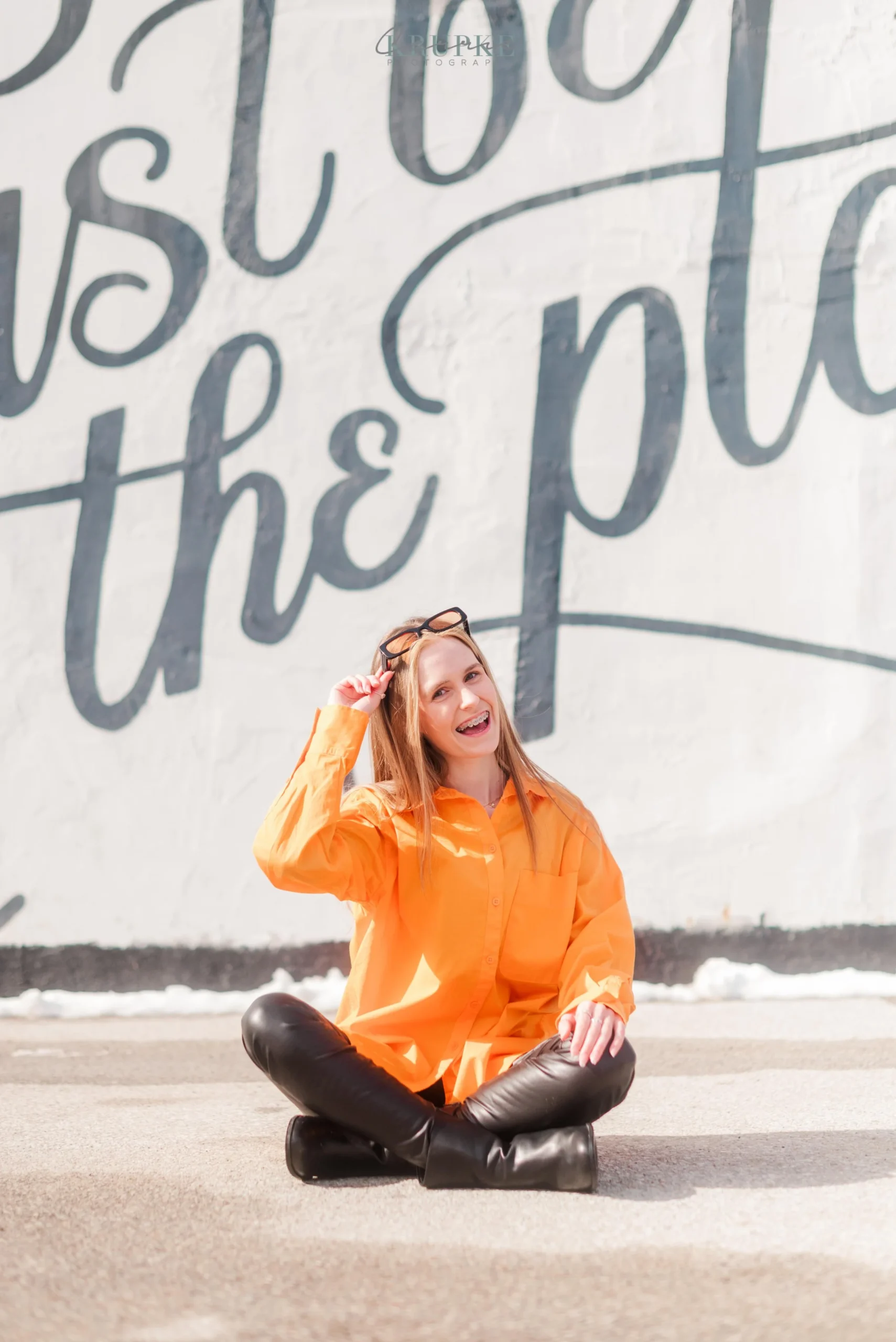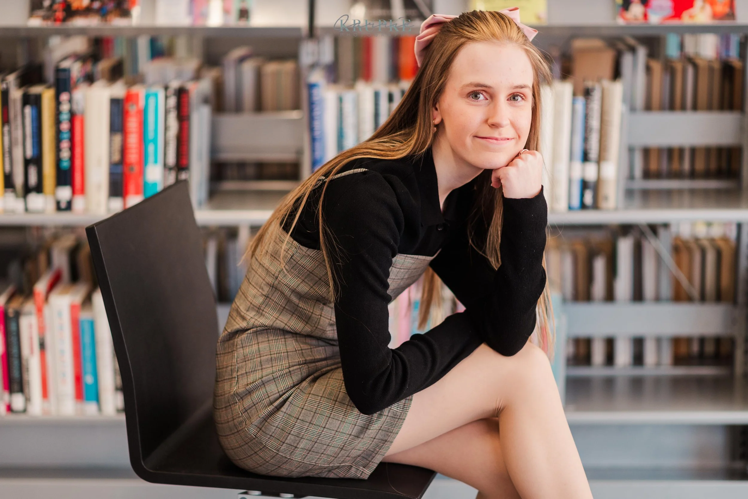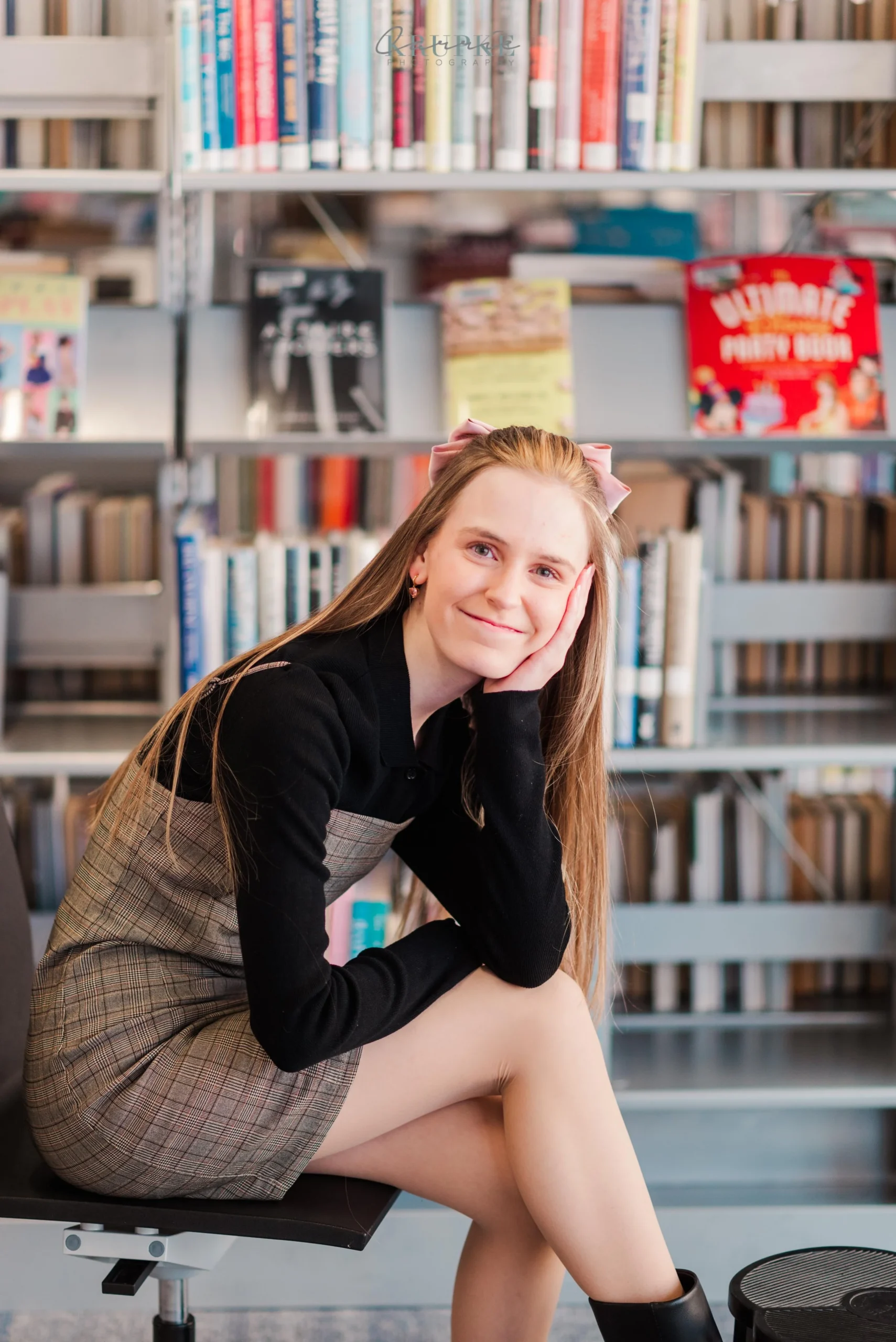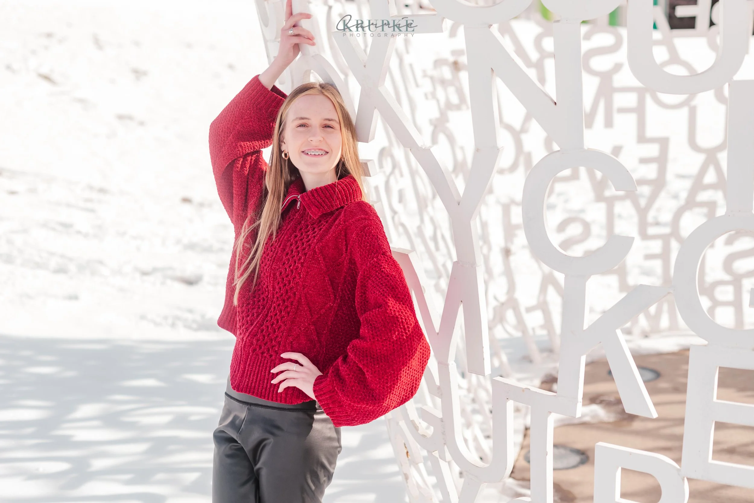 “My ray of sunshine”. That’s how Claire’s mom, Cheryl, describes her and we also wanted to incorporate her love of writing and reading. Claire is headed to University of Iowa with an English major bent at the moment. And while we were hoping her braces would be off by the the time our session rolled around, we had to make magic happen in February and pray for good weather so we could get Claire’s photo into the yearbook in time!