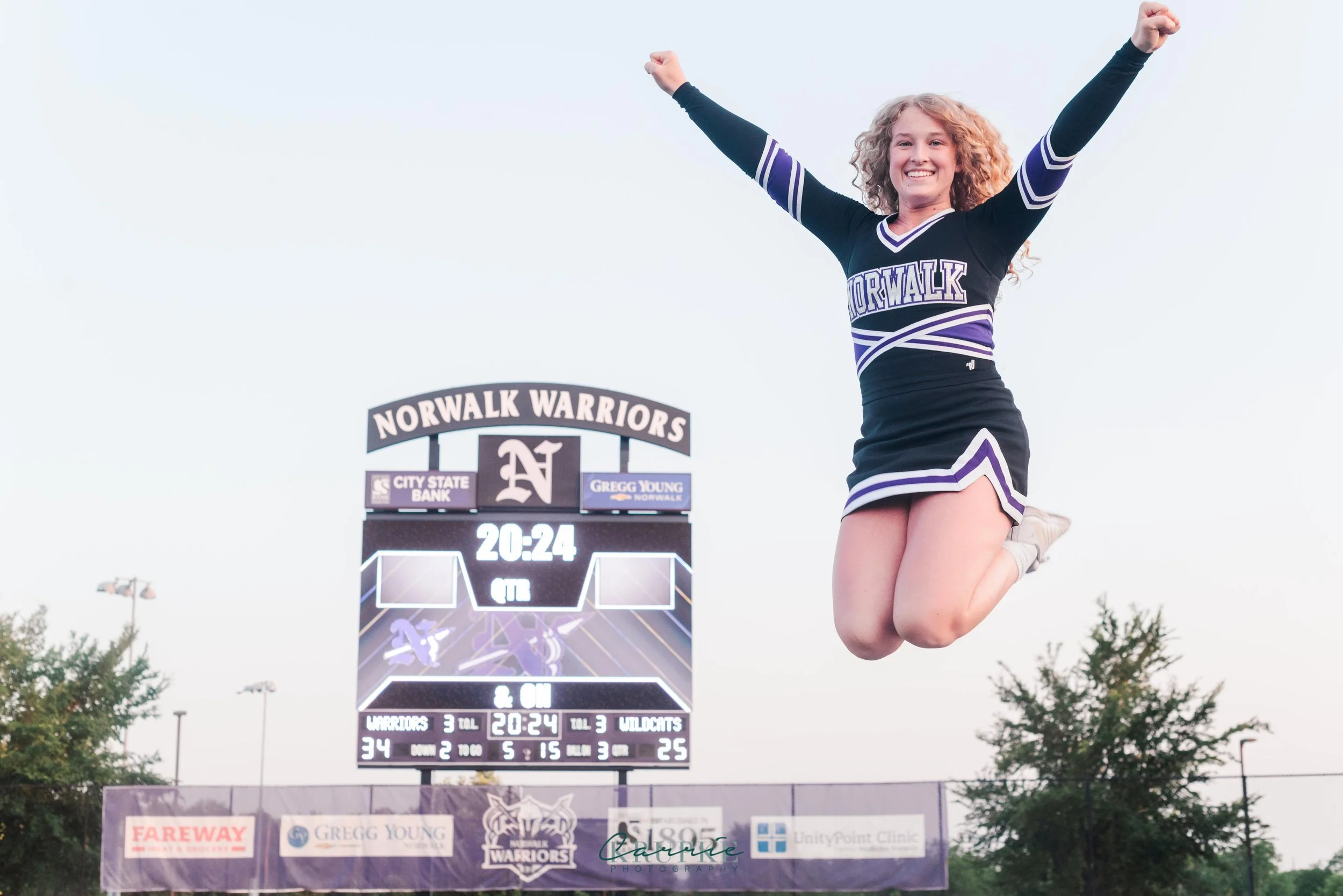 We headed back into “home base” to document Natalie’s cheerleading career as a football cheerleader. While we got started, Tim worked to figure out the new scoreboard for a request I had….see if you can find it!