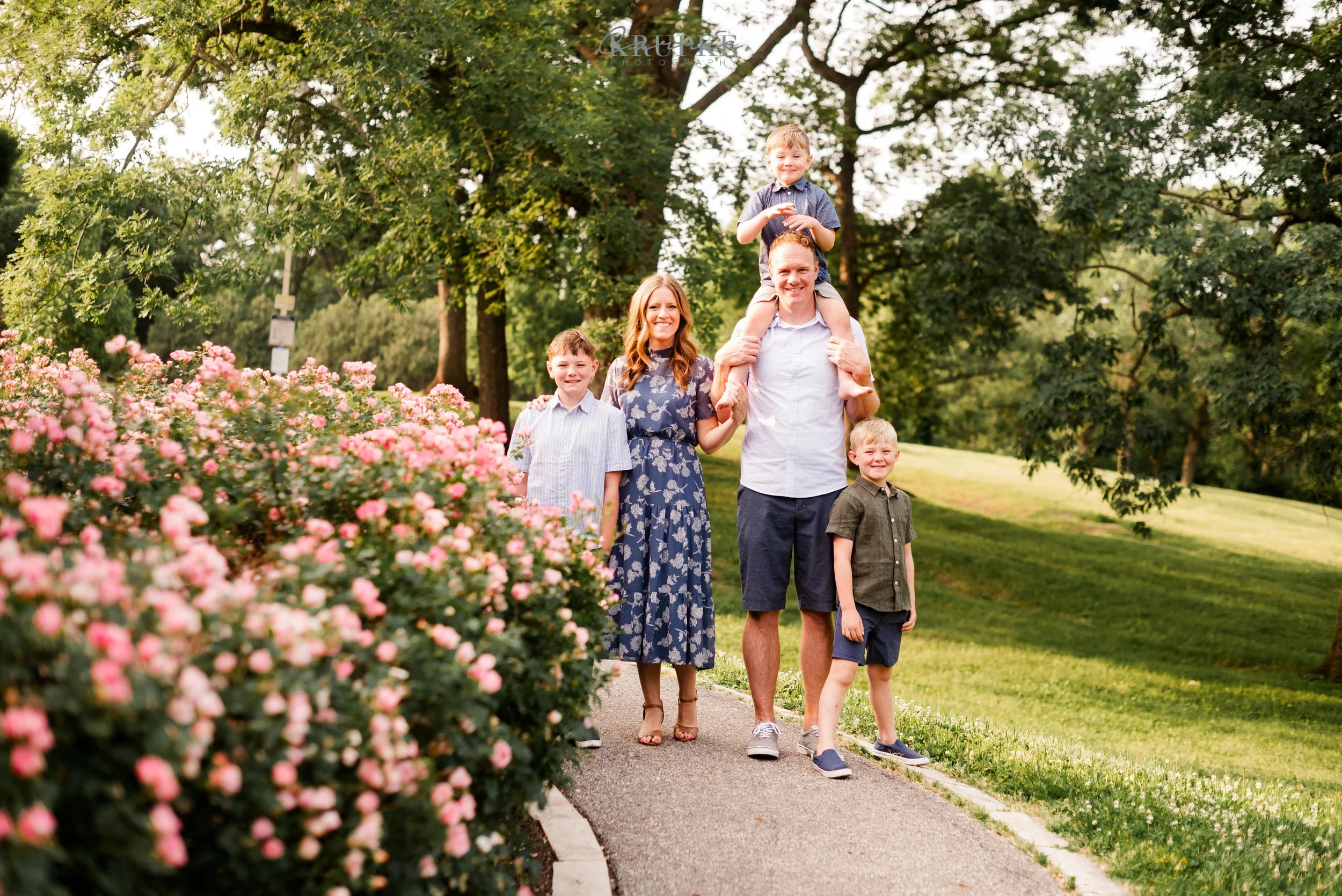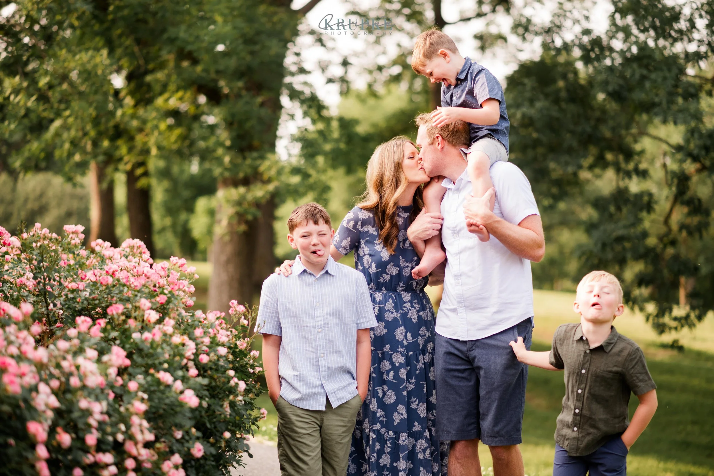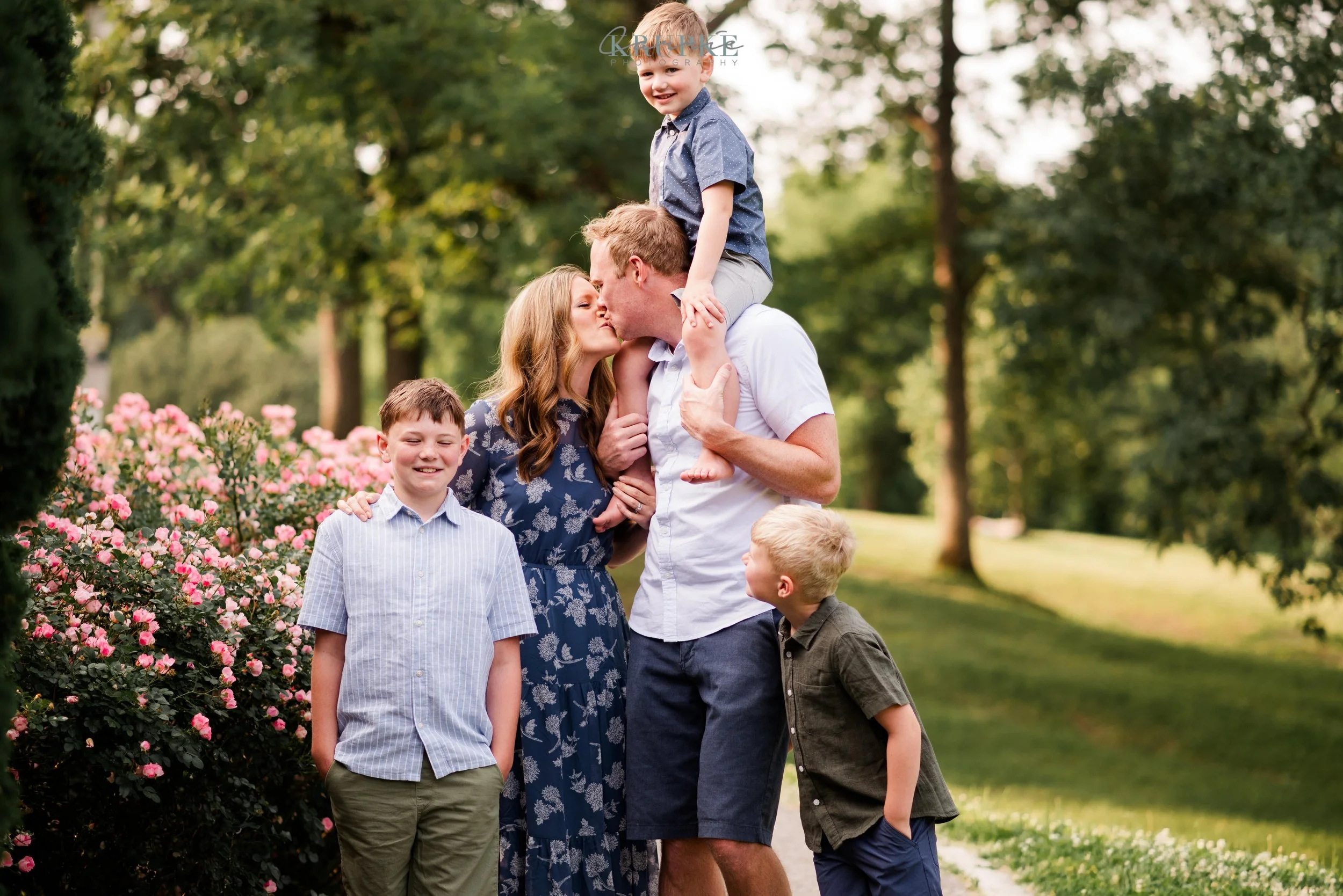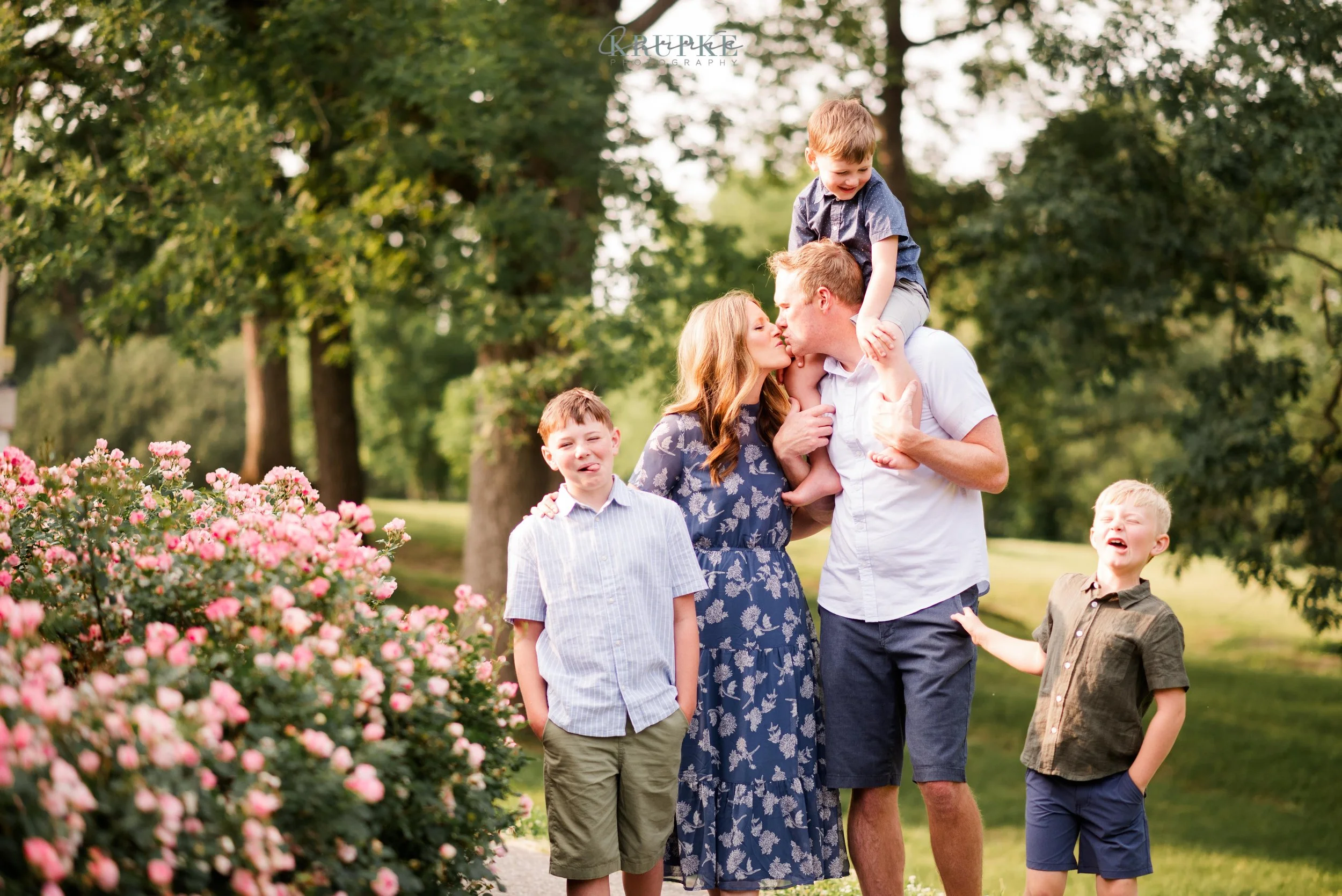 Graham, Blaine and Vaughn wear HUGE smiles and because we’ve had our kids play together, they will follow me up a steep, muddy hill too. 🙂 Their goofiness is such a bright spot in my day and makes for hilarity throughout our session together. When I told Amanda that the roses were in bright bloom, we went for it and forgot all about Greenwood Park!