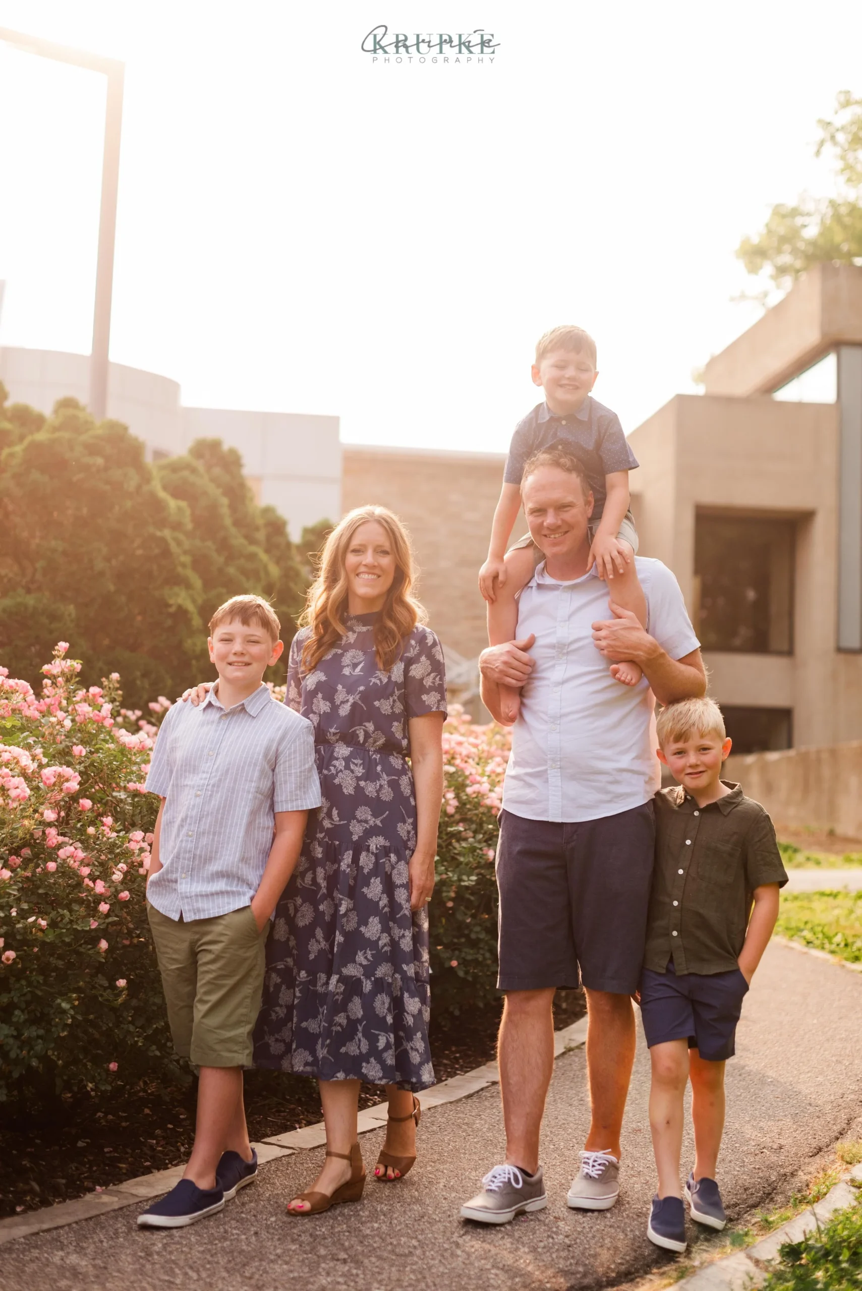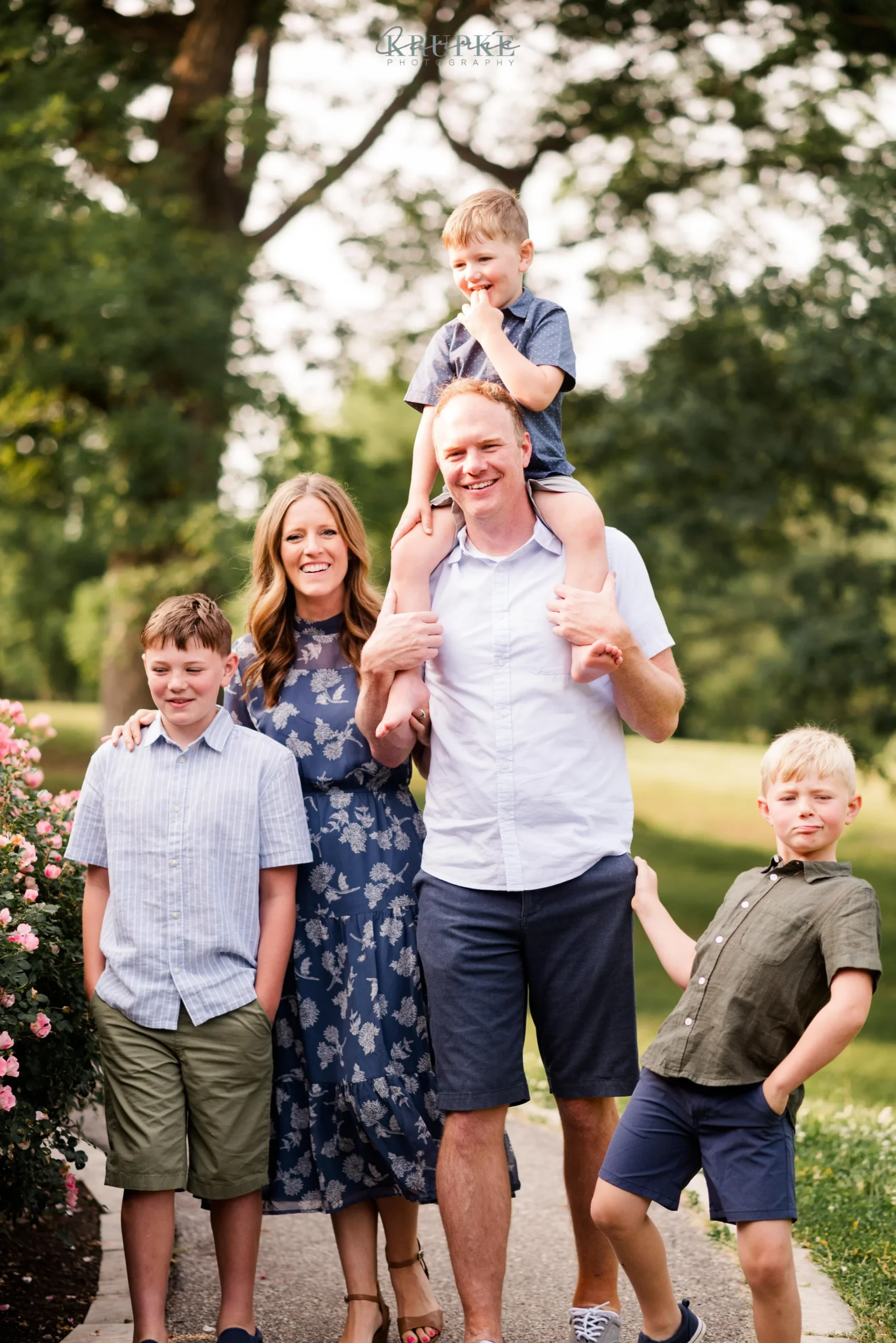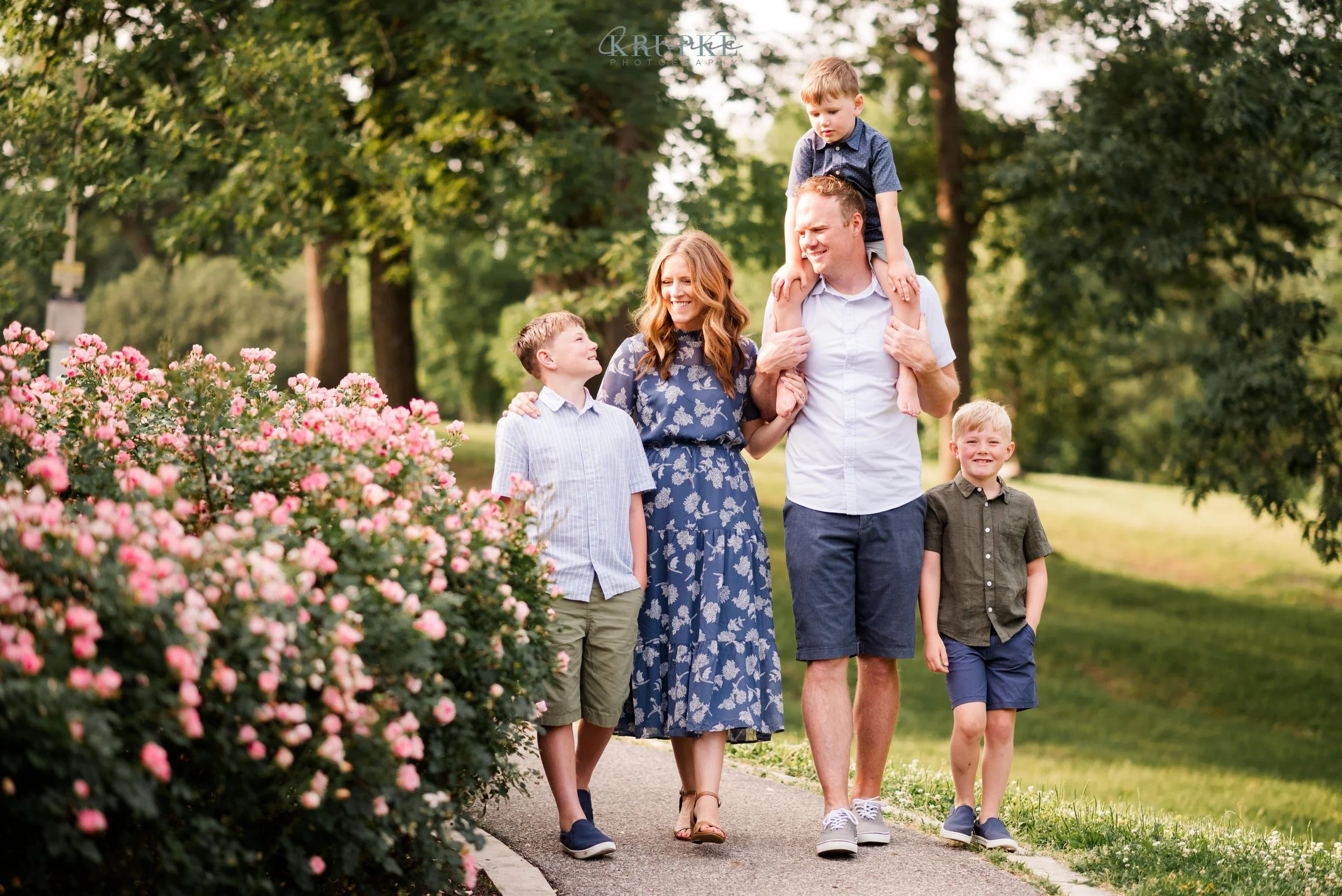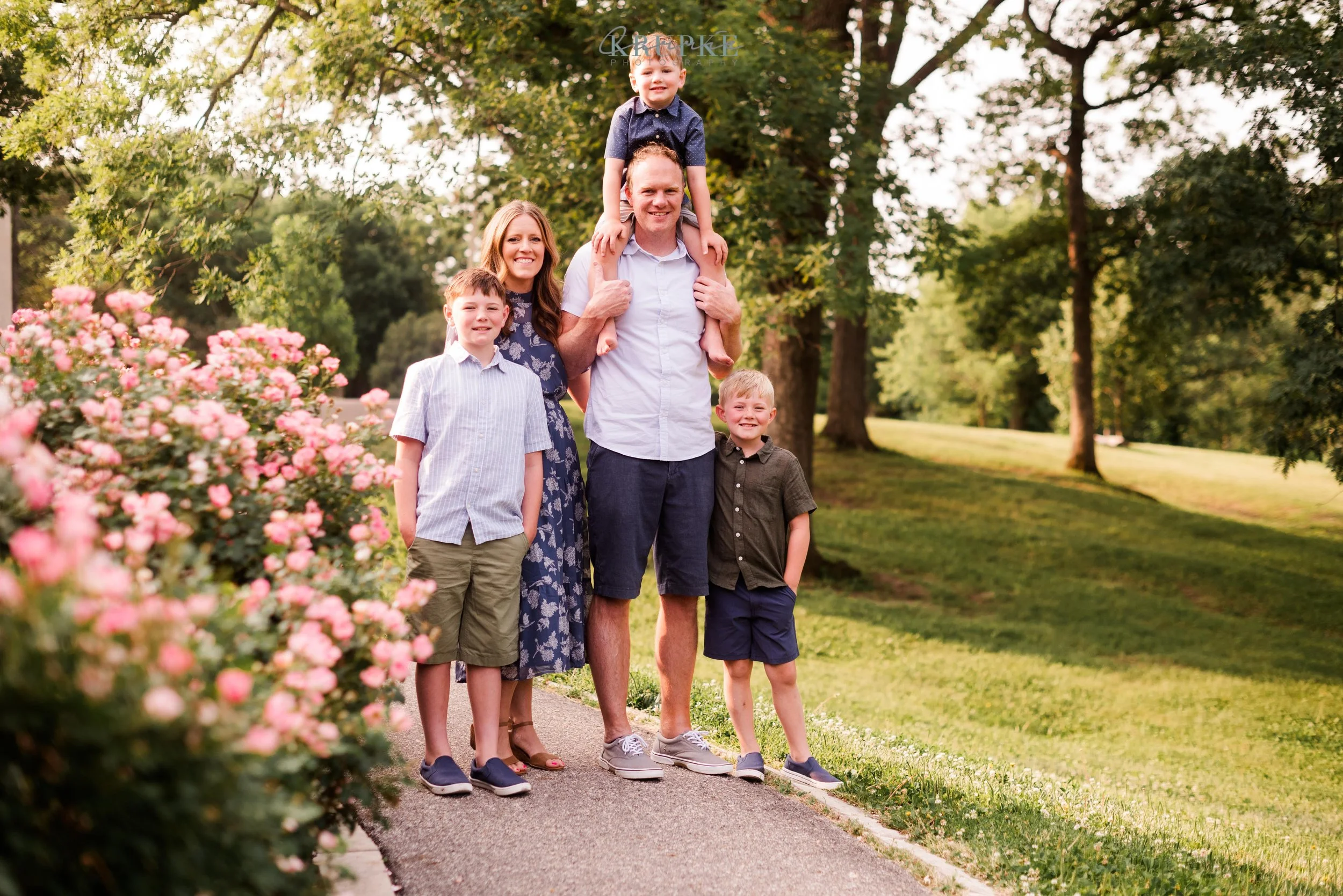 Graham, Blaine and Vaughn wear HUGE smiles and because we’ve had our kids play together, they will follow me up a steep, muddy hill too. 🙂 Their goofiness is such a bright spot in my day and makes for hilarity throughout our session together. When I told Amanda that the roses were in bright bloom, we went for it and forgot all about Greenwood Park!