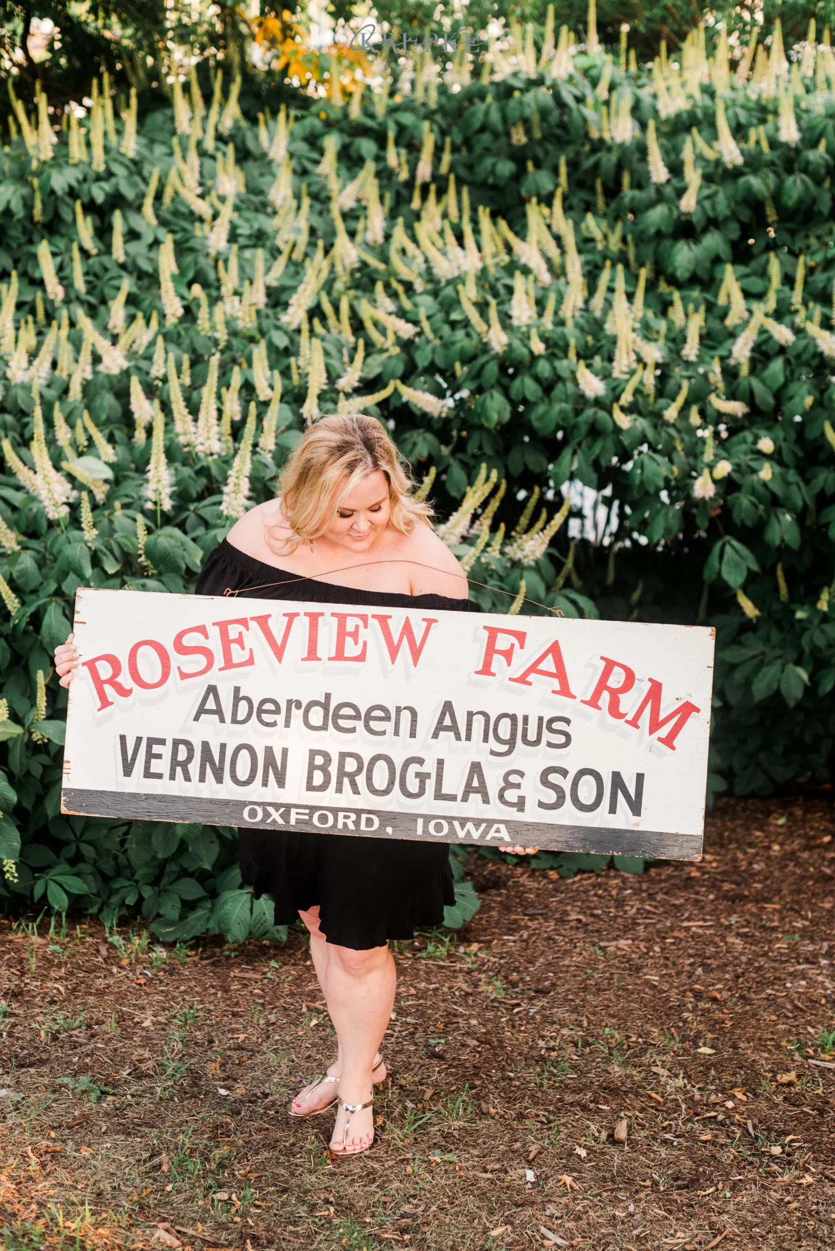 Let me explain. Lucy’s grandparents worked a cattle farm in Iowa and the cousins would gather there regularly, so when Grandpa Brogla passed away, Lucy vied for the famous farm sign that mentions not only her beloved grandpa, but the “son” is her dad! When you’re creating a branding session, my approach is to share about who you are as a person so that your social media followers learn about the person behind the business, thereby creating a Trusted Advisor. Customers are so much more likely to purchase from a business they know and trust (and therefore want to support), so we included this beloved sign as an homage to Lucy’s heritage and family.