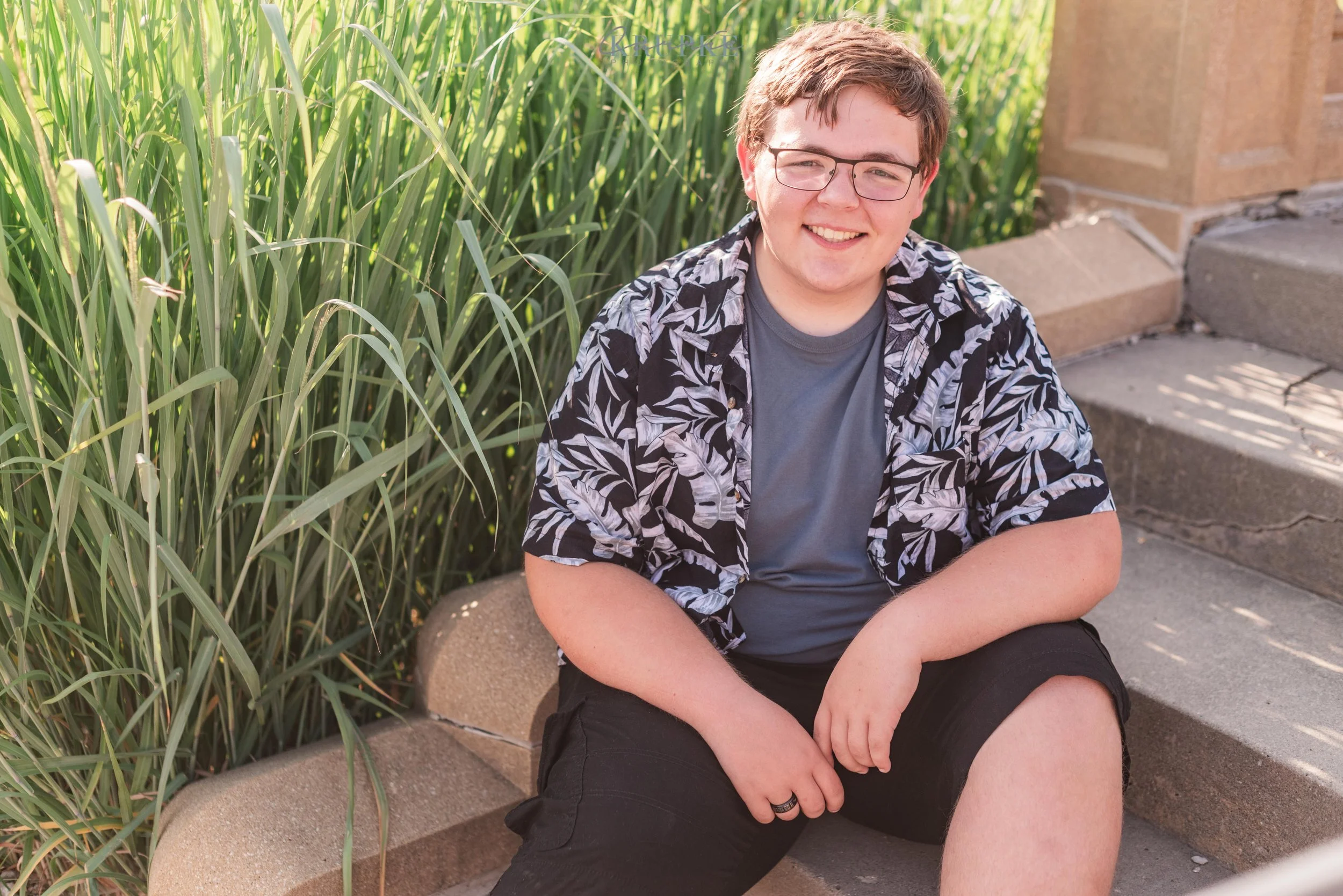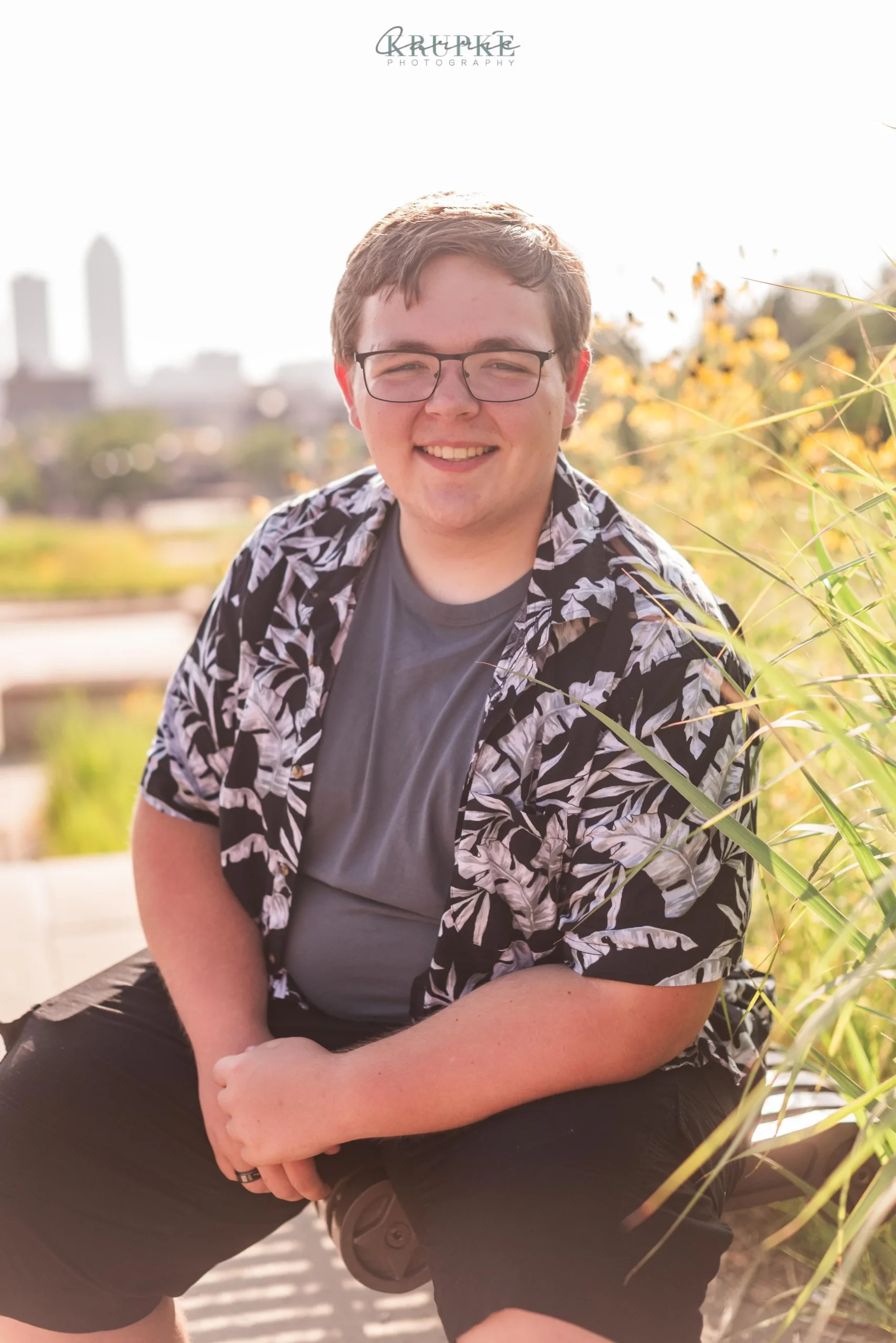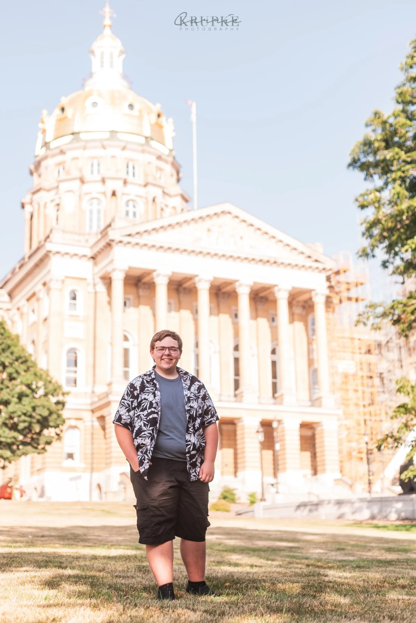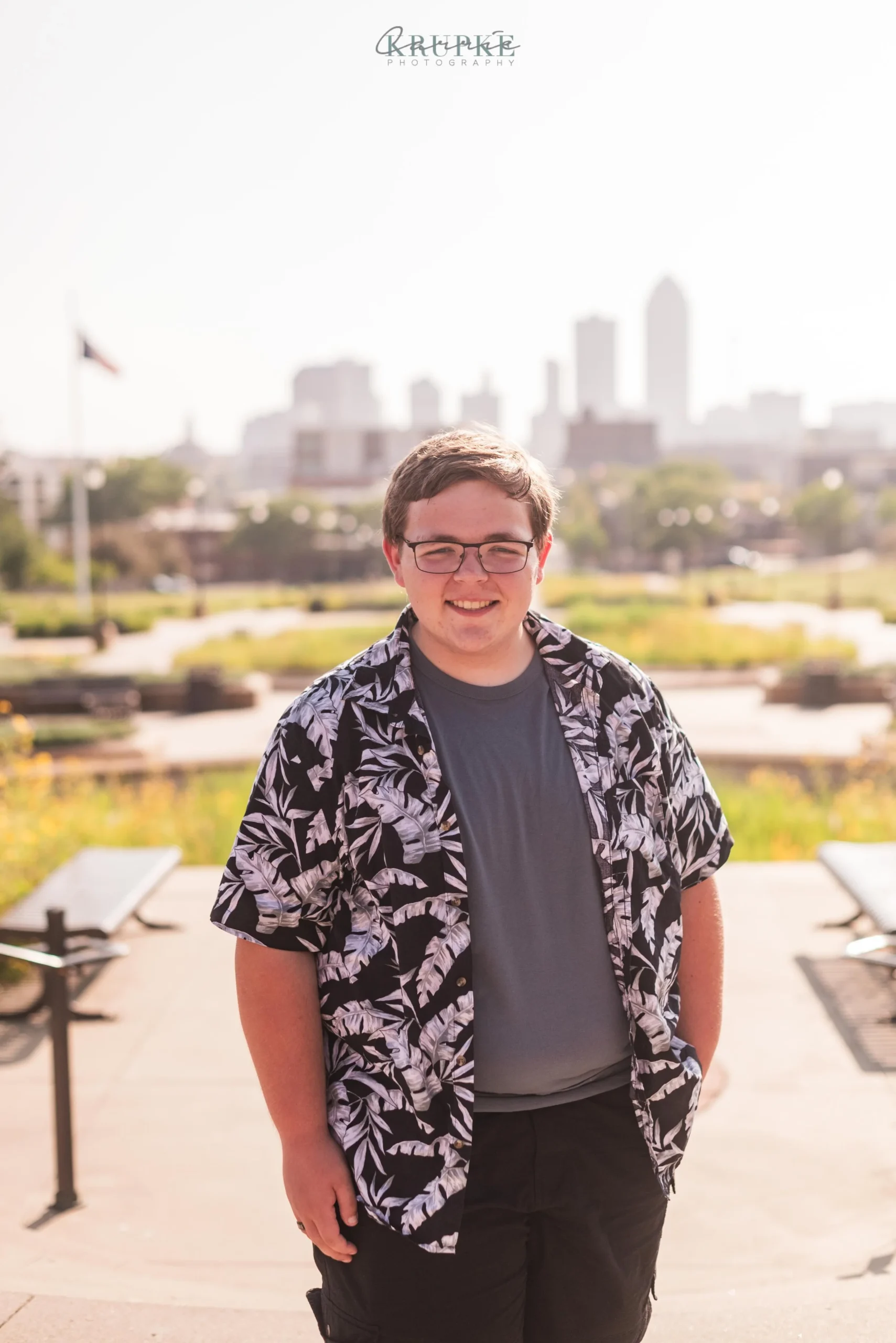 What a world traveler we have here! Braydyn had just gotten back from his Iowa Ambassadors of Music trip to Europe with amazing musicians from his high school and was juuuuuust over the jet lag and ready for his photos with me. Full of tons of stories with the quirks of European restrooms, food selection and navigating public transportation, Braydyn and I chatted through his session and tried to ignore just how hot and murky the air around us was. 😉