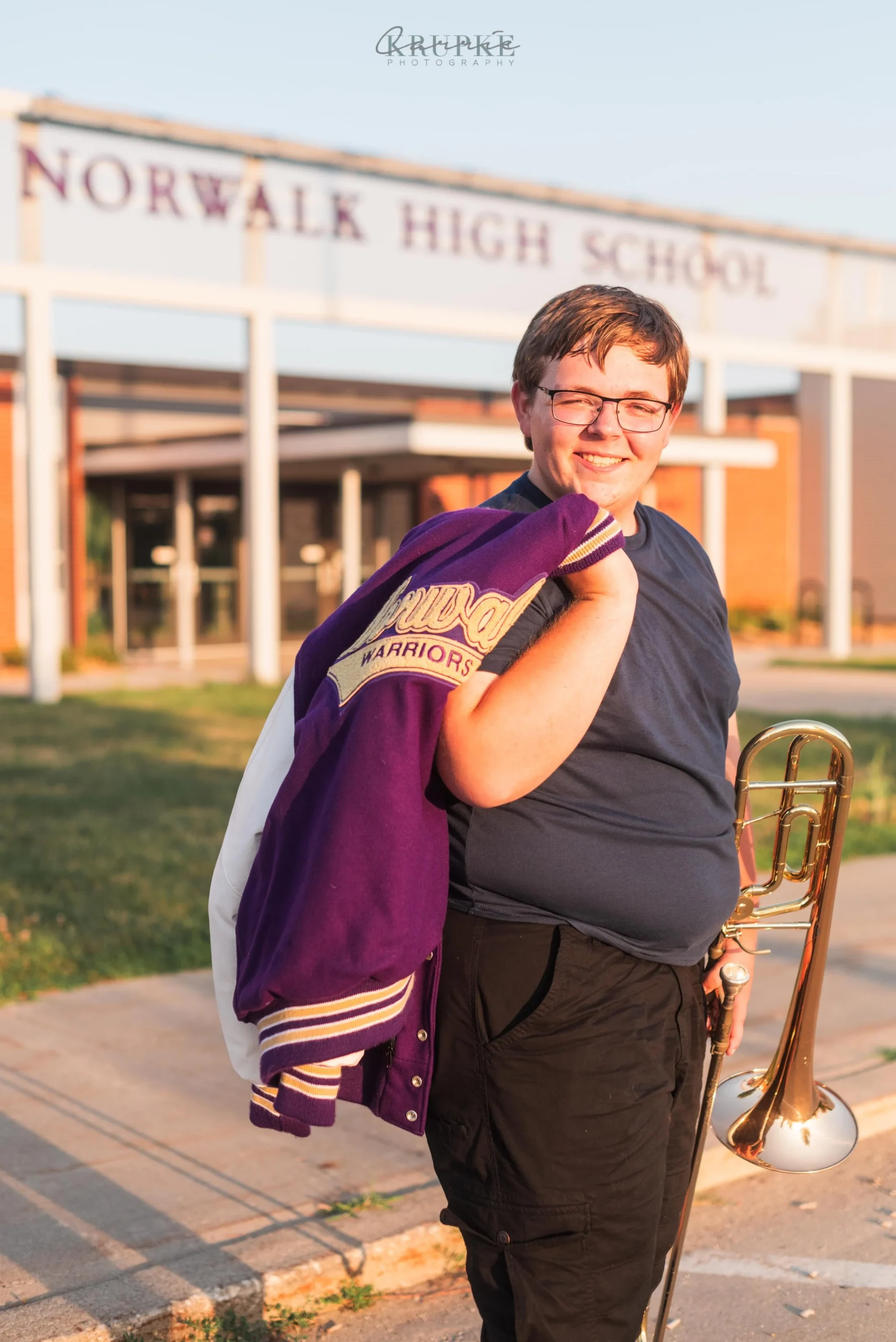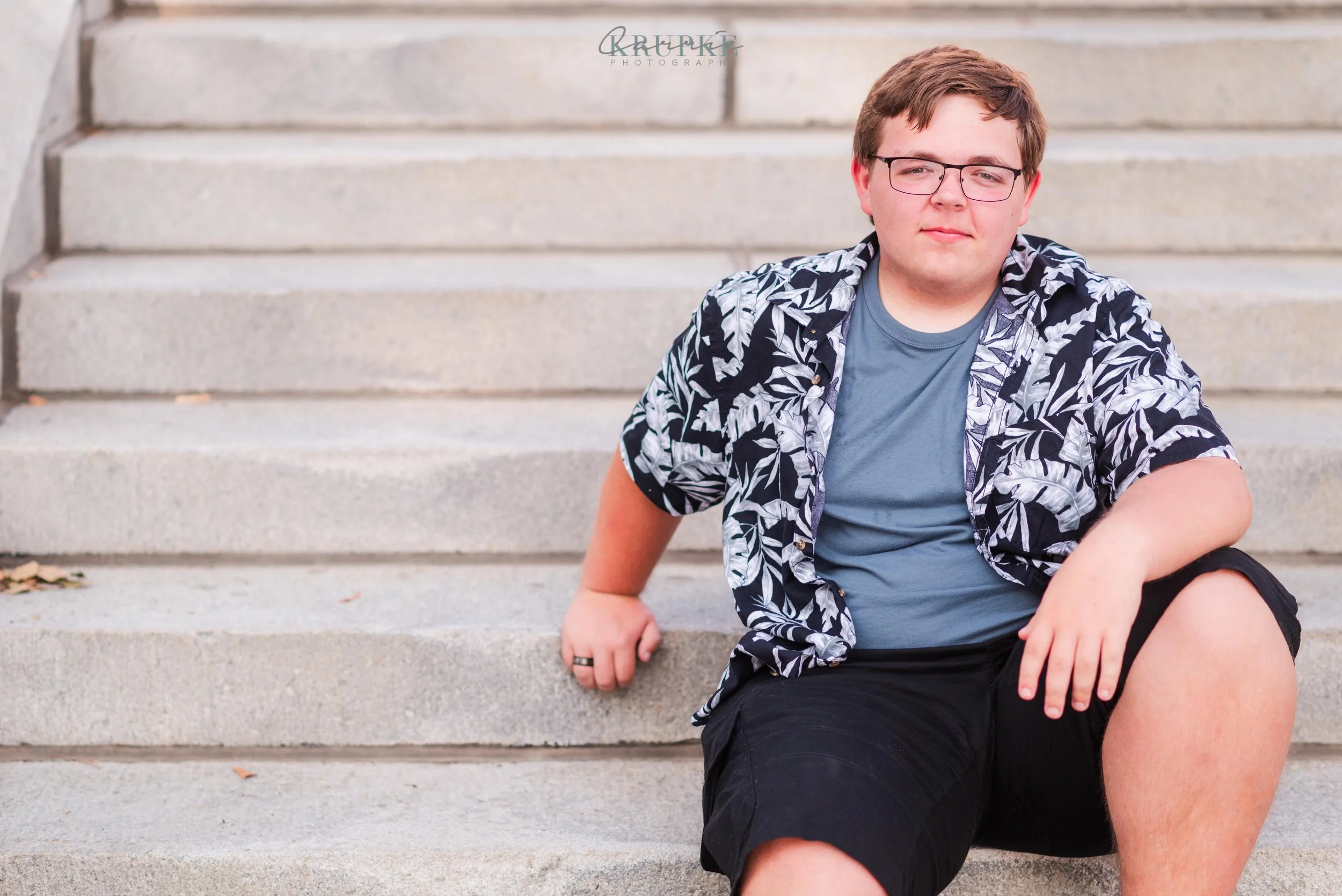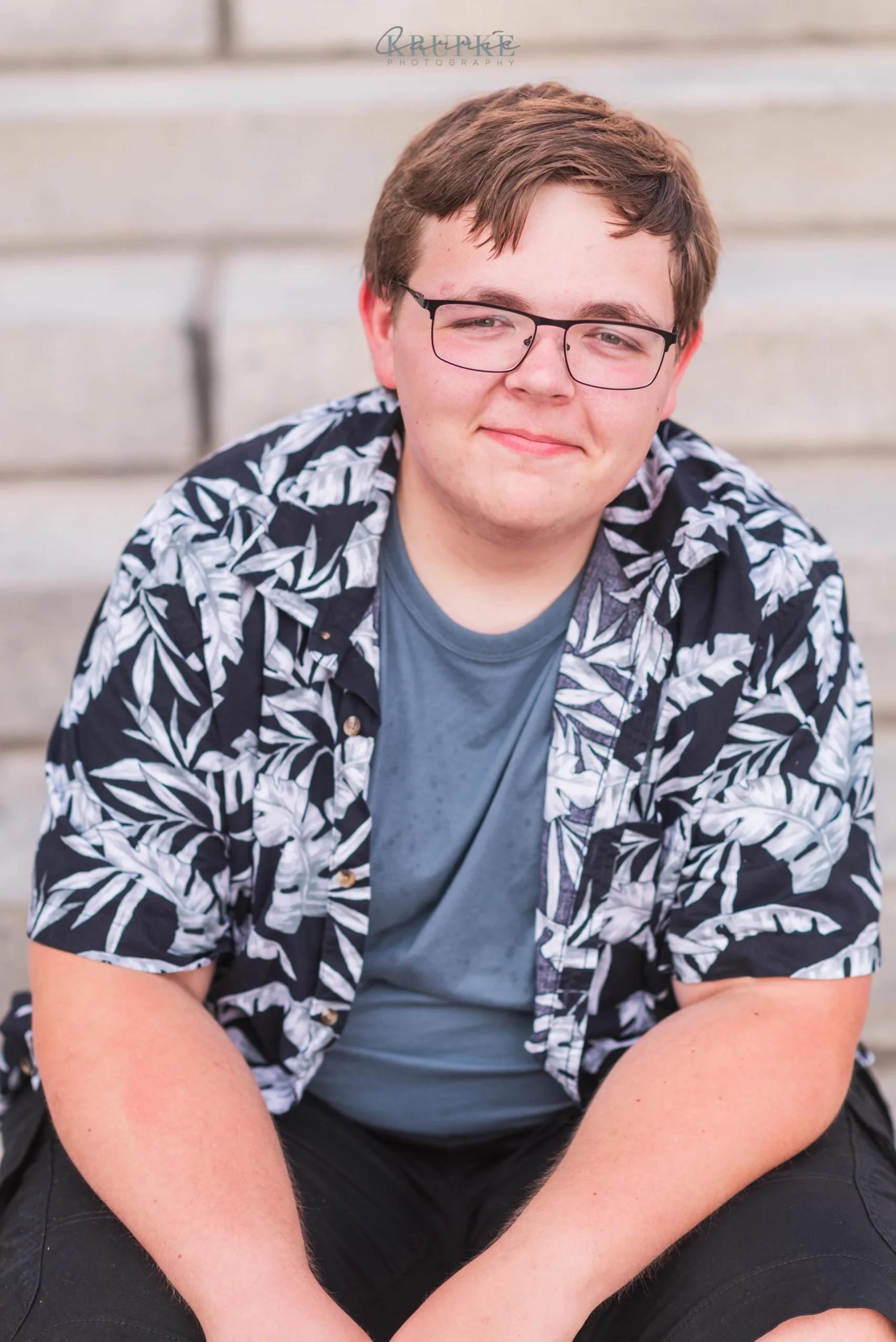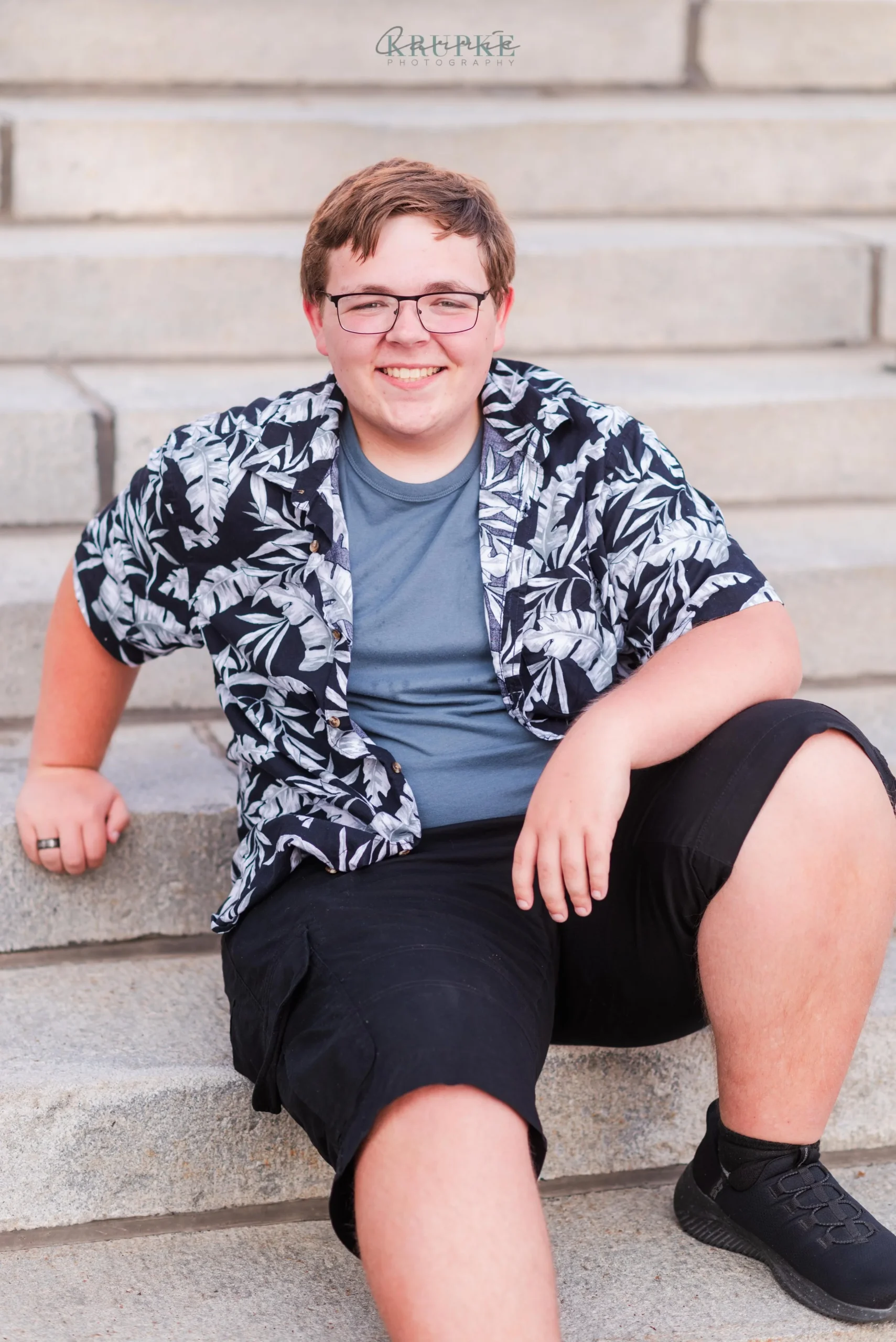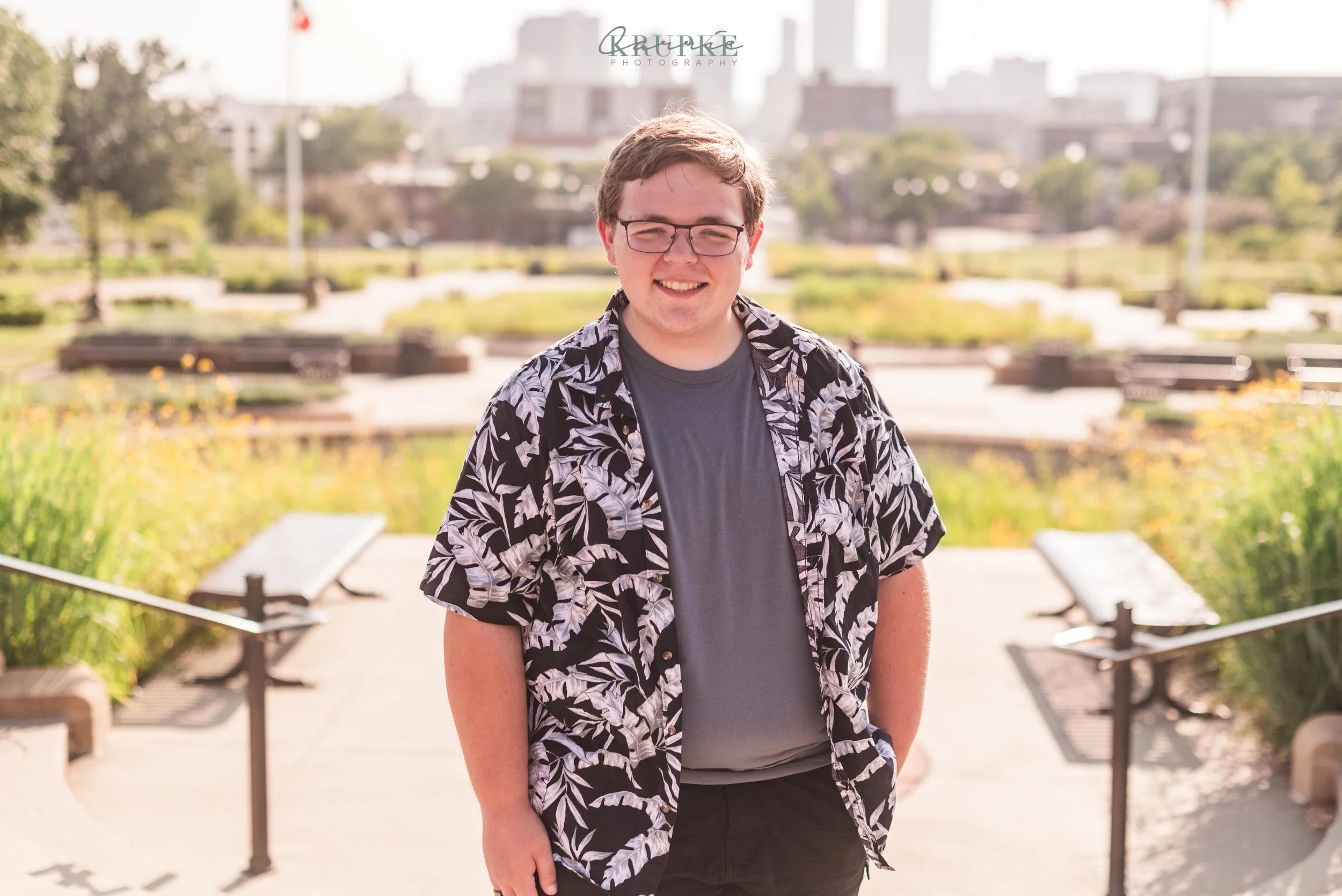 What a world traveler we have here! Braydyn had just gotten back from his Iowa Ambassadors of Music trip to Europe with amazing musicians from his high school and was juuuuuust over the jet lag and ready for his photos with me. Full of tons of stories with the quirks of European restrooms, food selection and navigating public transportation, Braydyn and I chatted through his session and tried to ignore just how hot and murky the air around us was. 😉