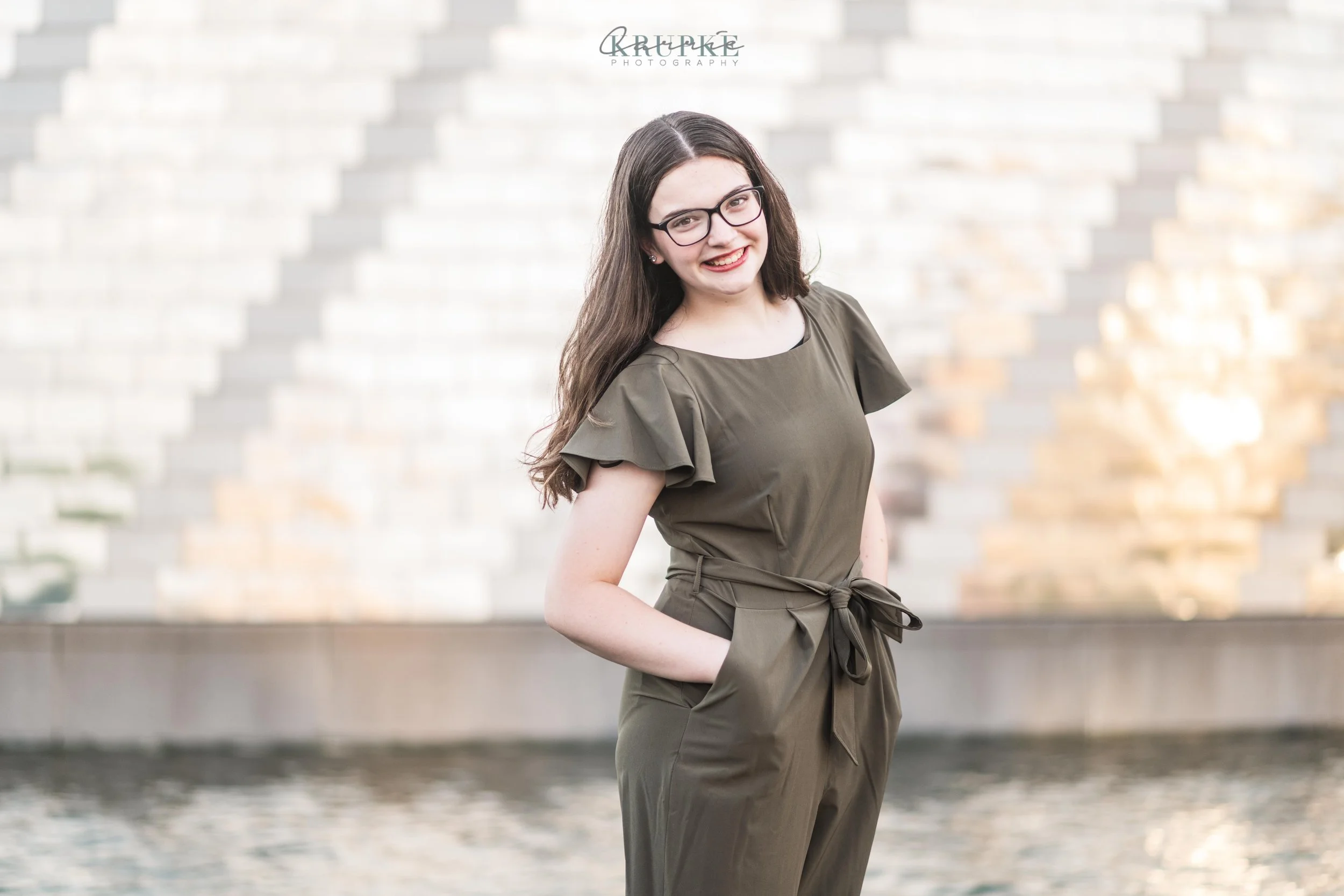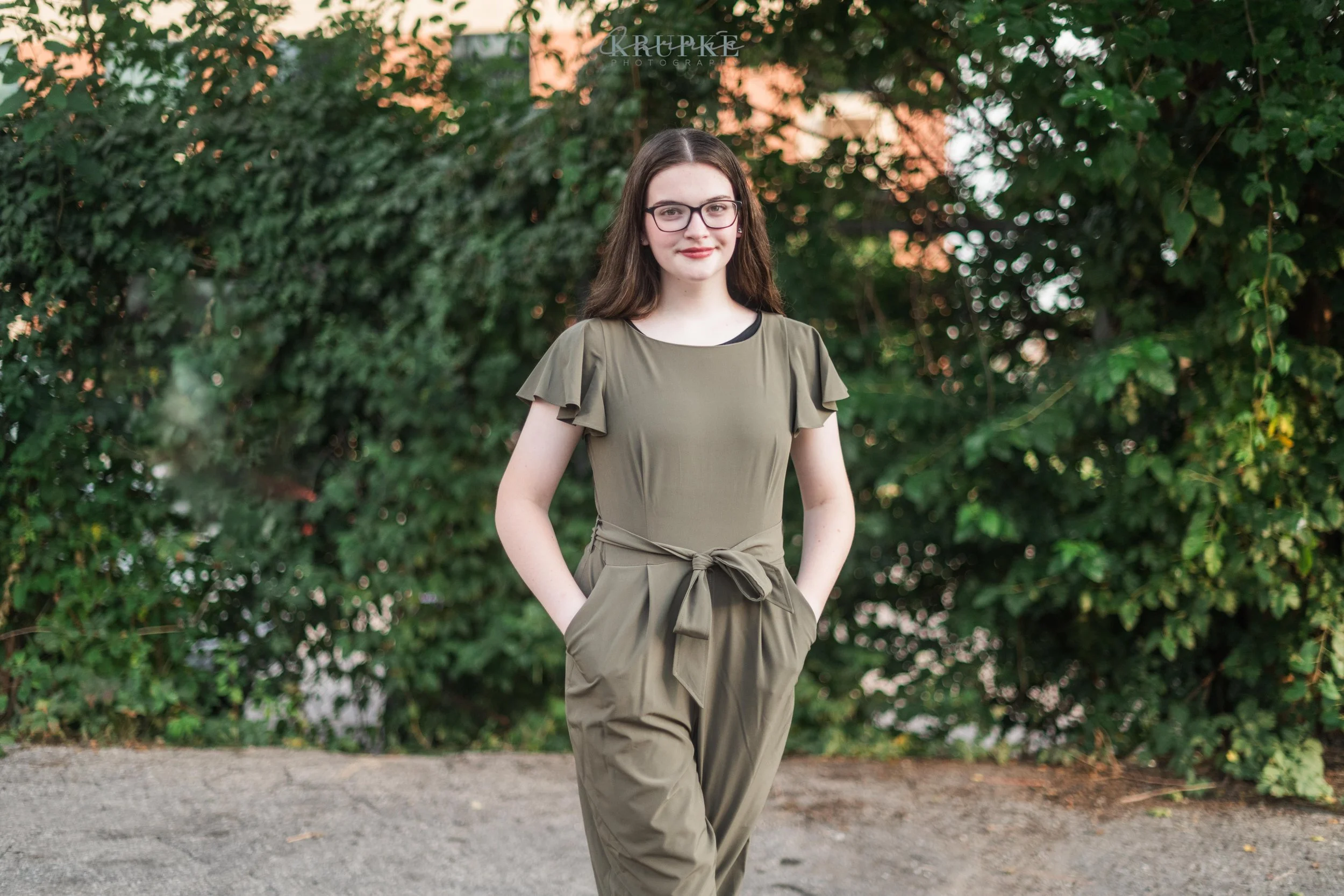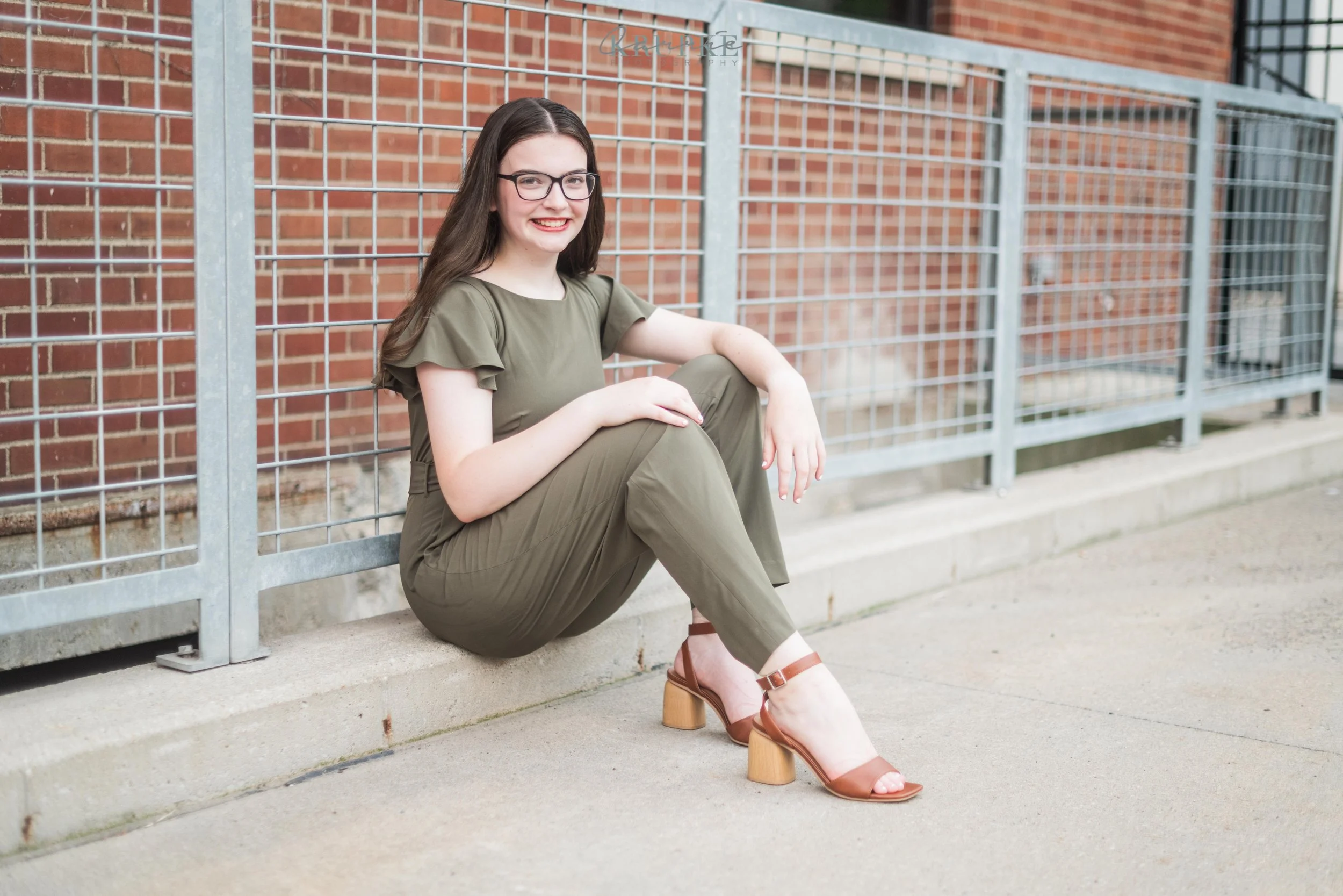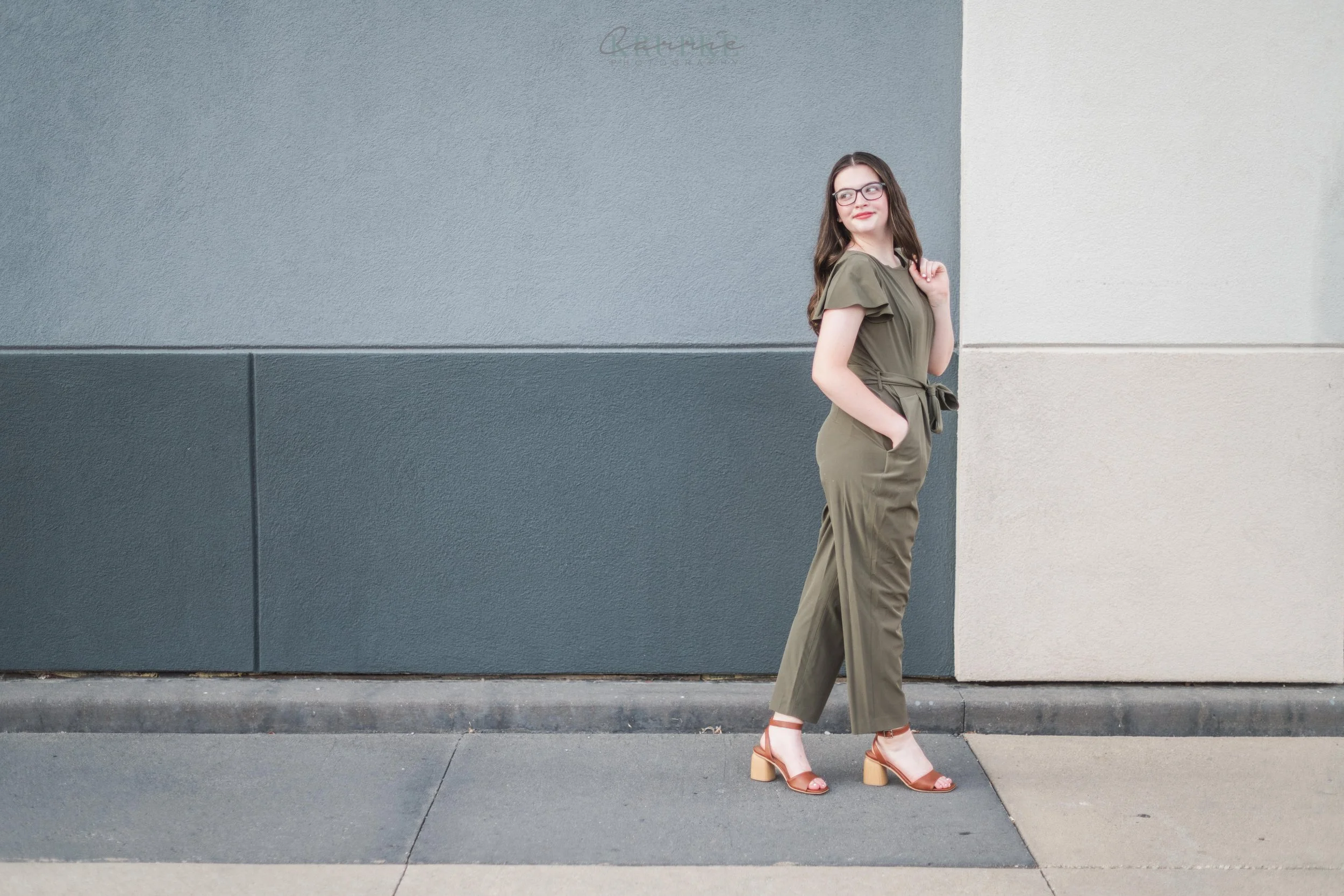 Tori had an epiphany going into her junior year that she wanted to teach Family Consumer Sciences and is heading into Iowa State to pursue that education degree. ISU has a fantastic fashion design department as Tori’s high school FCS instructor takes her students to the fashion show there almost annually, I believe. When Tori put on this gorgeous olive jumpsuit, she looked so professional and adult-I felt like I was photographing a college student already!