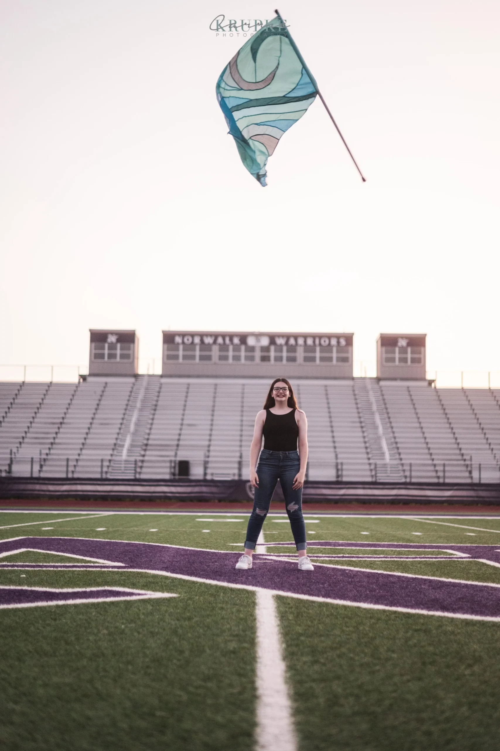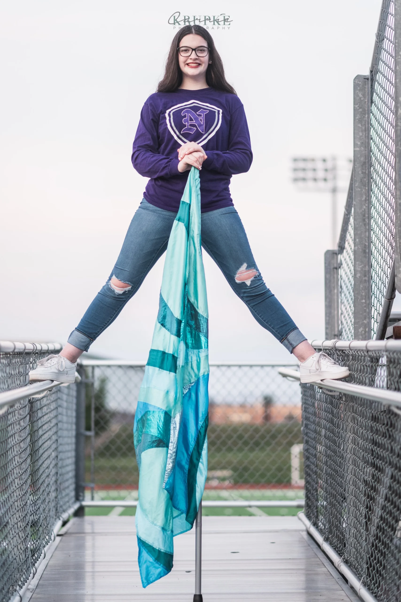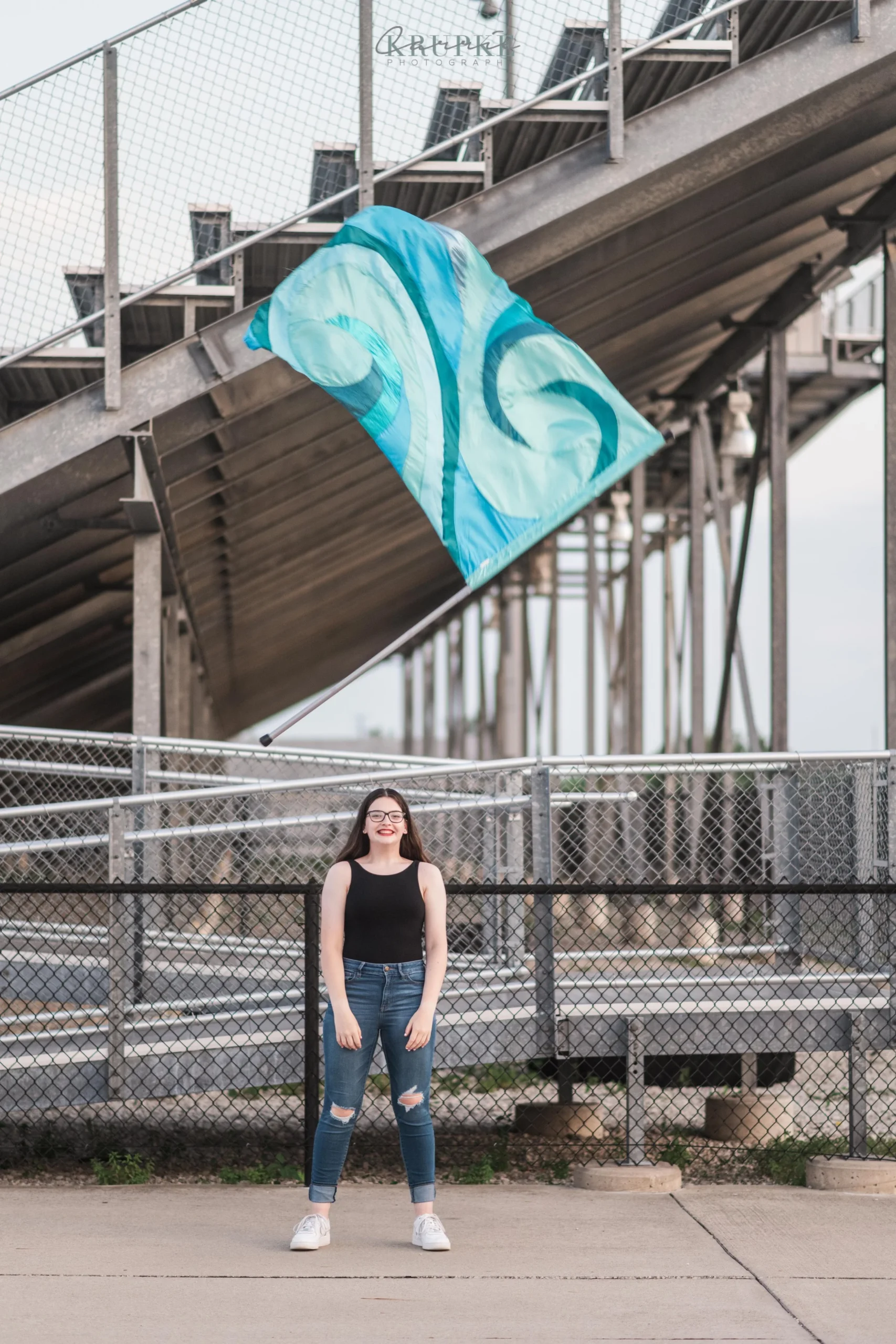 A quick outfit change (or two) and we ended at Tori’s high school stadium to highlight her color guard career: