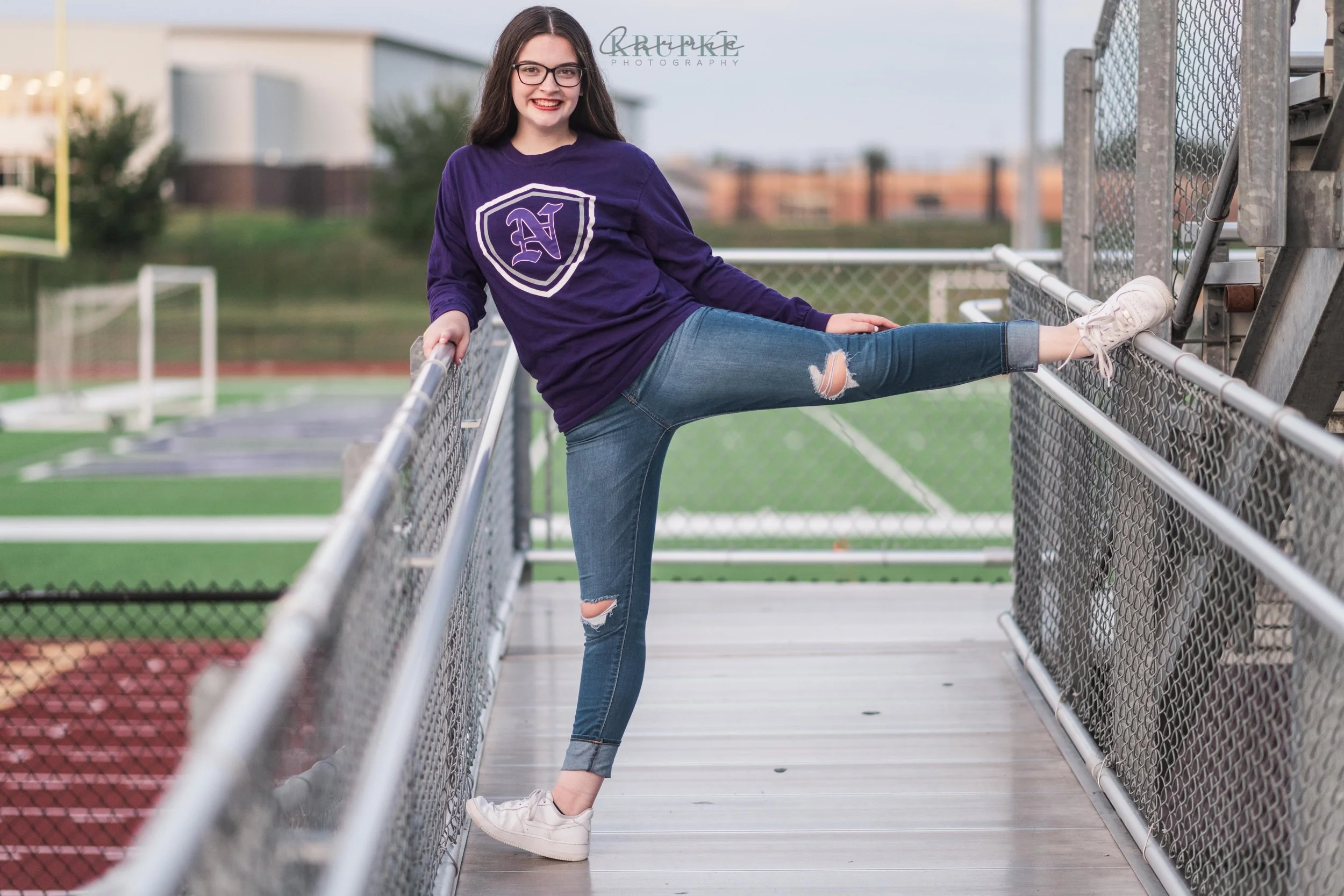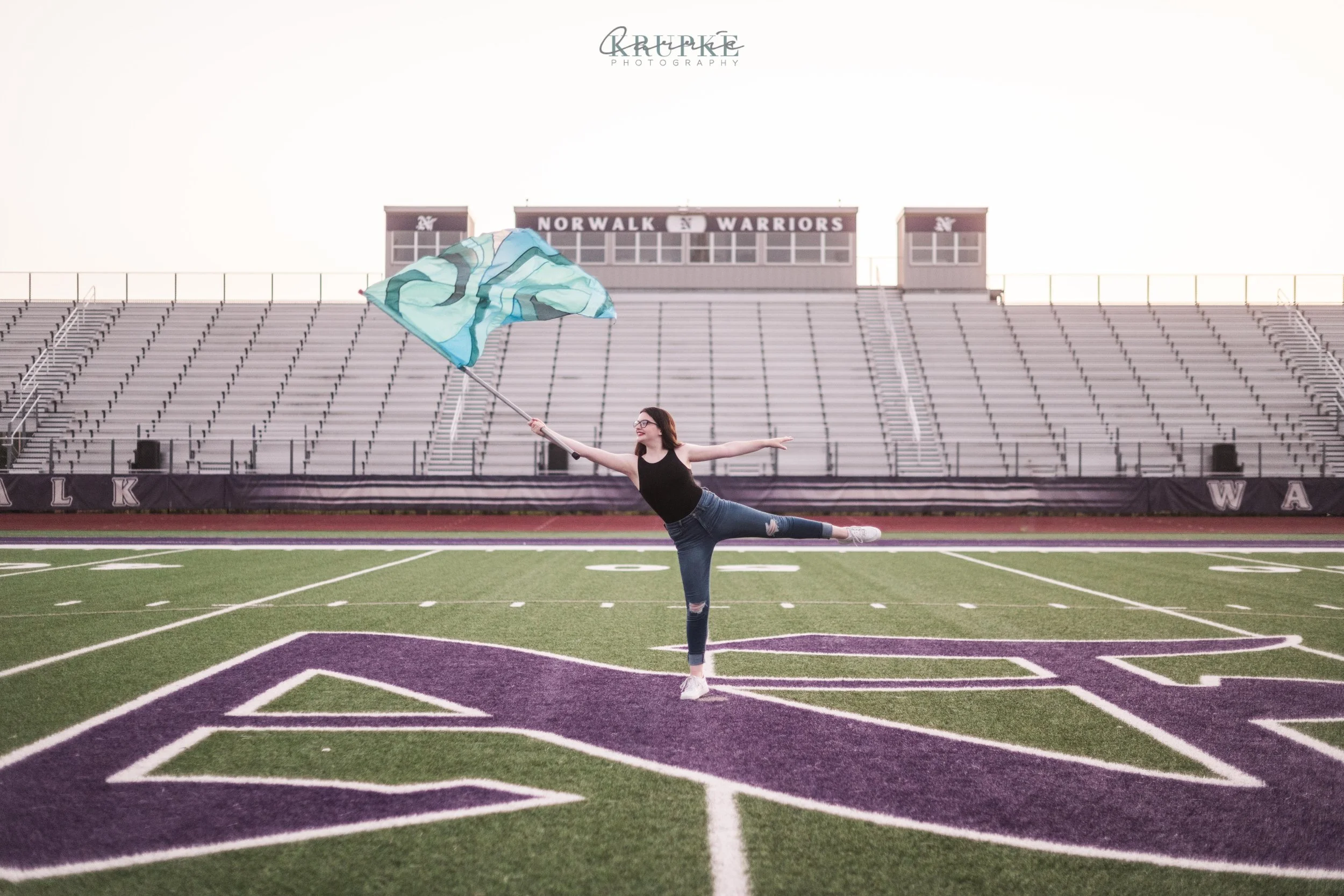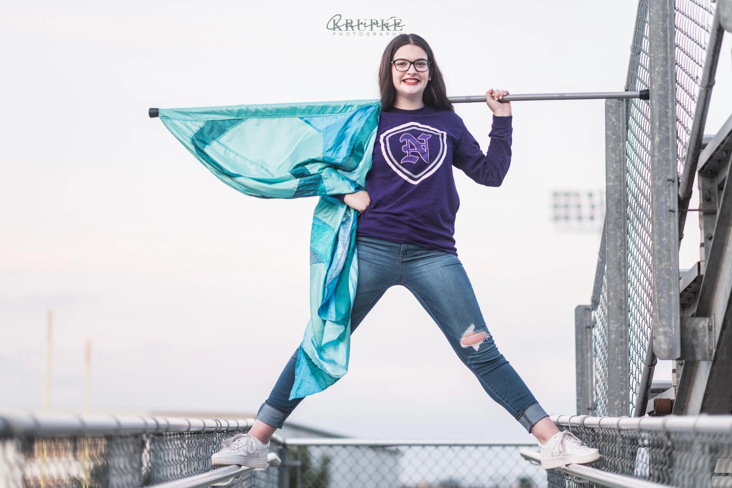 A quick outfit change (or two) and we ended at Tori’s high school stadium to highlight her color guard career:
