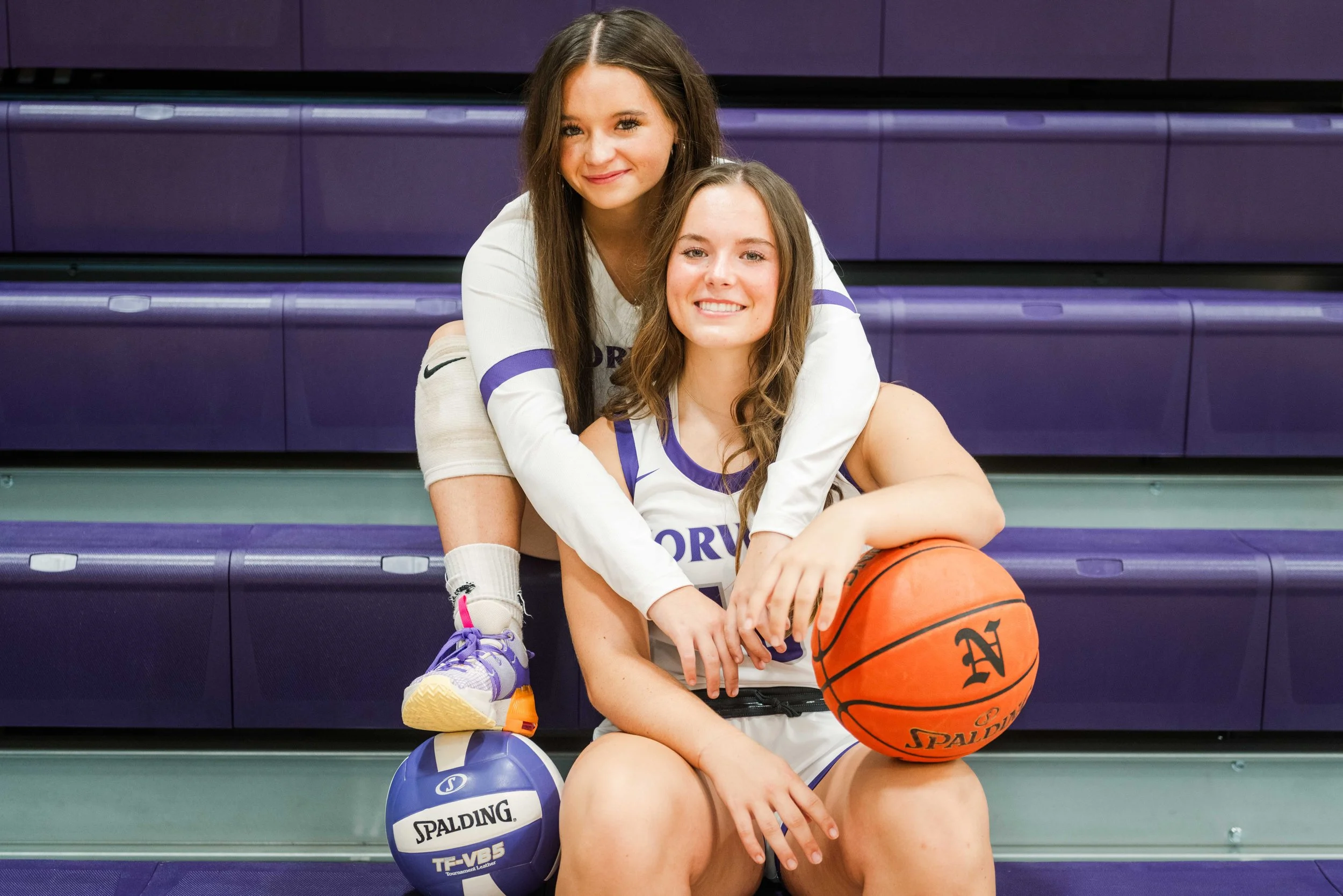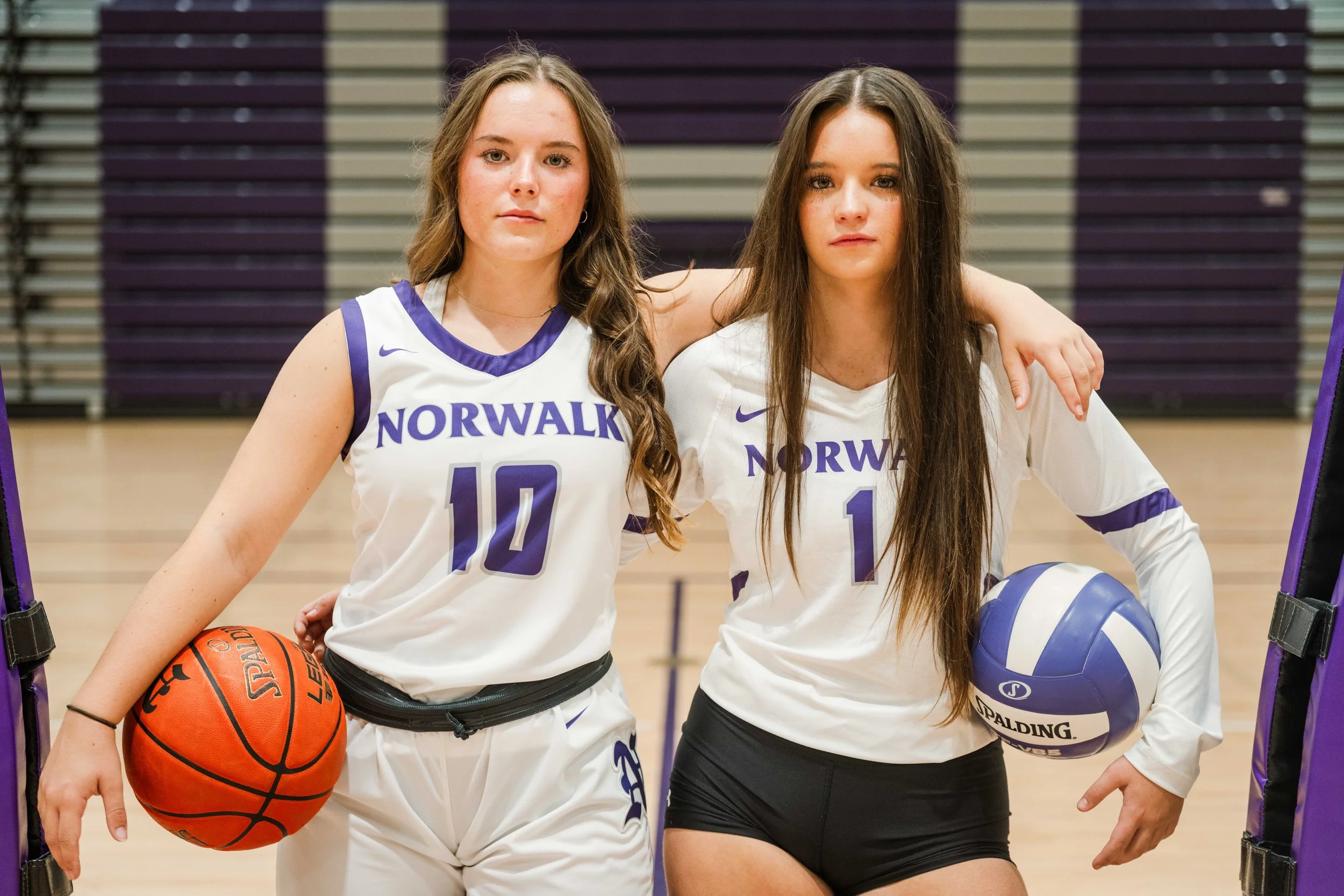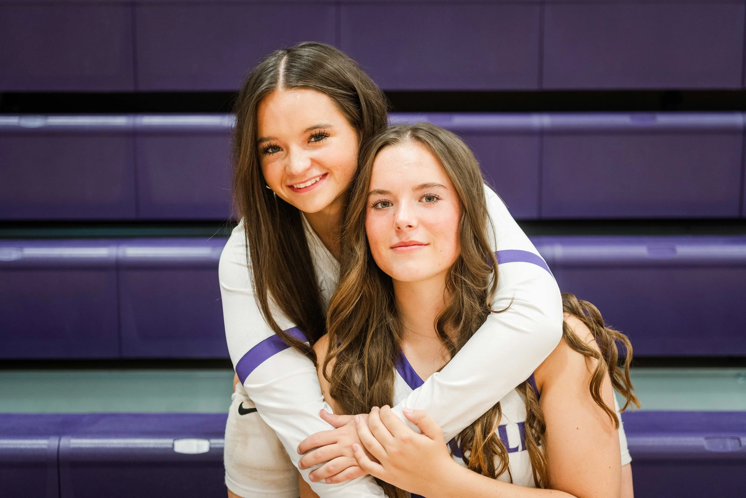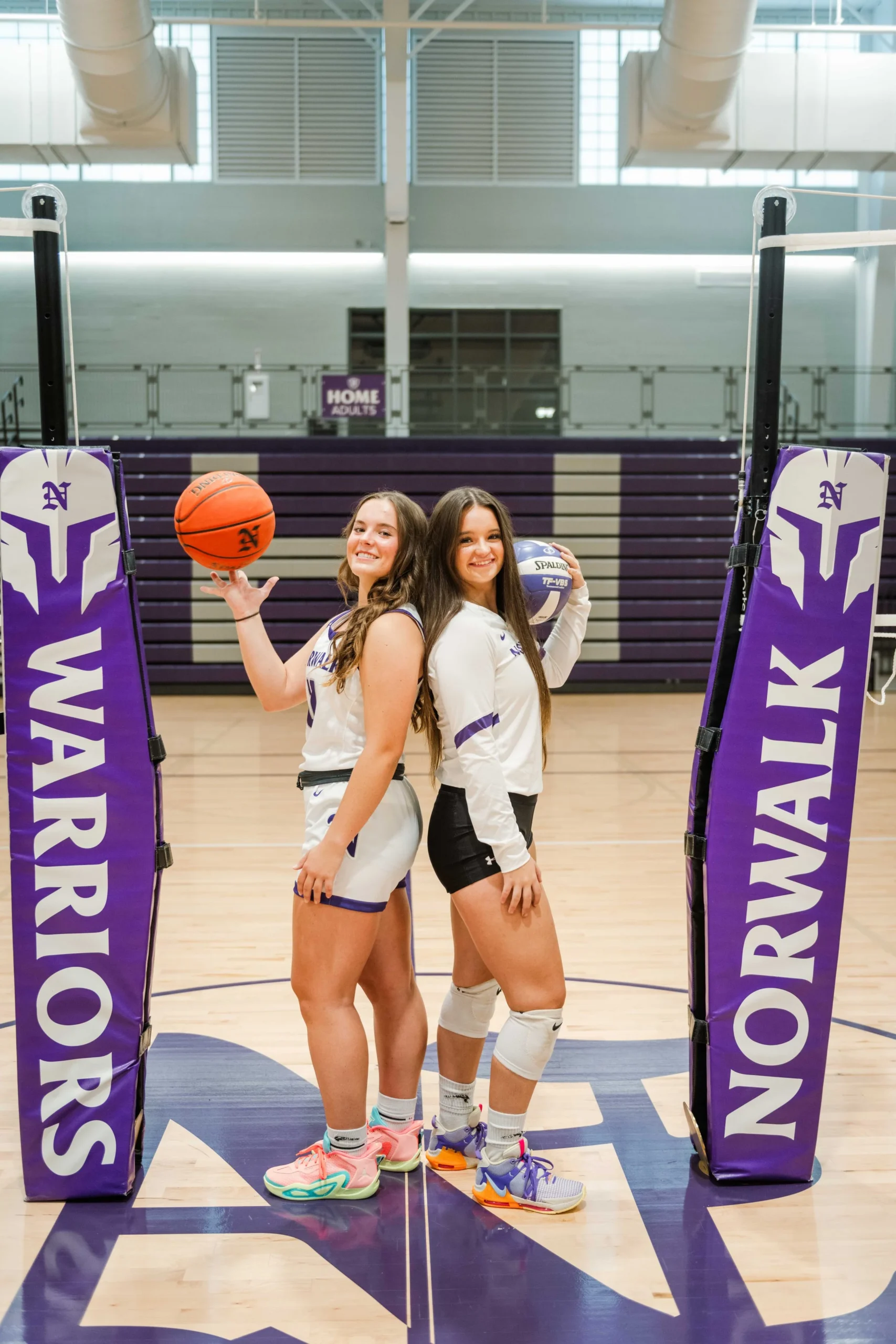 Katie & Anna needed a second mini shoot for their senior photos because their new jersies weren’t in yet when we photographed them during the summer months. So, we met in their high school’s new PE & Competition Center which was a new space for me to be photographing in and knocked these out in a short little bit.