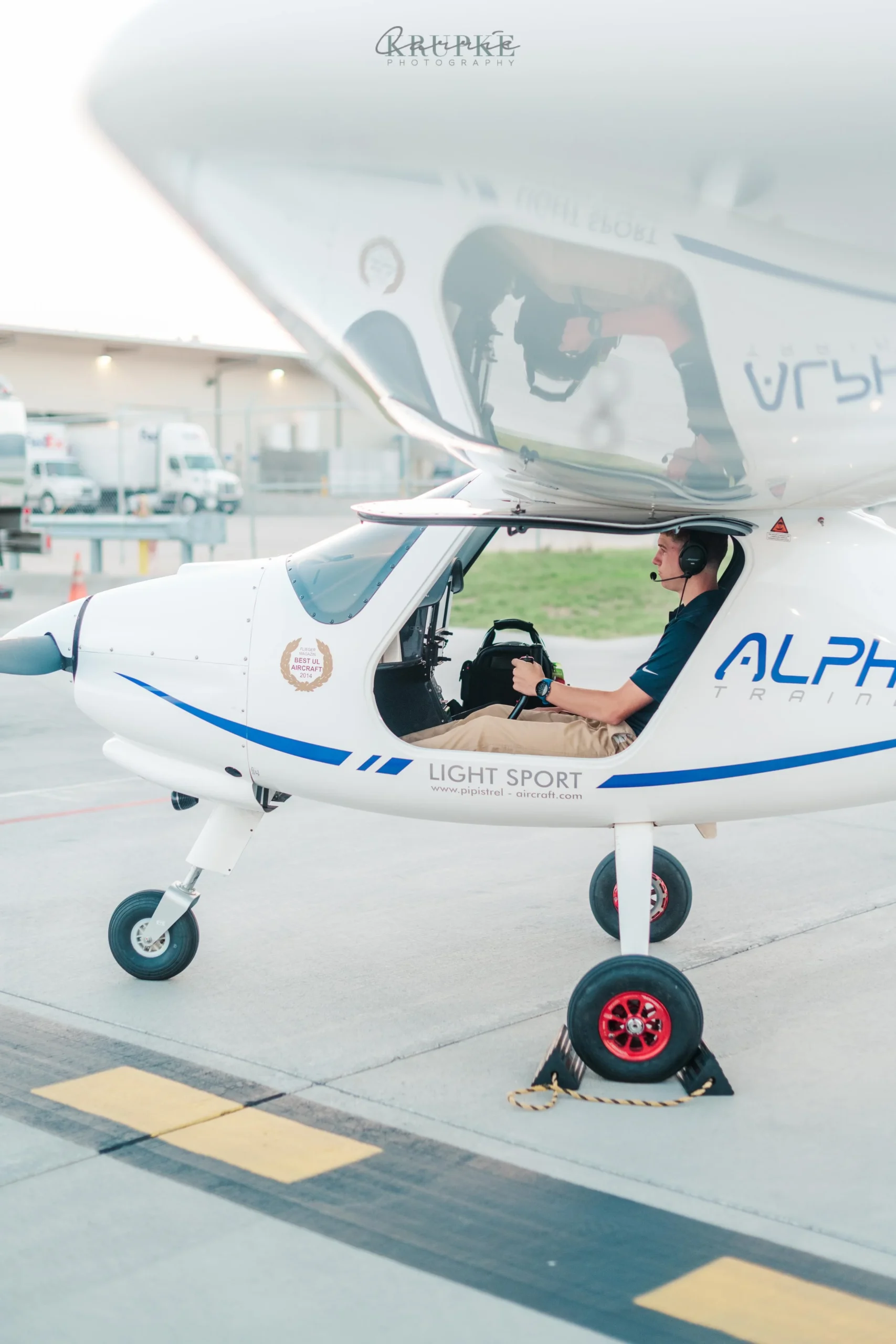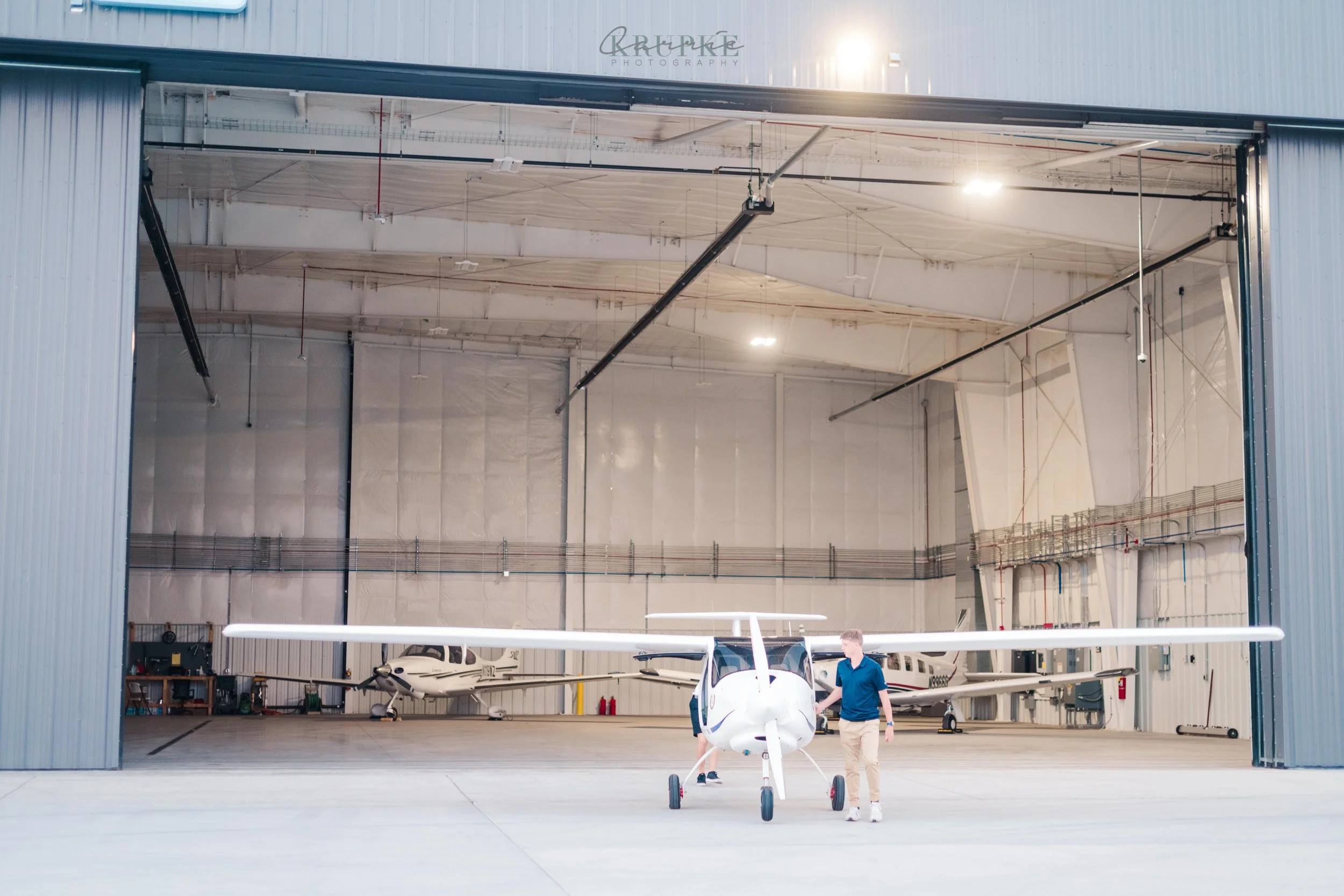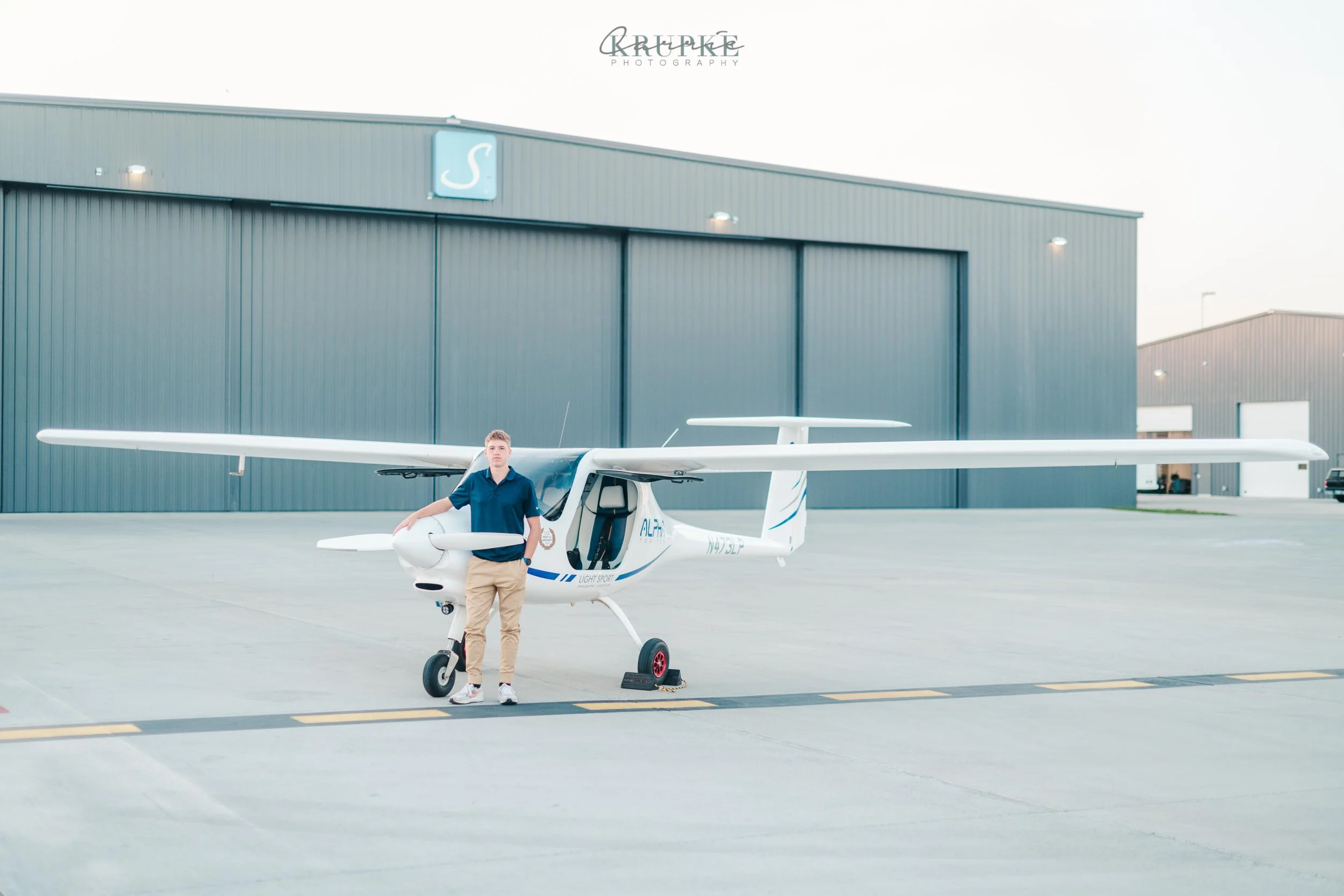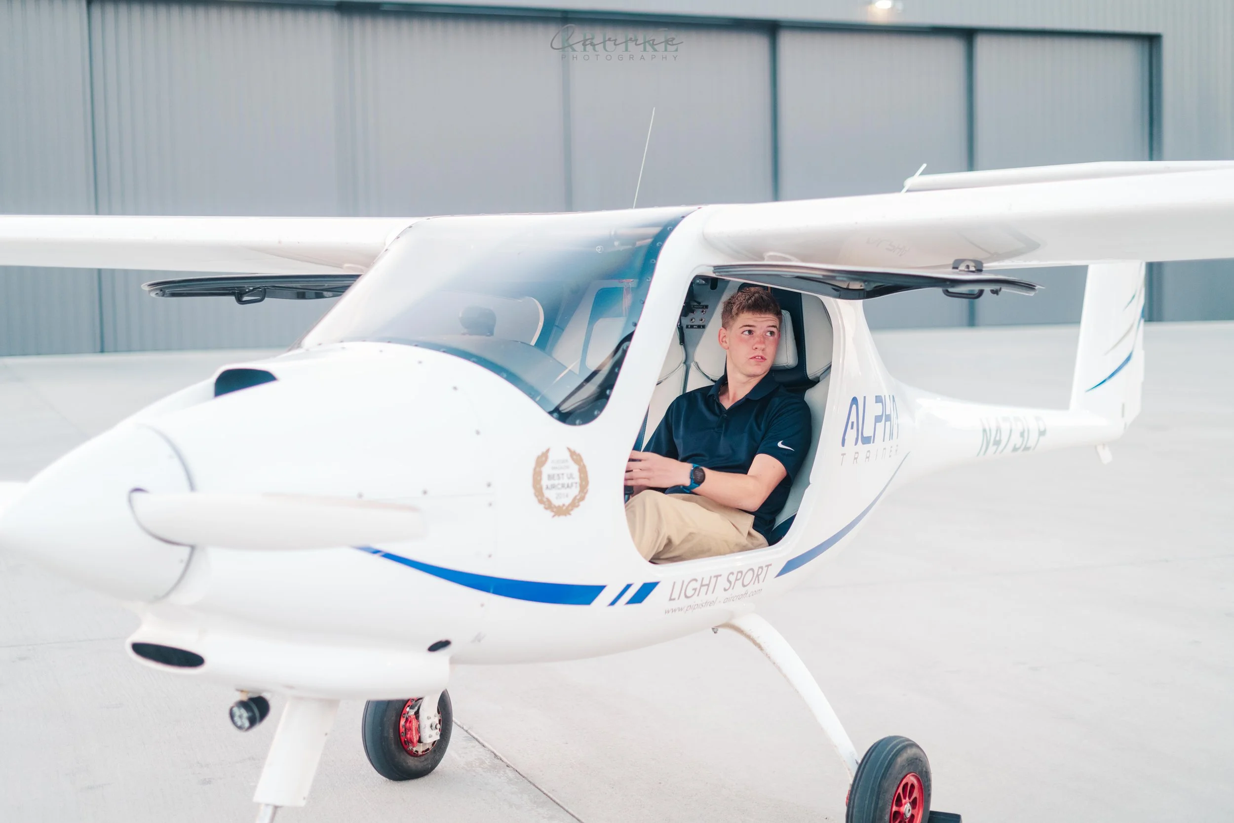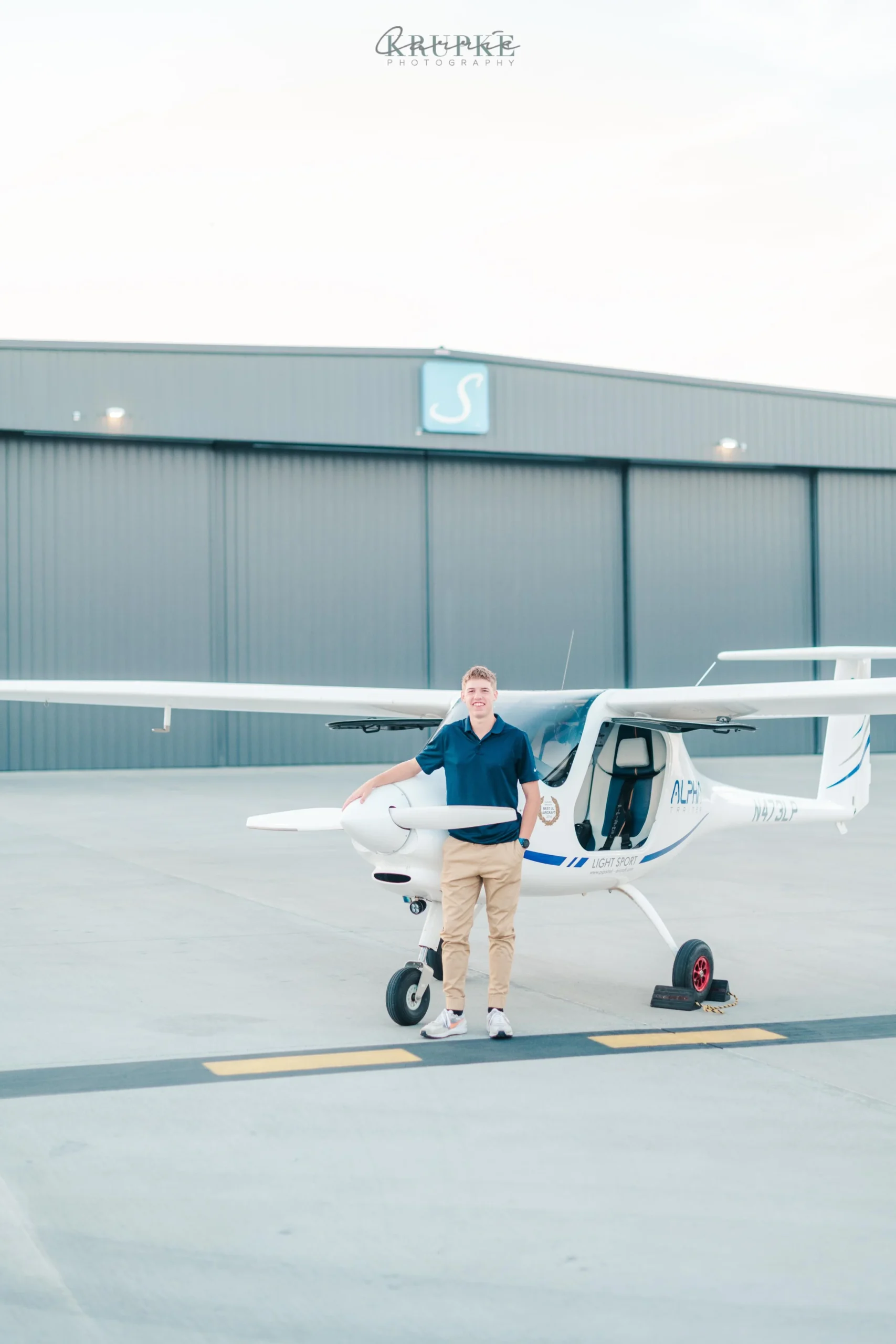 Daniel’s training plane is so lightweight (only 750lbs!) that we couldn’t have him sit or stand on a wing or the nose, but we worked around the perimeter of it and the cockpit to do our best!