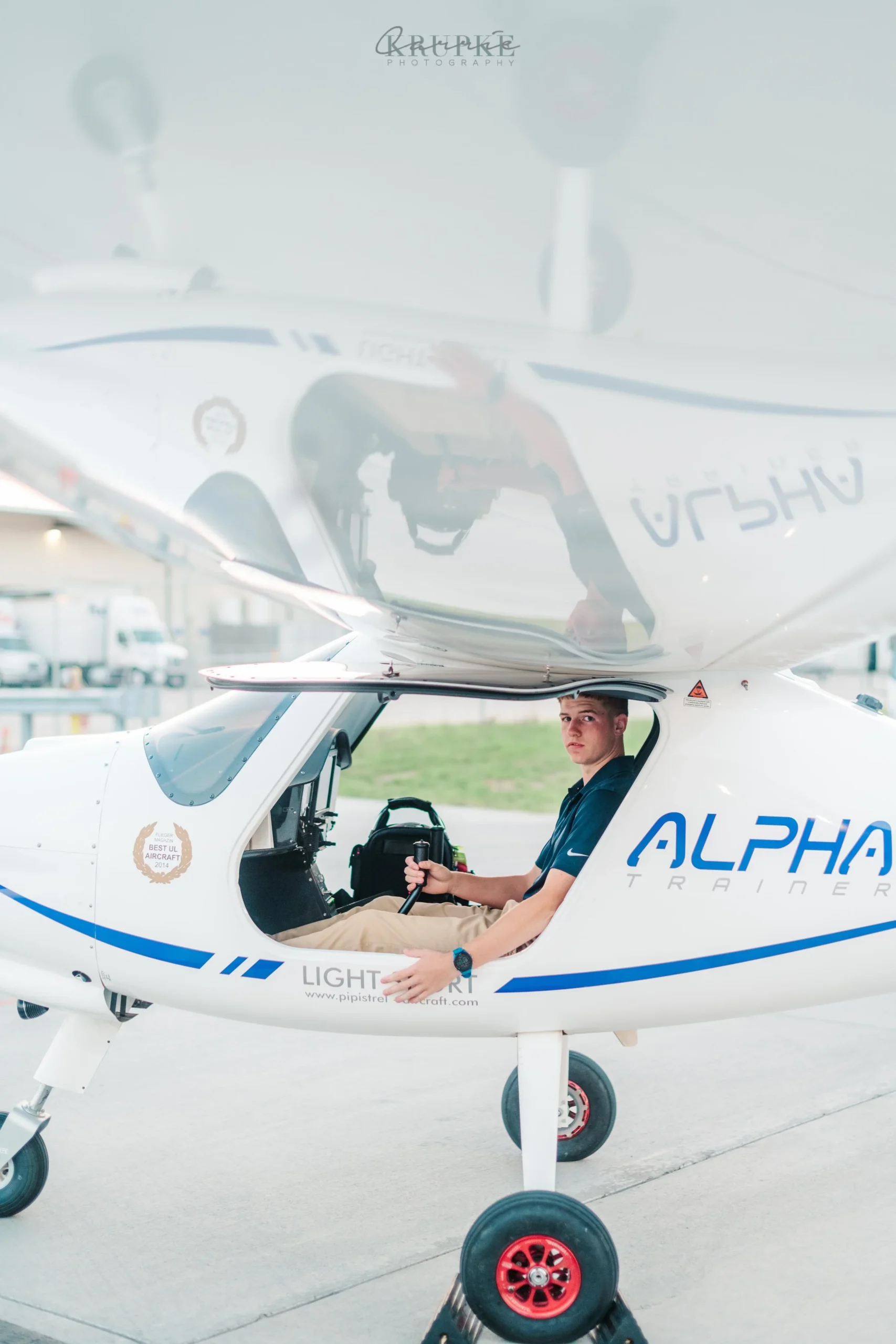 We added this to his senior session because at the time we did the bulk of his photos in the summer, he didn’t have access to the tarmac. His flying lessons hadn’t started yet and I’m so glad we waited until October to get this in. Daniel had a certain confidence about him in the hangar and the cockpit that was different from the swagger he had in July. The tarmac and cockpit was definitely Daniel’s happy place and I’m so glad we got to document this at the airport!