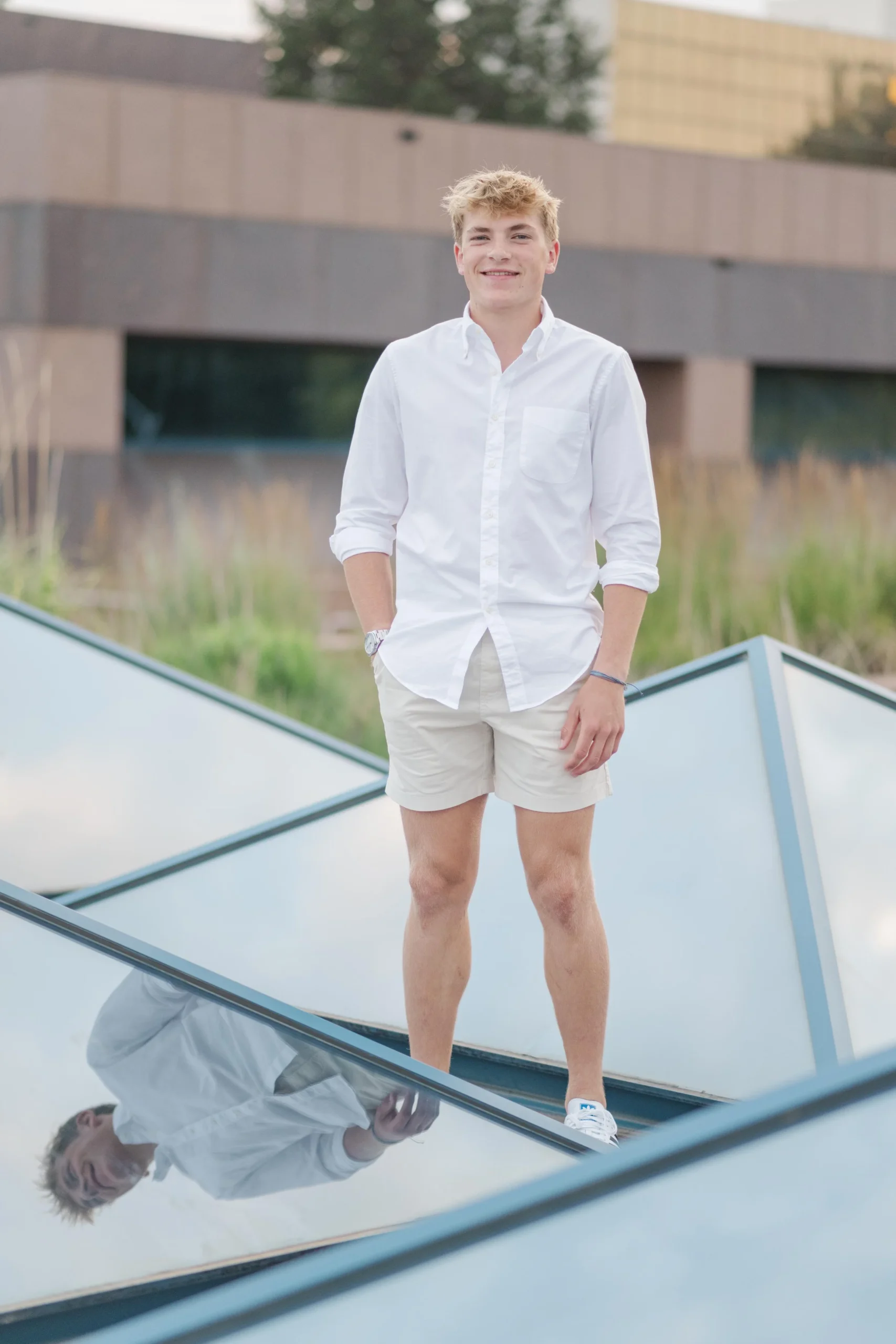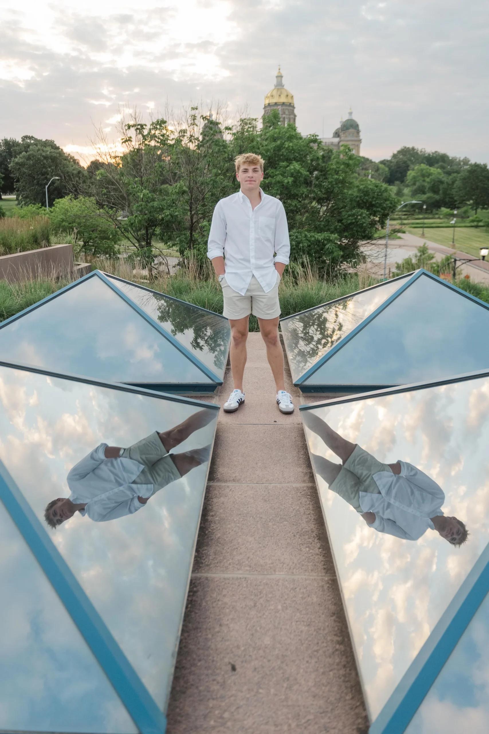 This morning could not have been more perfect for our blue-eyed friend, Henry! Not only did we start at 0545, but the cloud cover allowed us to get to all the locations we wanted to before the sun came out in full force. It was absolute perfection! When Henry said he was interested in pursuing architecture after high school, I immediately thought of the fun geometric shapes of the windows a the Historical Museum. Sadly, they’ve renovated since I was last there with another senior and those windows no longer exist, but we made some really fun and quirky compositions with what remained and had a stellar view of the capitol in the process!