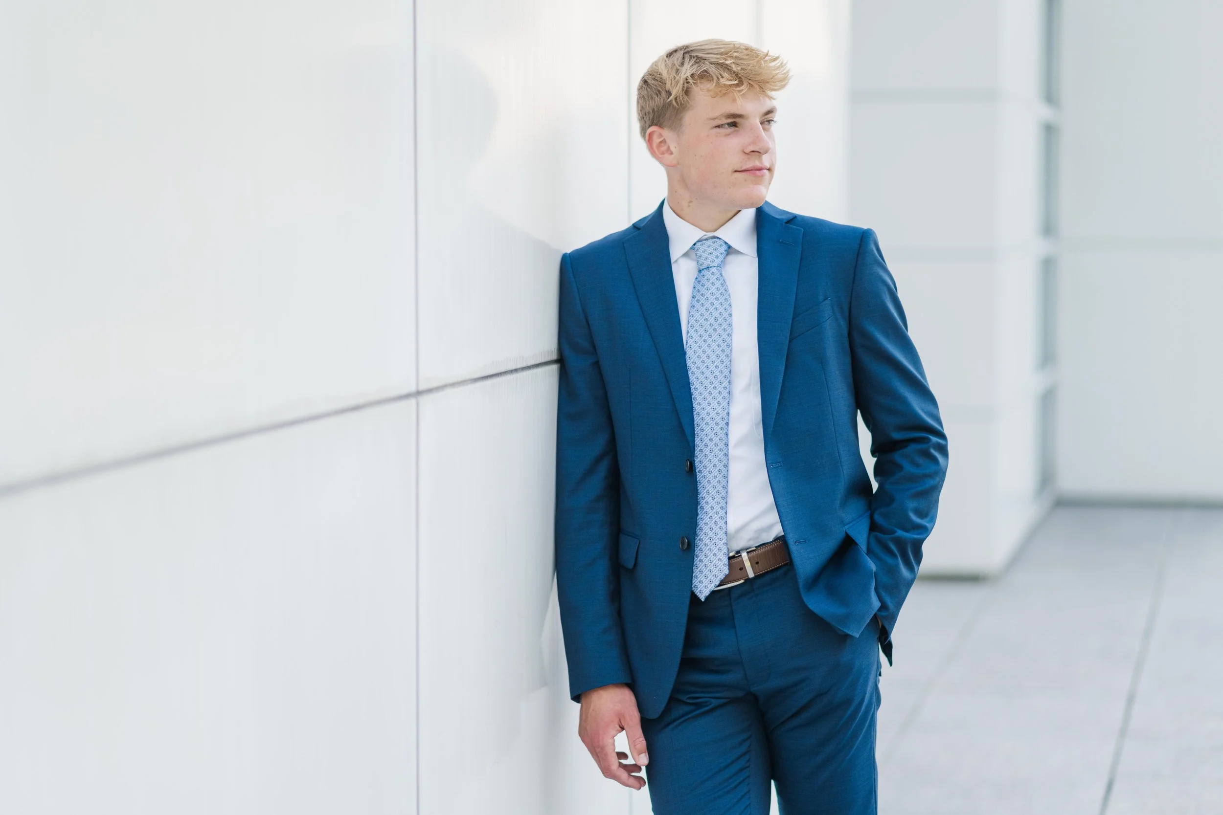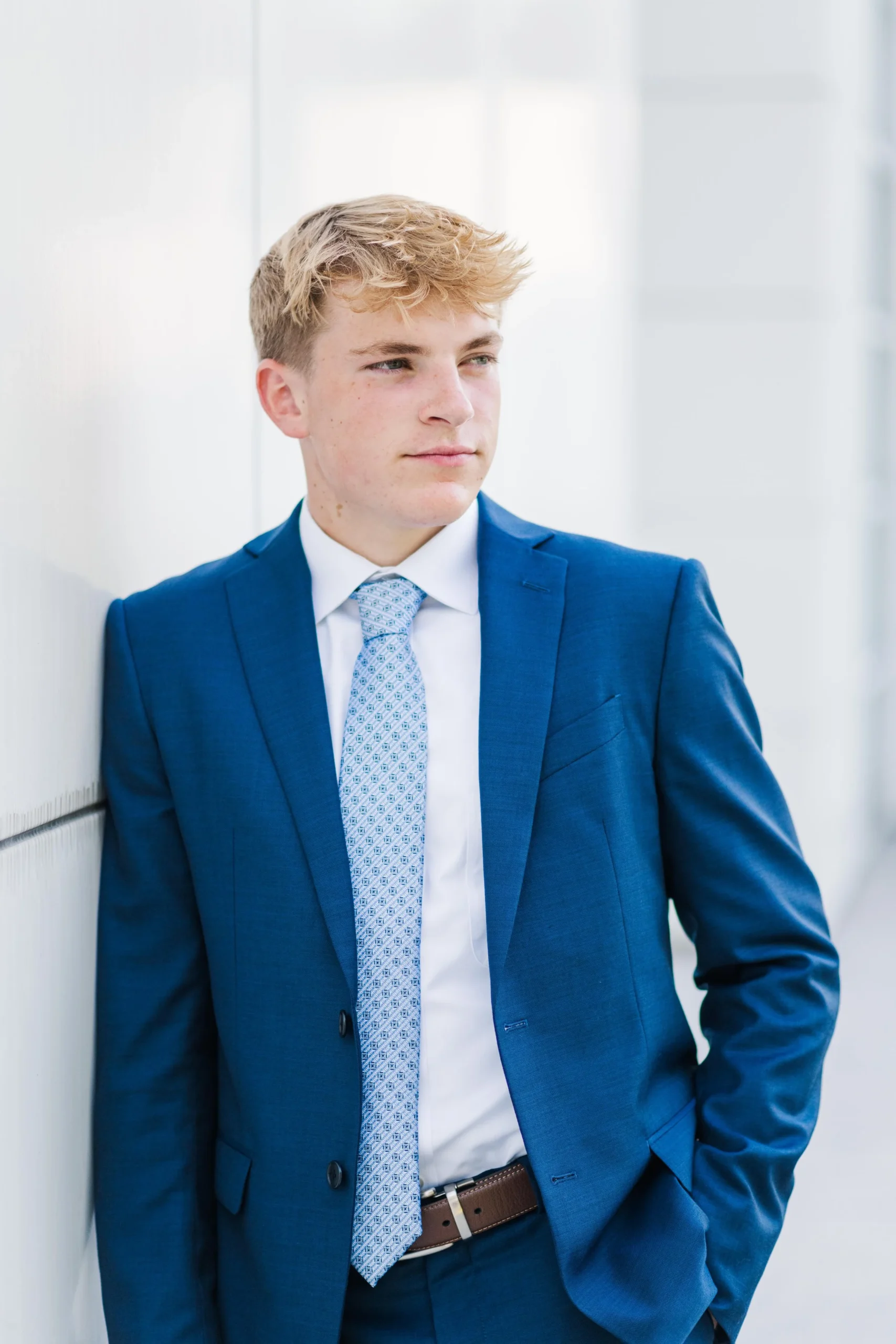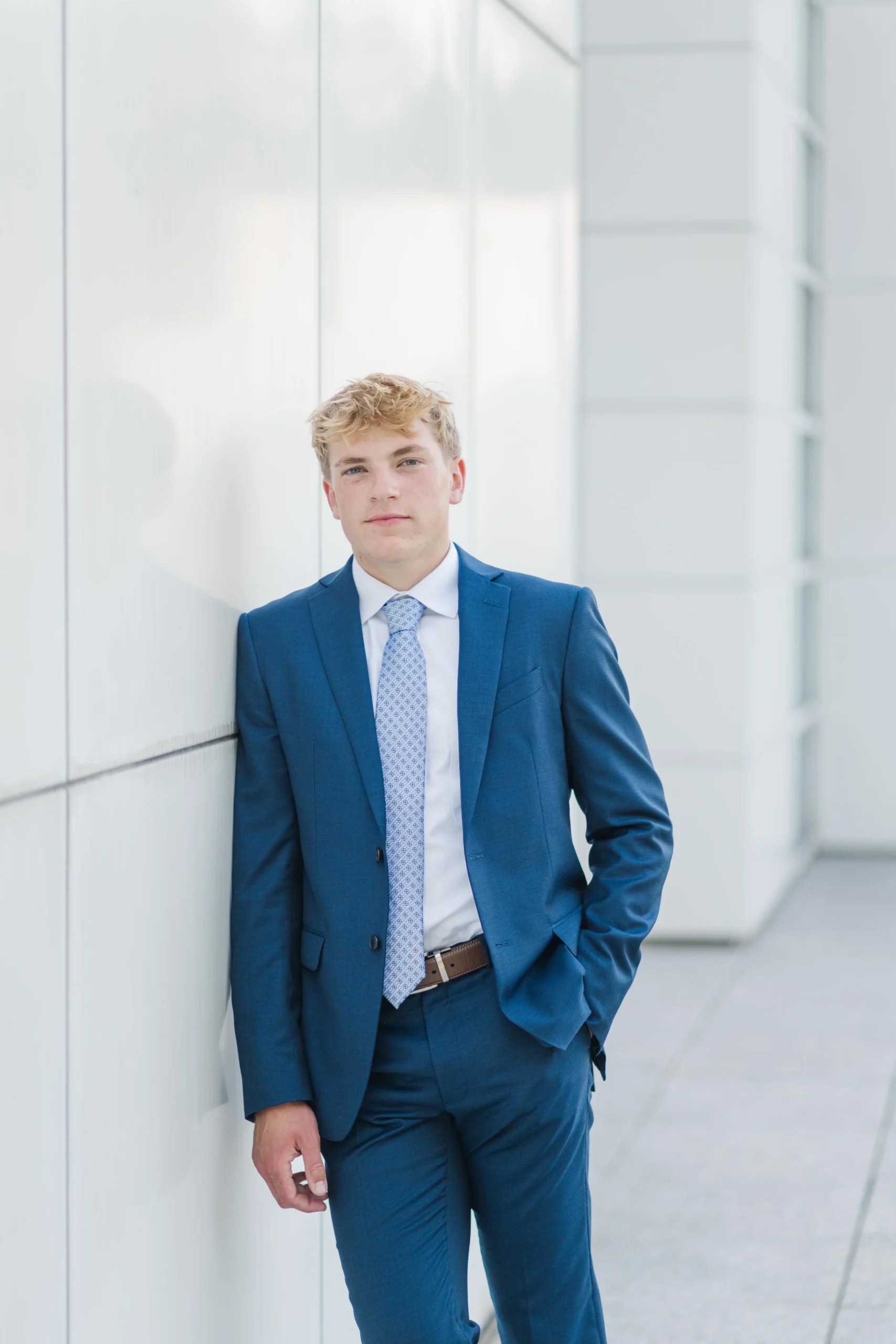 Right as we were wrapping up downtown, the sun came out and we headed to the Art Center for some shade to finish up a few last ideas we had in mind. Again, for the architecture, we utilized the front of the building and its clean white backdrop for Henry’s sharp suit. LinkedIn profile photo? Check. For someone who said in their Questionnaire that he thought he had terrible hair and a terrible smile, I think Henry’s done just fine!