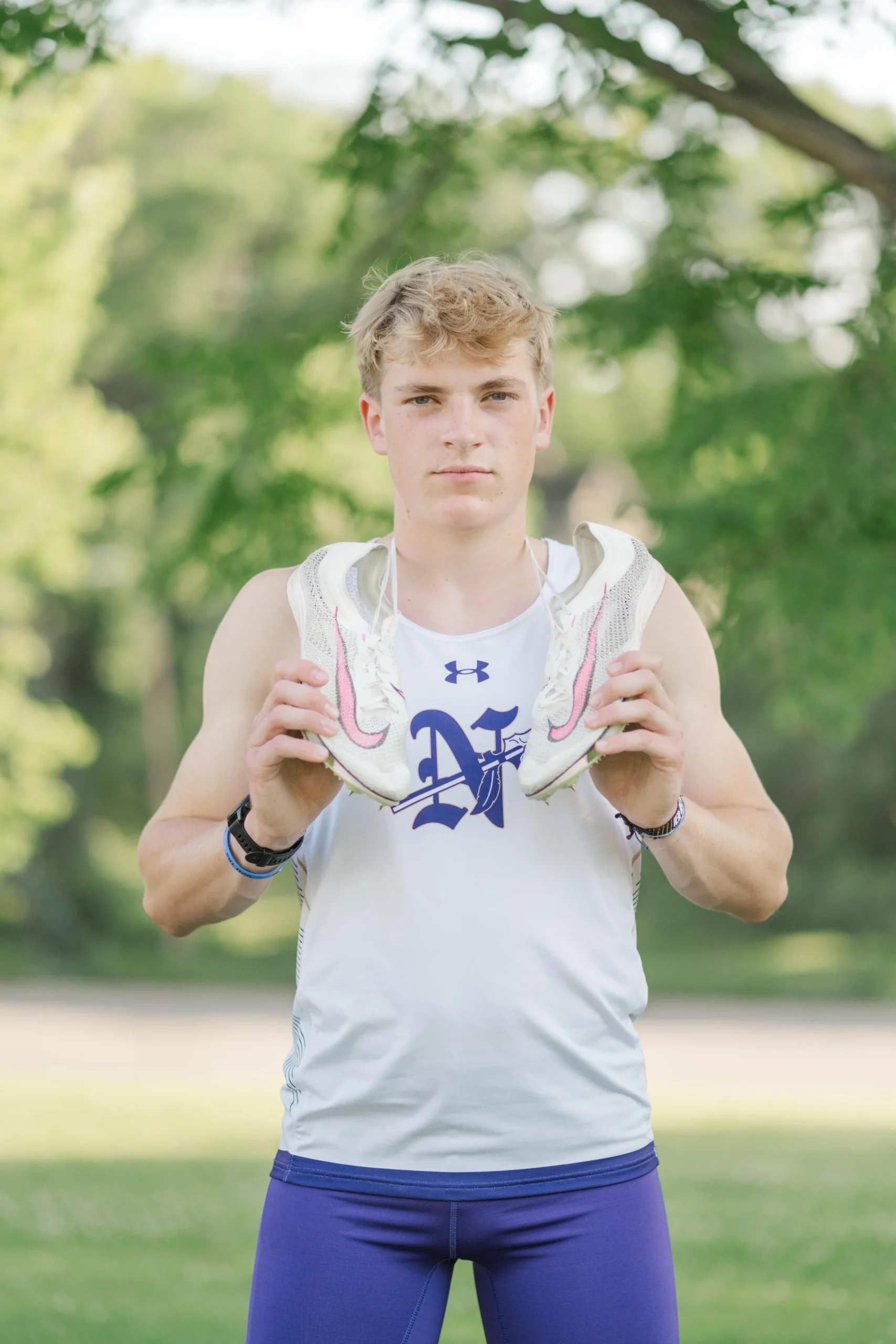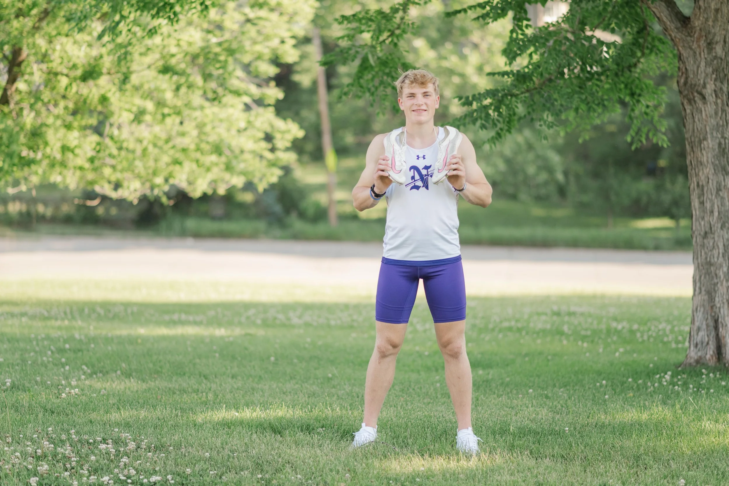 At first, Henry wasn’t sure he wanted to incorporate his track & field participation, but after we knocked out a few images, he was glad he brought the uniform and shoes along. As a parent, I’m always interested to hear how students get involved or find what they’re good at….Henry explored baseball and football for a time and COVID shut down 7th grade track & field, but he gave Cross Country a try in the fall of his 8th grade year and then track in the spring and voila! He’d found it. Cross Country fuels his 400 & 800 events in Track alongside his other academic pursuits of Student Leadership (he’ll be leading his class alongside his cousin in their senior year).