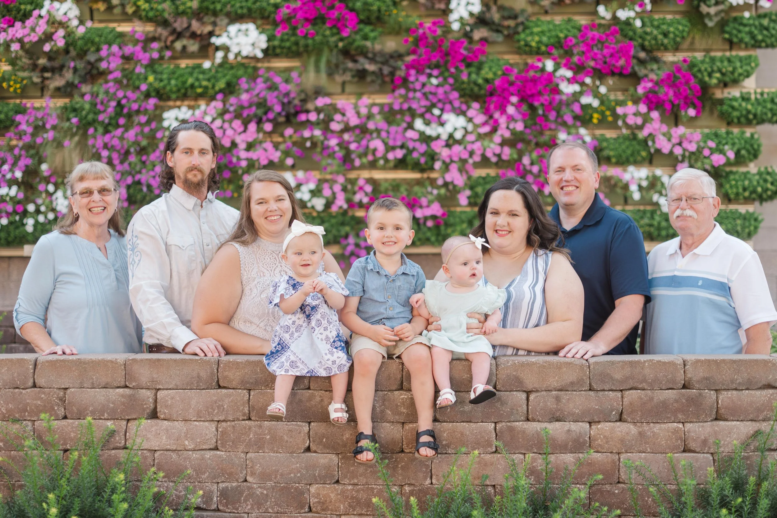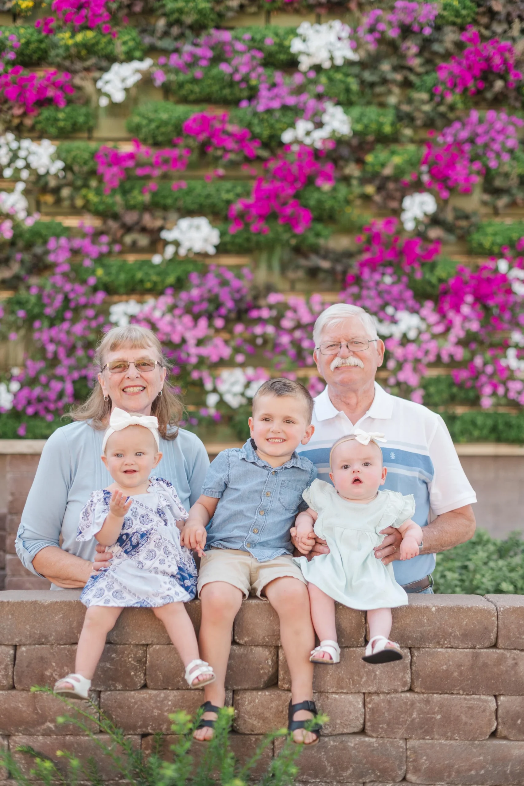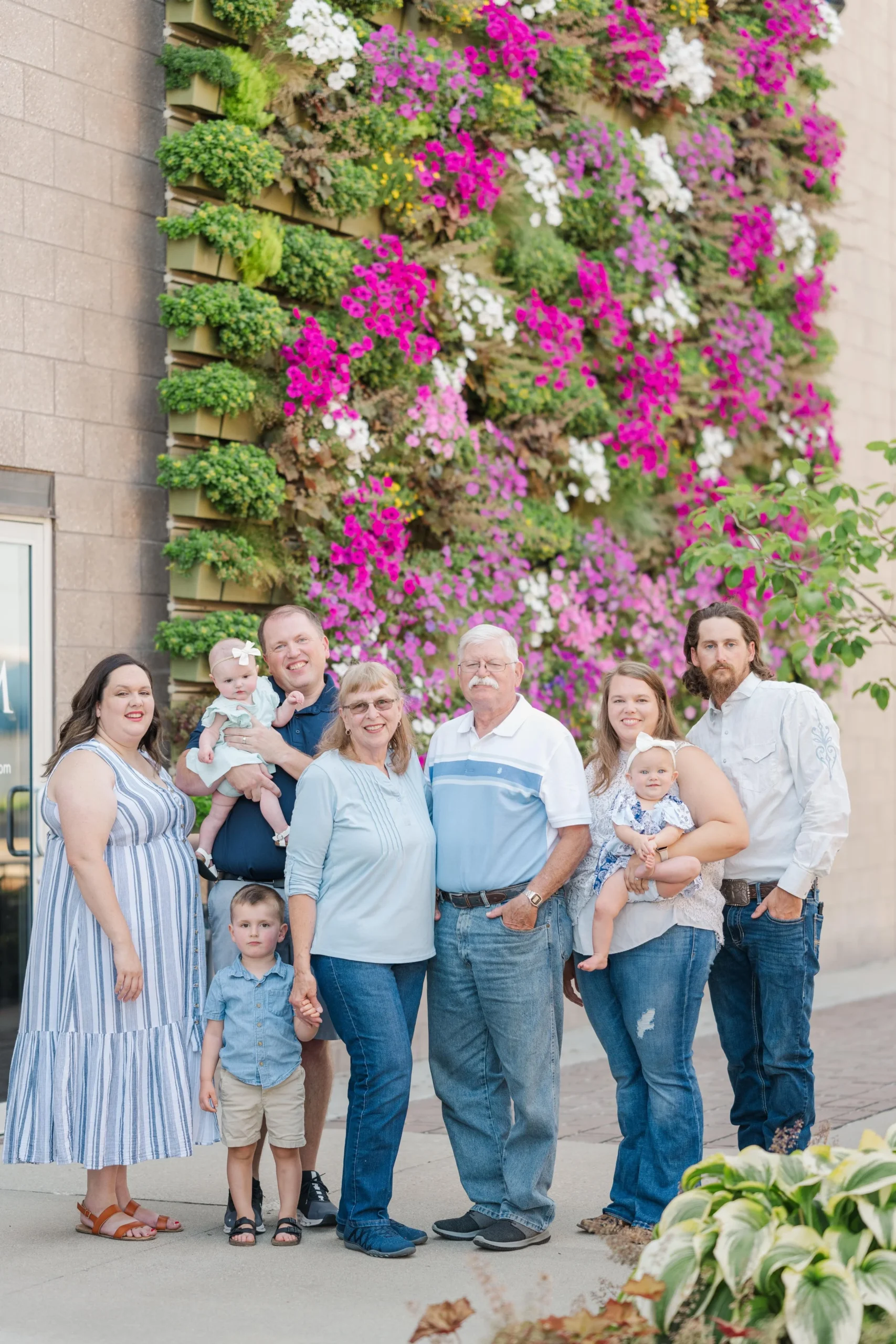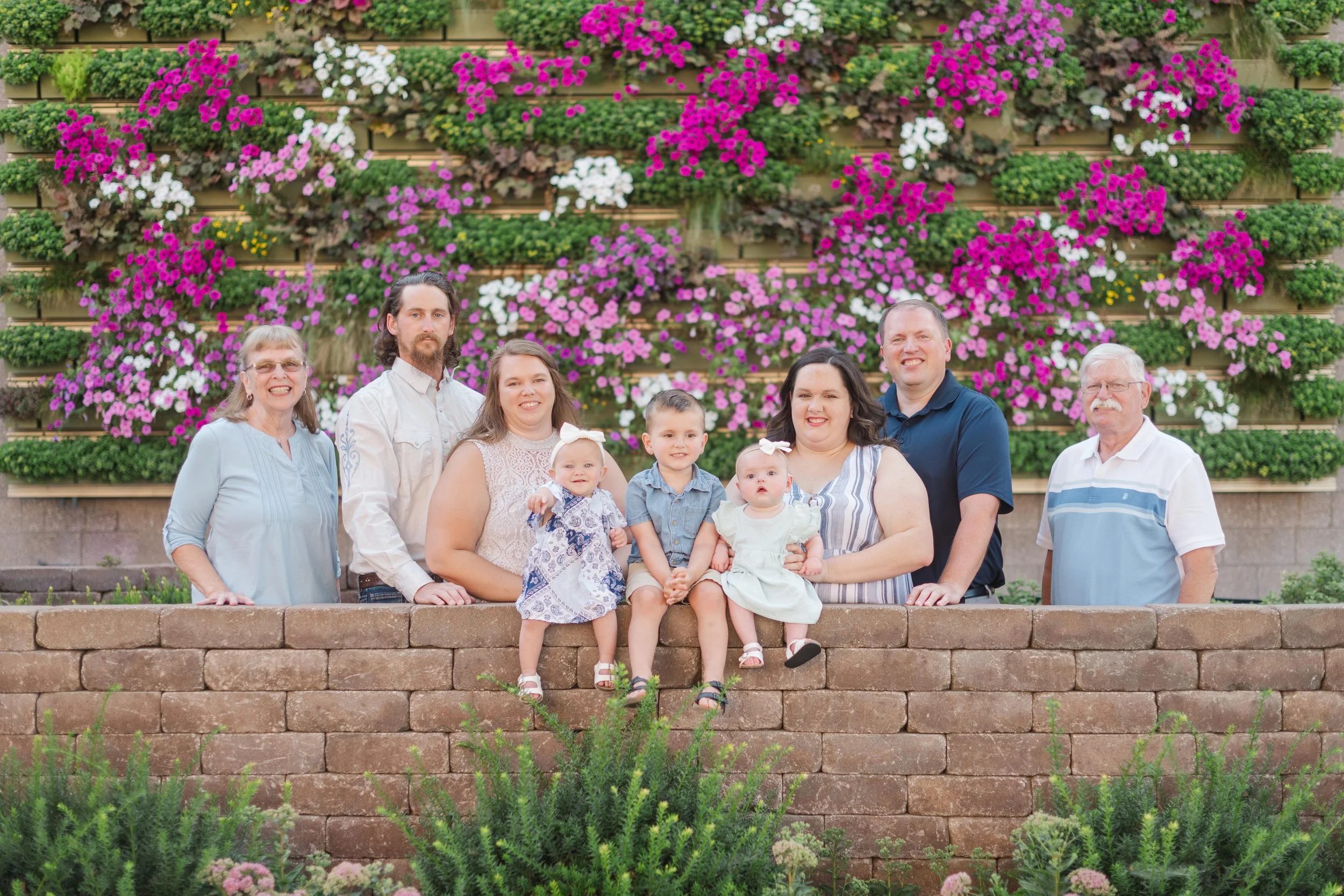 Last Christmas, Megan reached out for a gift certificate for her in-laws’ anniversary. Here’s the sweetest story – Brad’s parents knew each other in high school and dated for a few years. Bob graduated and during Marla’s senior prom, he proposed!! Fast forward 51 years and they now have a son, a daughter and three lovely grandchildren (not to mention an awesome daughter in law and son in law) 😉 . Marla recommended the cutest little garden area in Marshalltown with a wall filled with flowers and it made for a perfect backdrop for the majority of our photos! Take a peep: