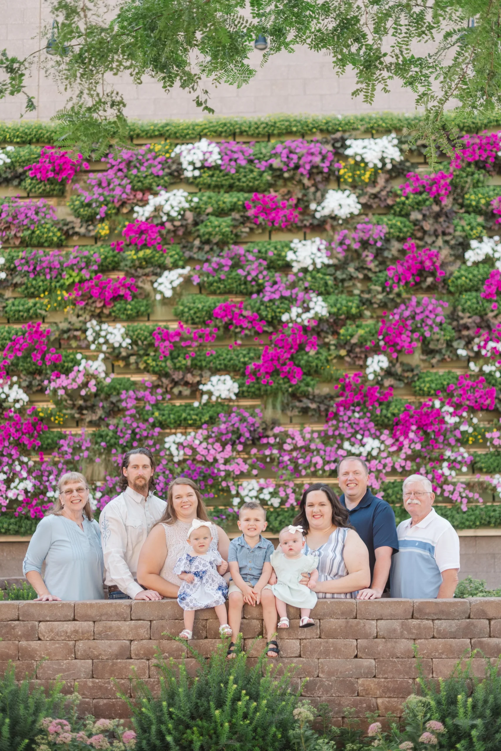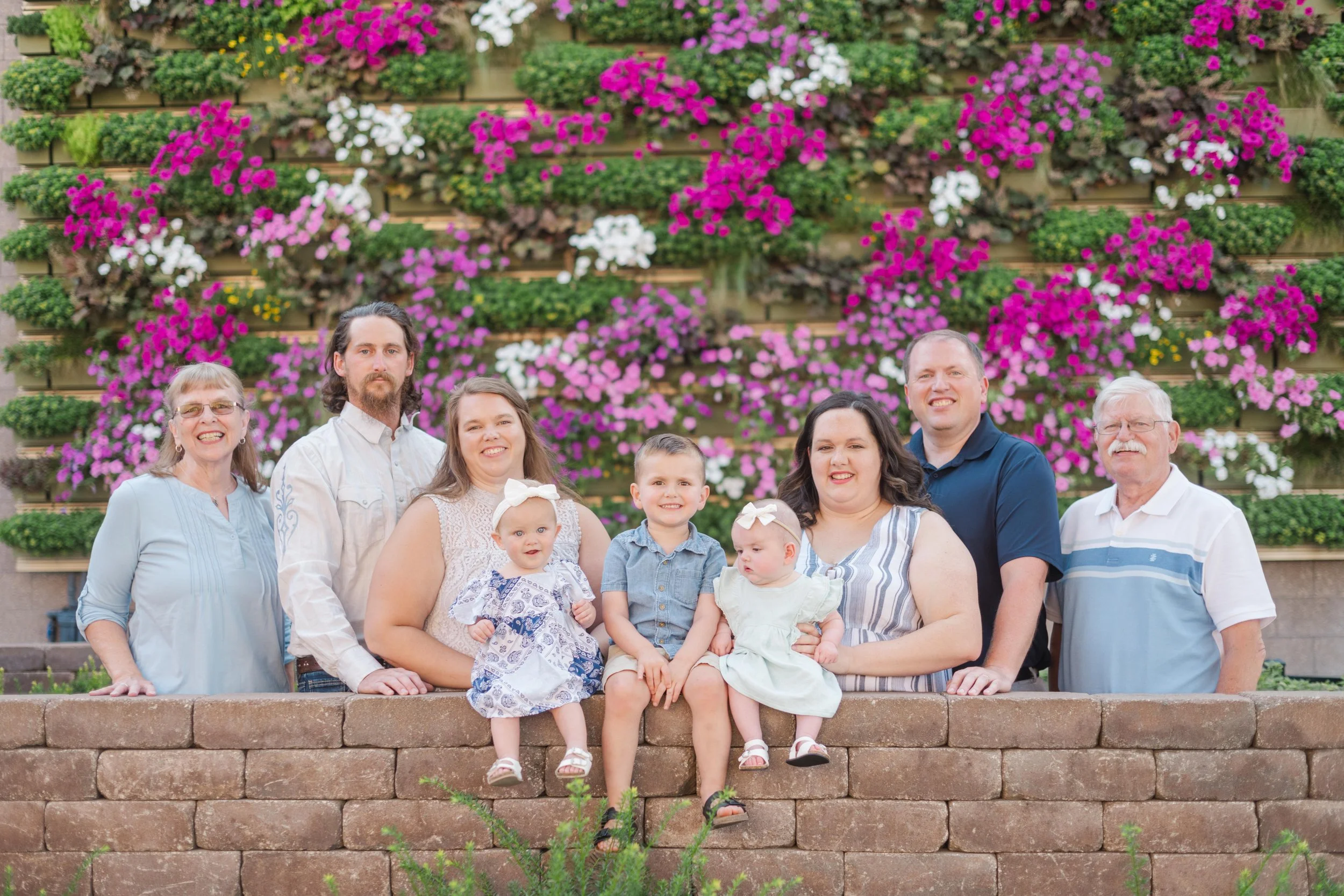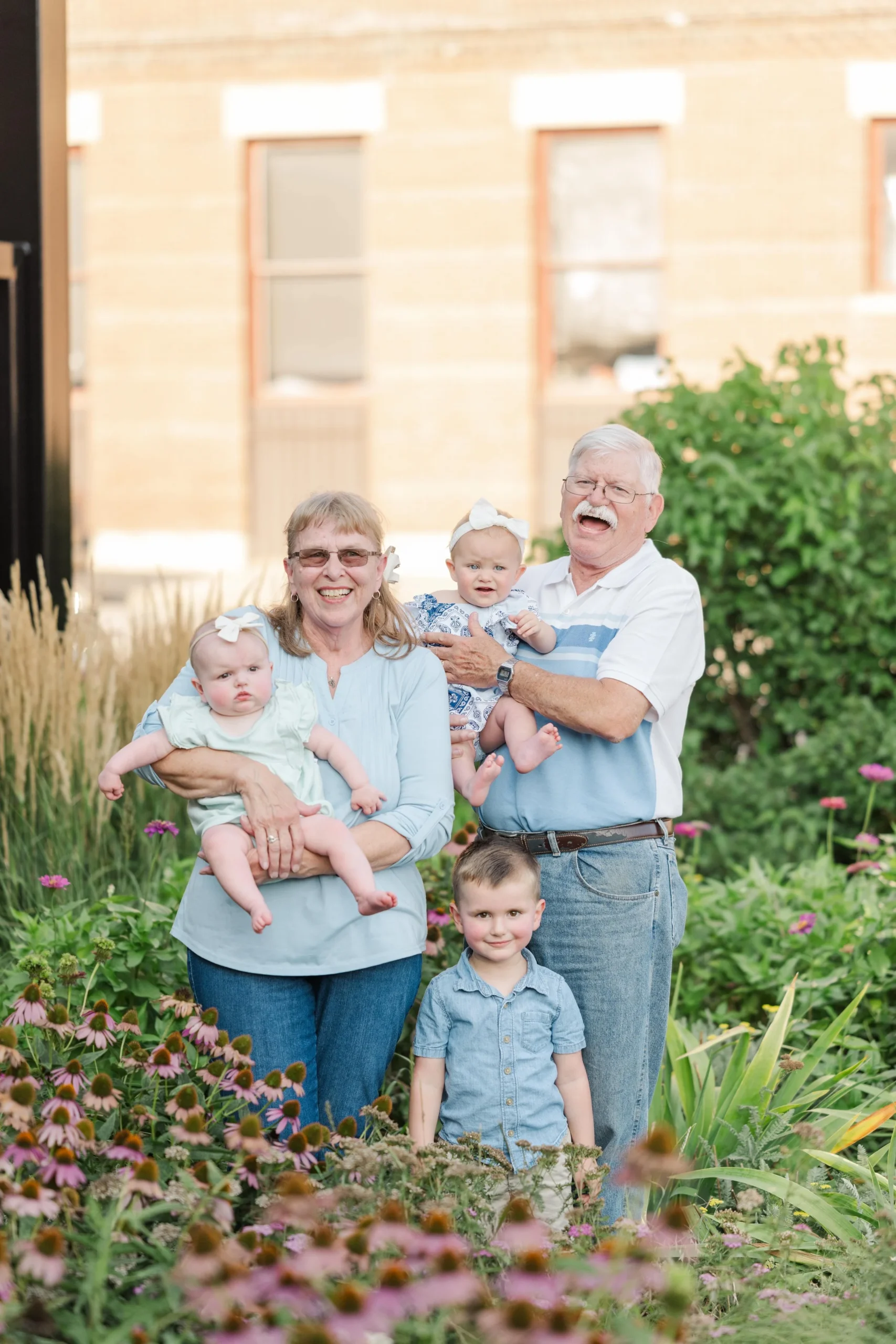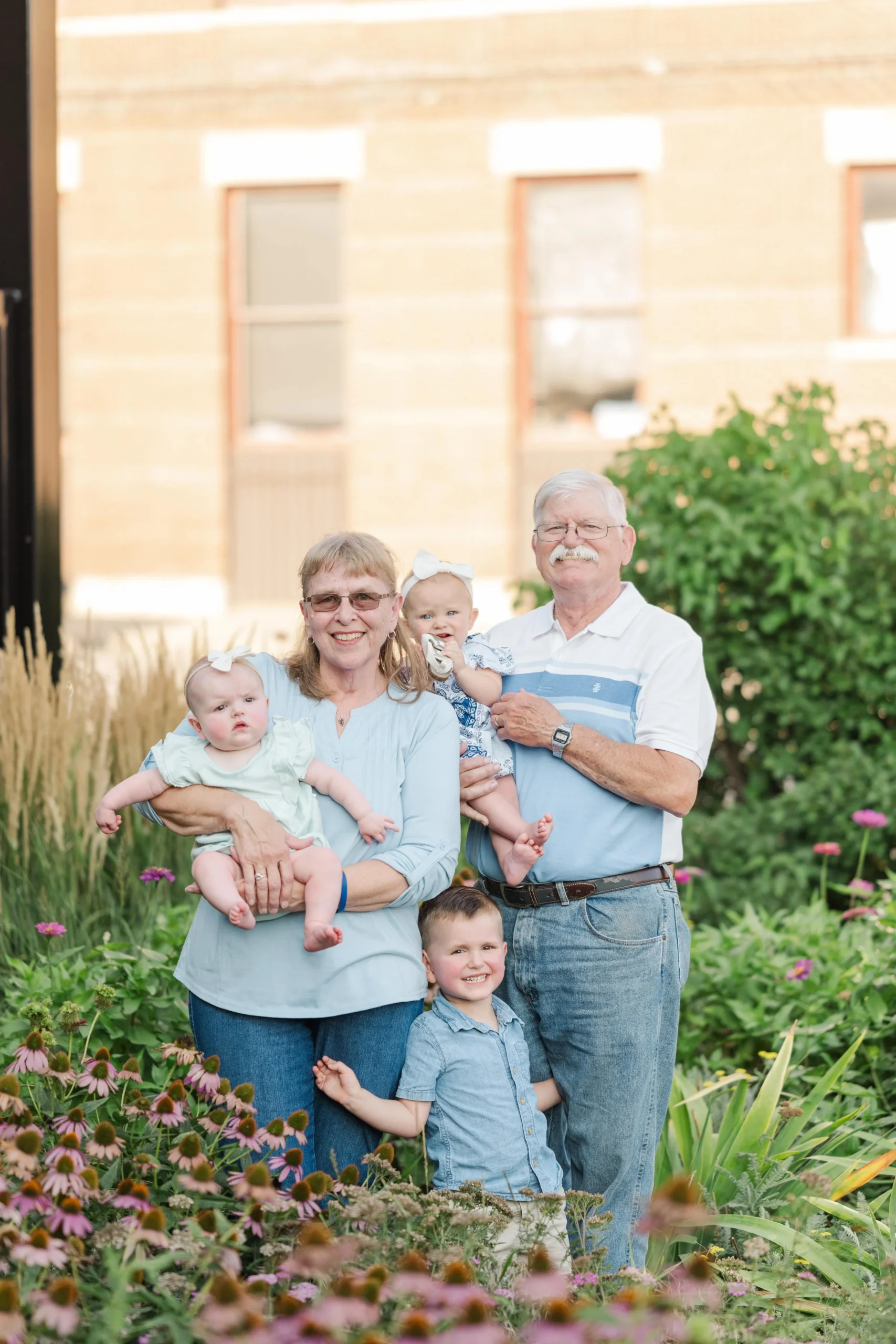 Last Christmas, Megan reached out for a gift certificate for her in-laws’ anniversary. Here’s the sweetest story – Brad’s parents knew each other in high school and dated for a few years. Bob graduated and during Marla’s senior prom, he proposed!! Fast forward 51 years and they now have a son, a daughter and three lovely grandchildren (not to mention an awesome daughter in law and son in law) 😉 . Marla recommended the cutest little garden area in Marshalltown with a wall filled with flowers and it made for a perfect backdrop for the majority of our photos! Take a peep: